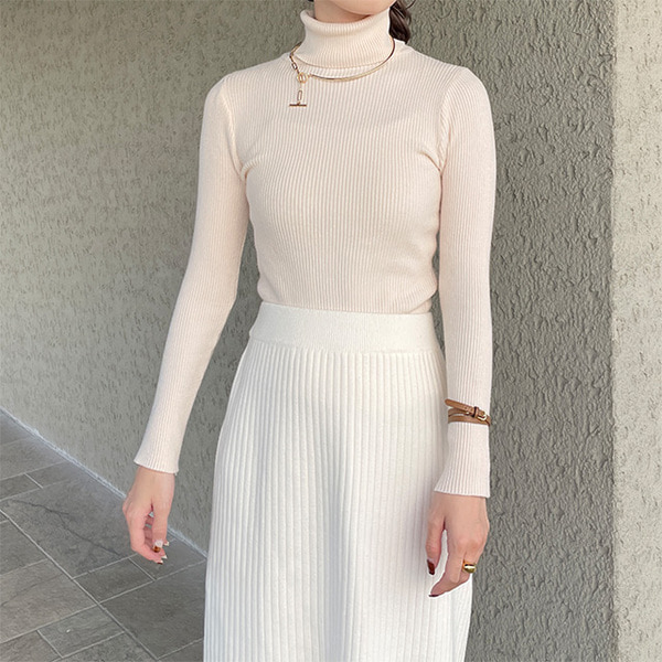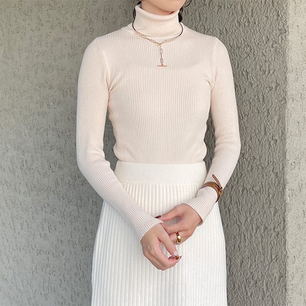 リブタートルネックニット