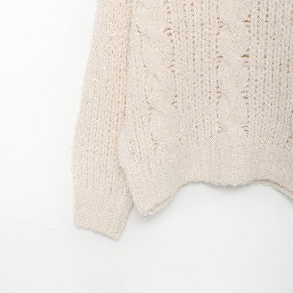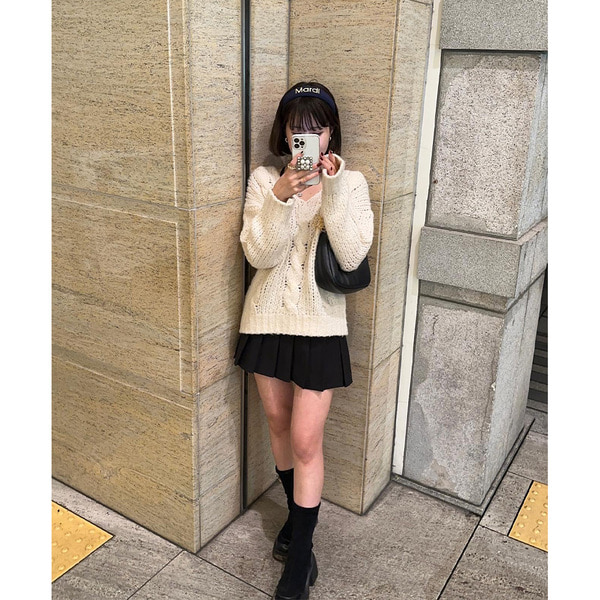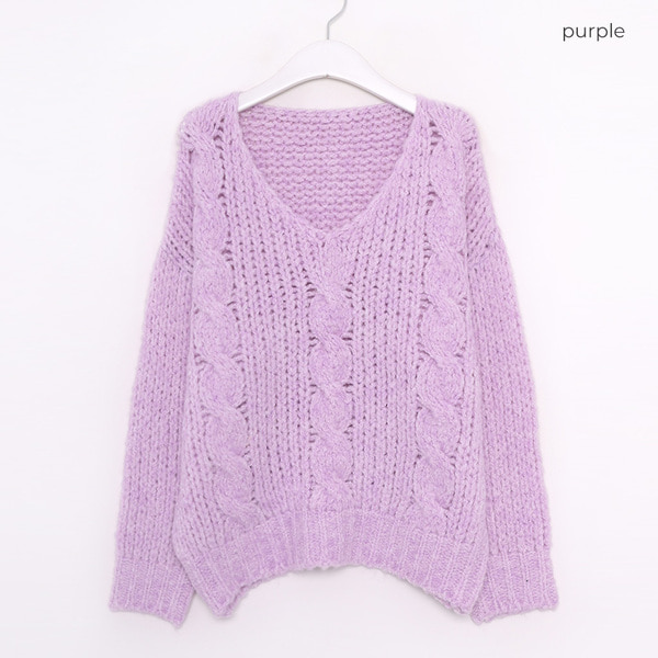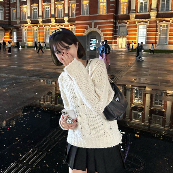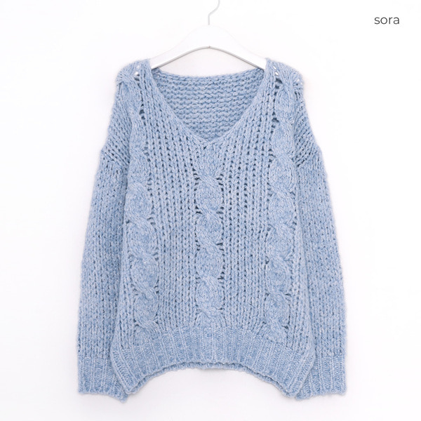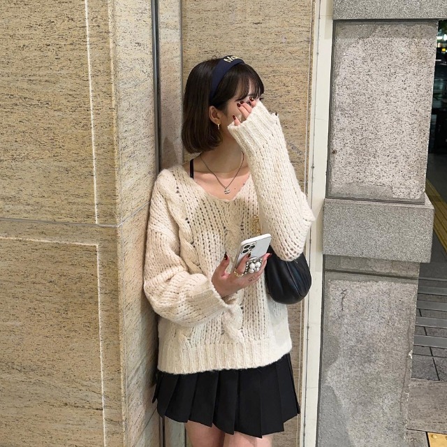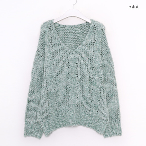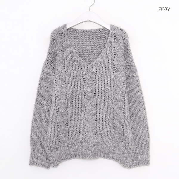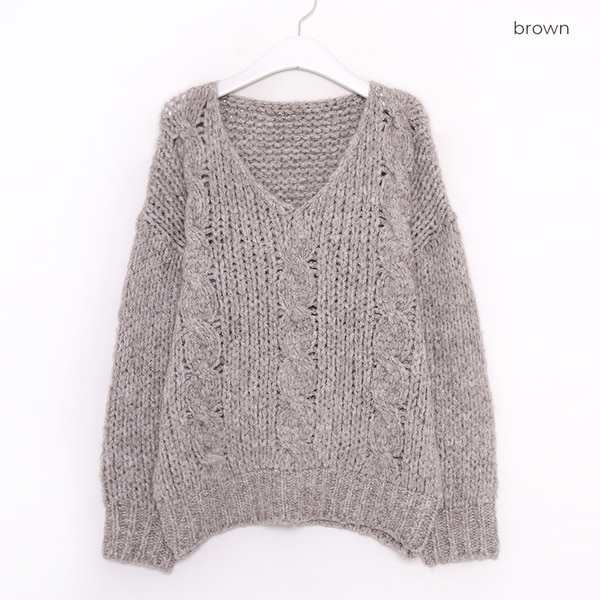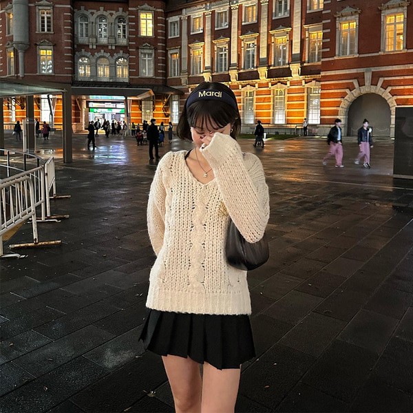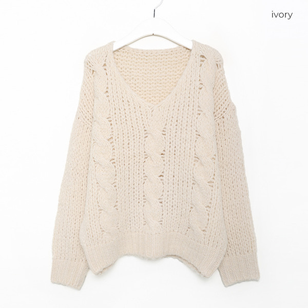 Vネックケーブルニット