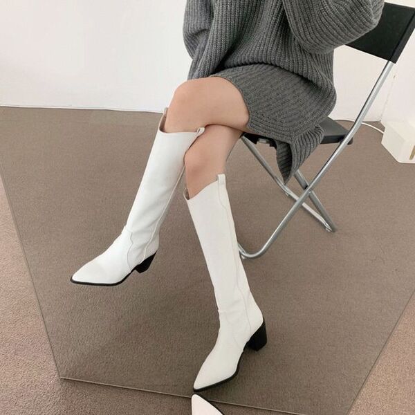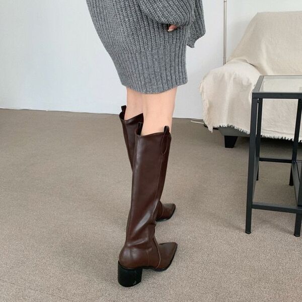 [6cm] ロングウエスタンミドルヒールブーツ(3color)