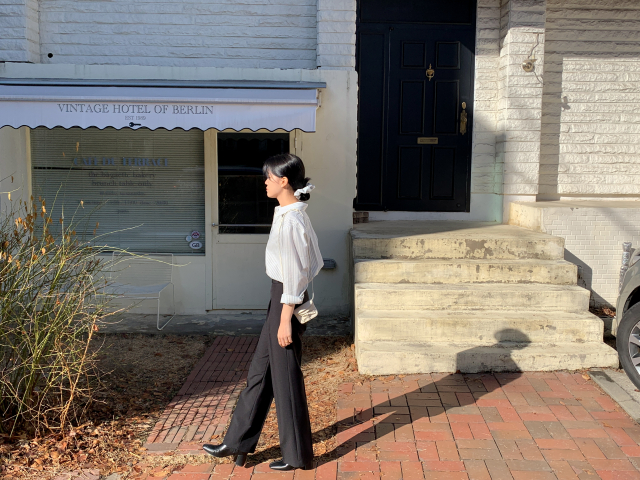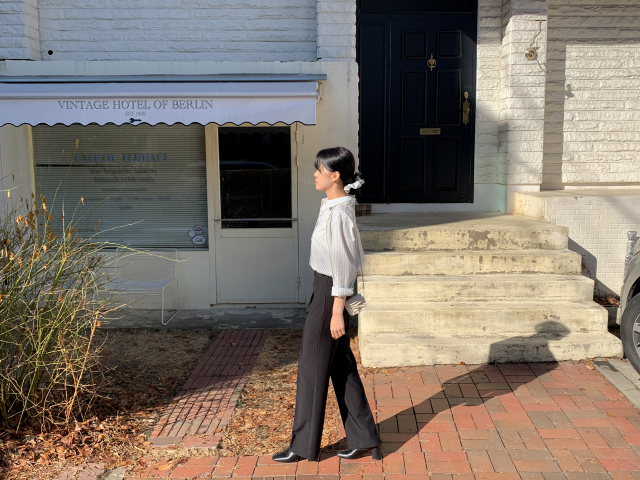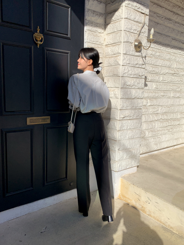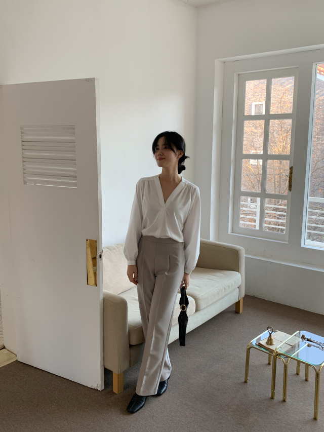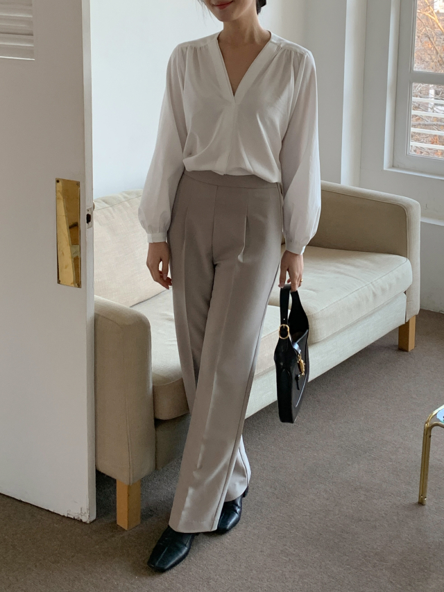 [original] Modernハイウエストセミワイドピンタックスラックスパンツ