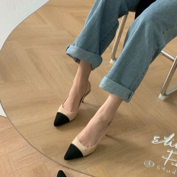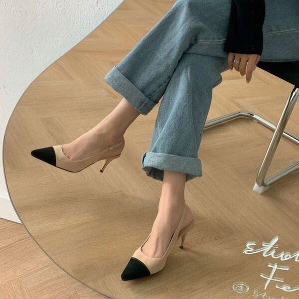 [7cm] 配色スリングバックスティレットヒール(2color)