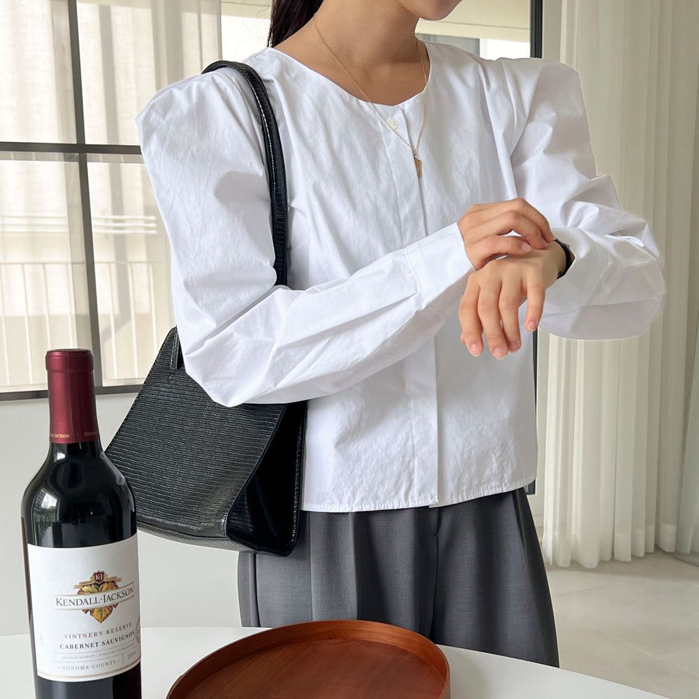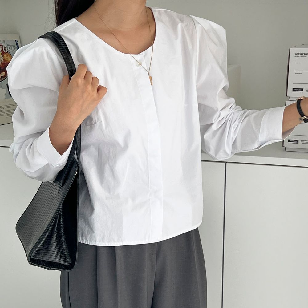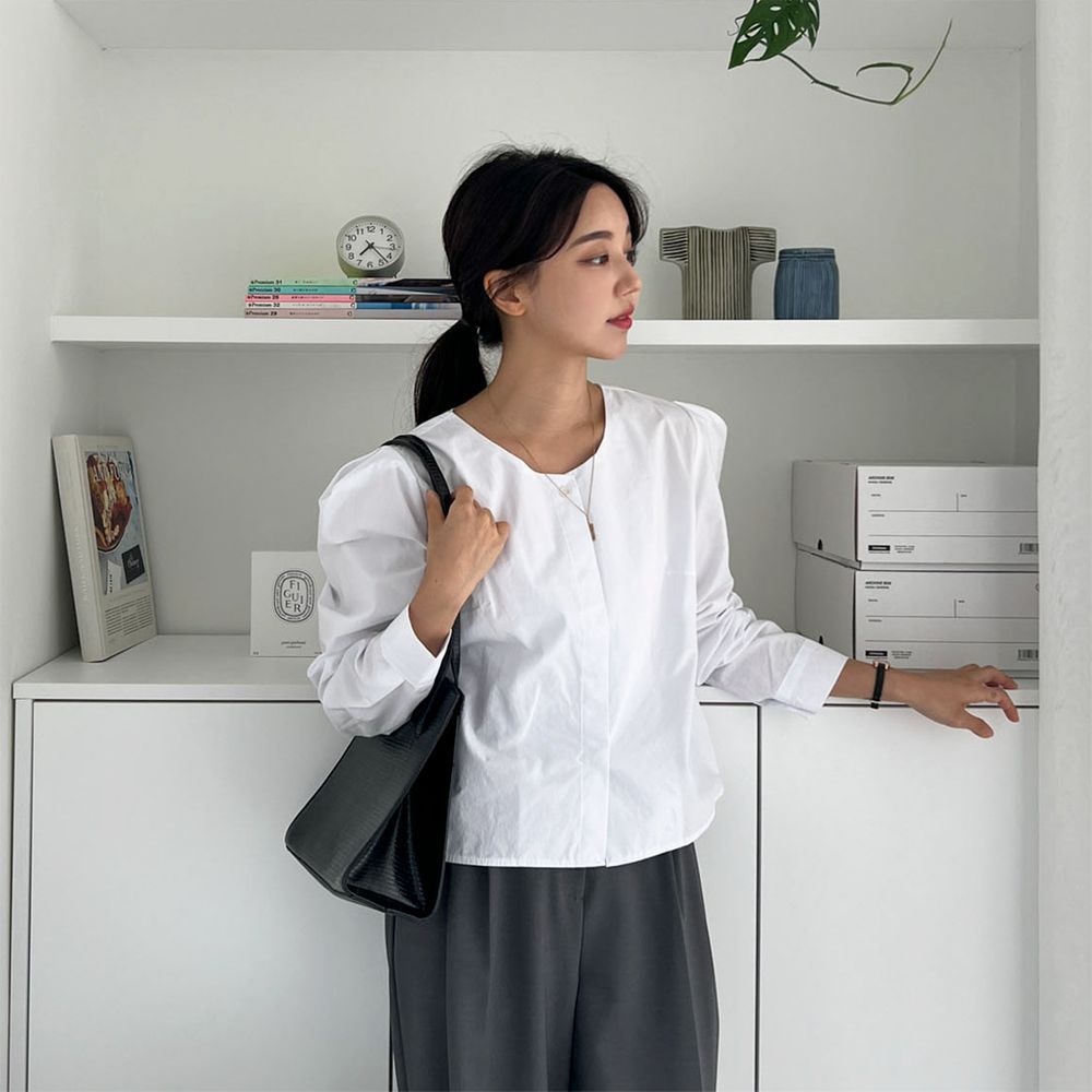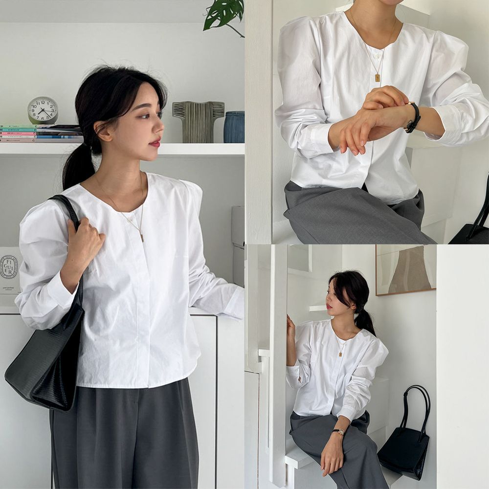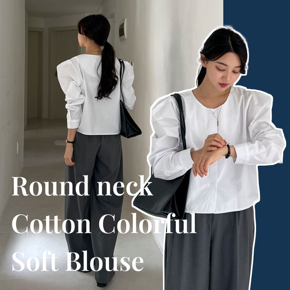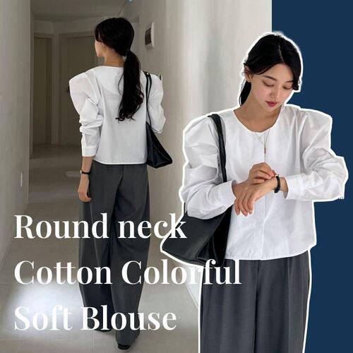 無地 ラウンドネック コットン カラフル ソフト ブラウス