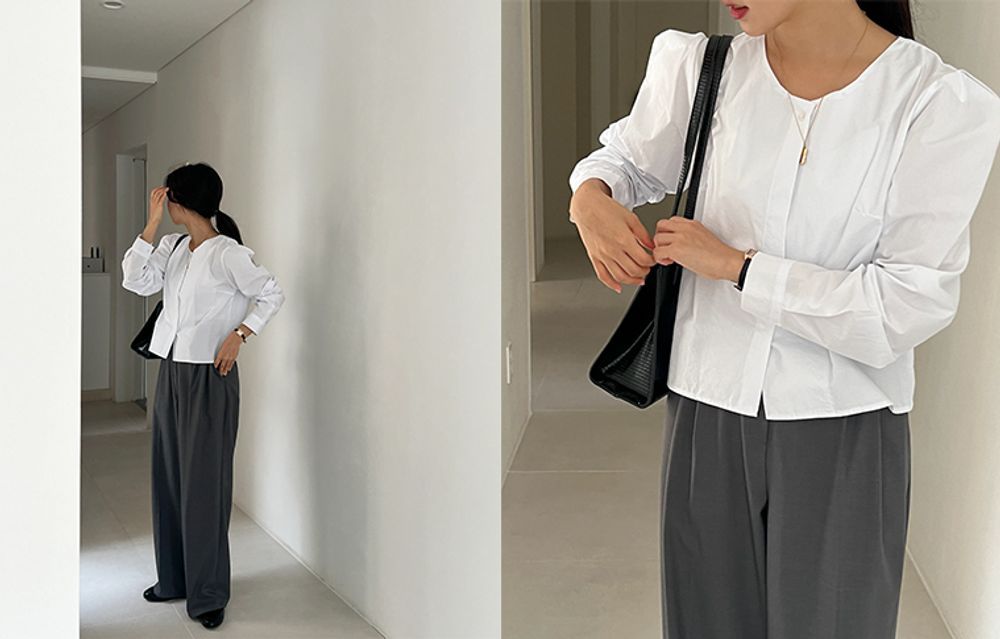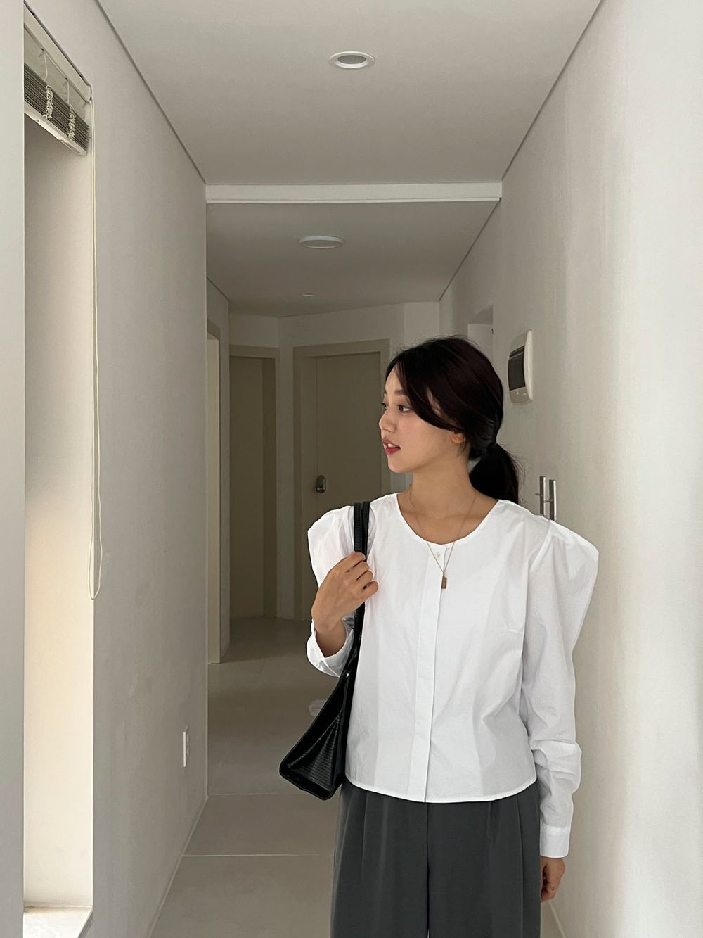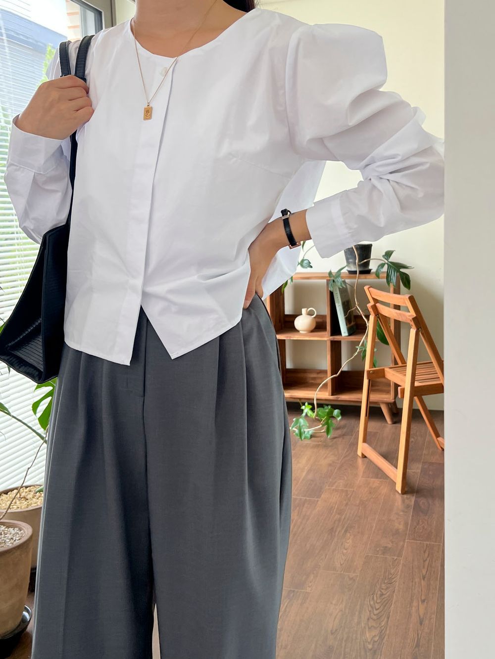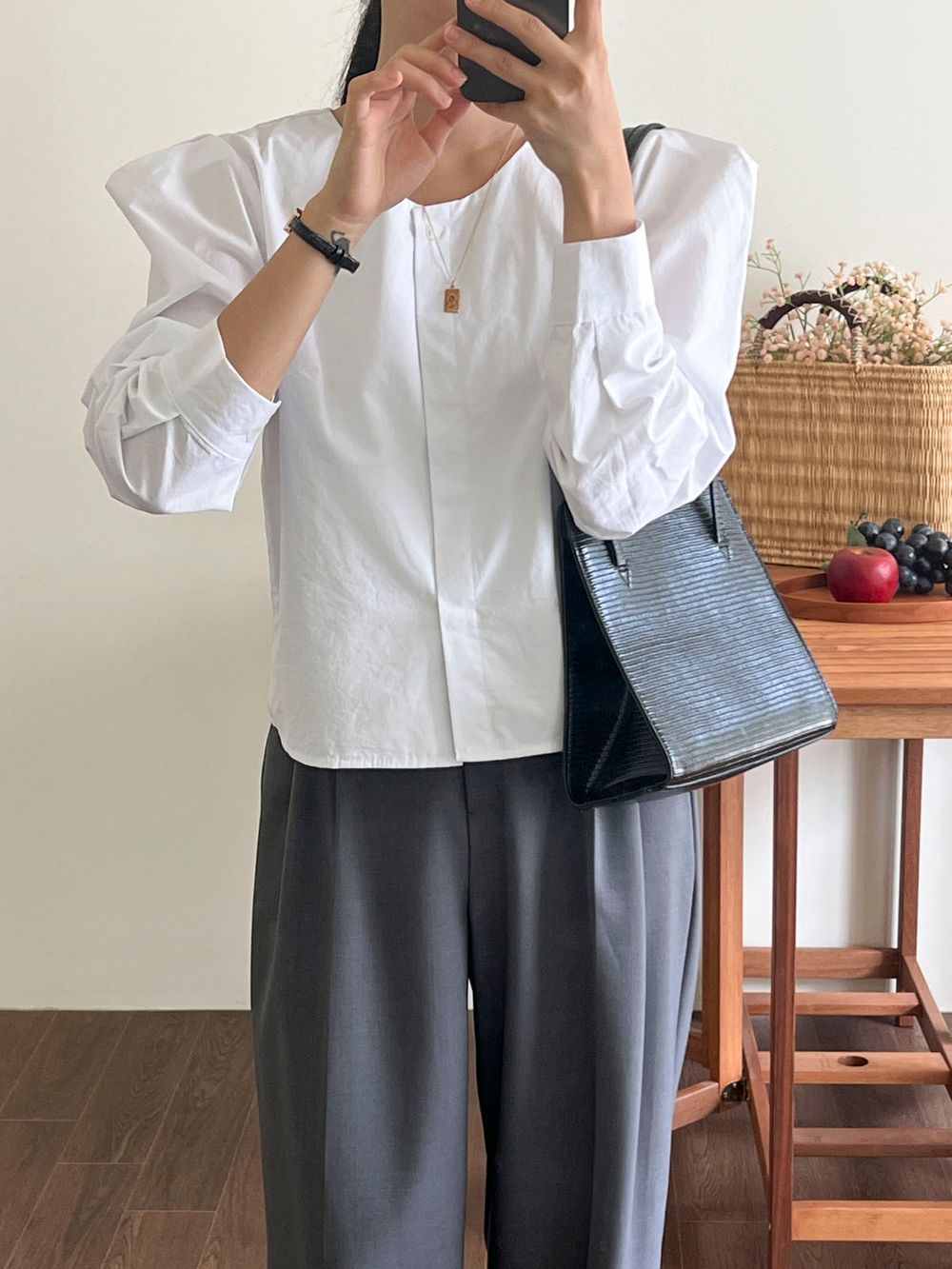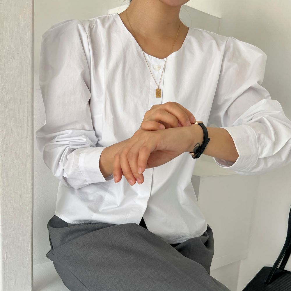 無地 ラウンドネック コットン カラフル ソフト ブラウス