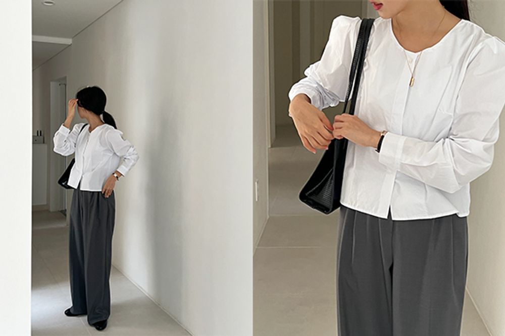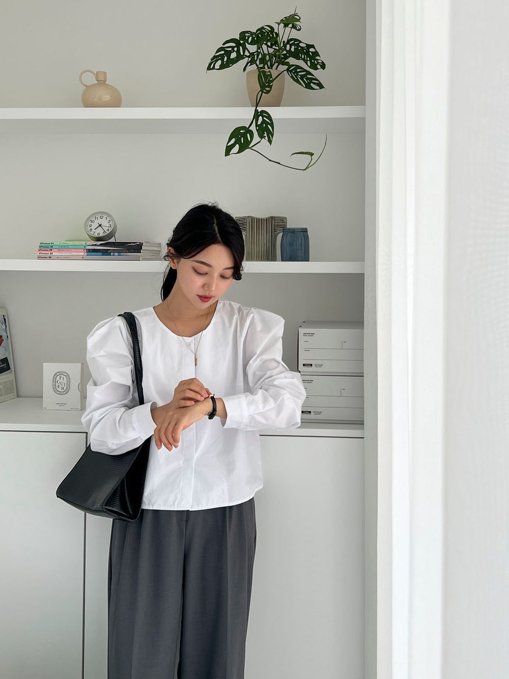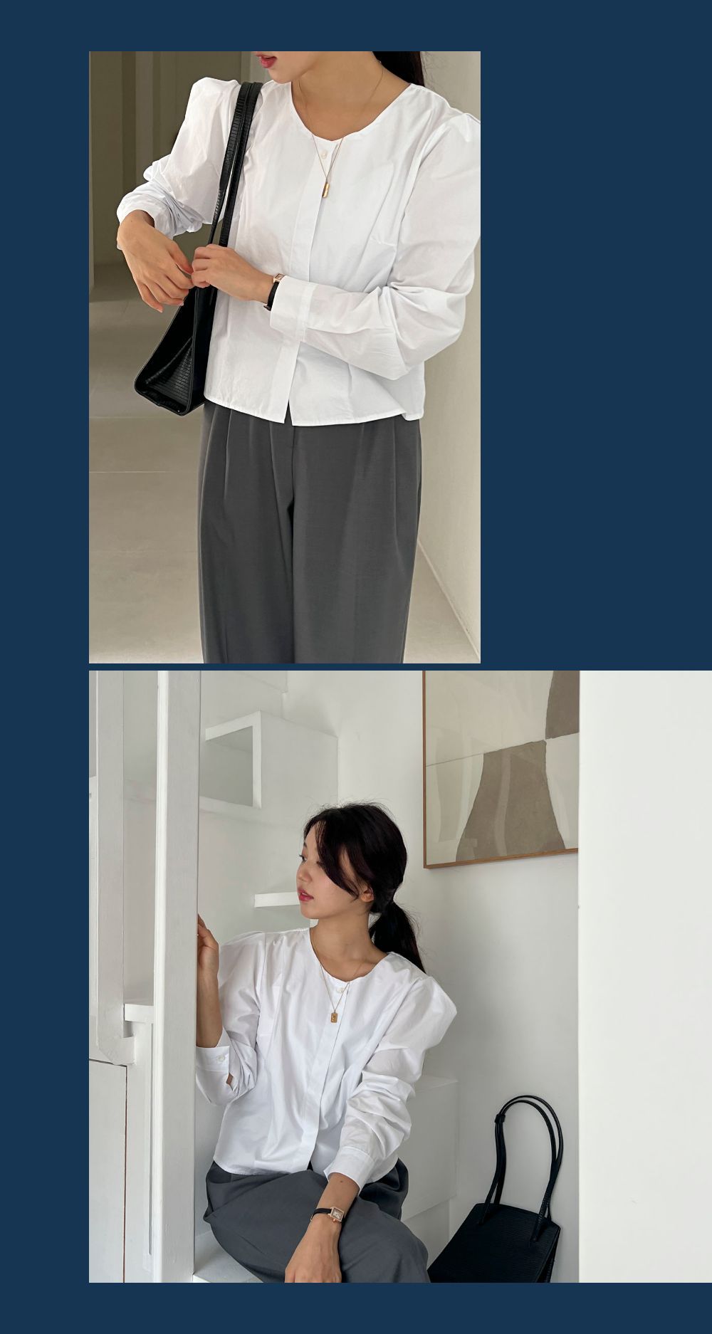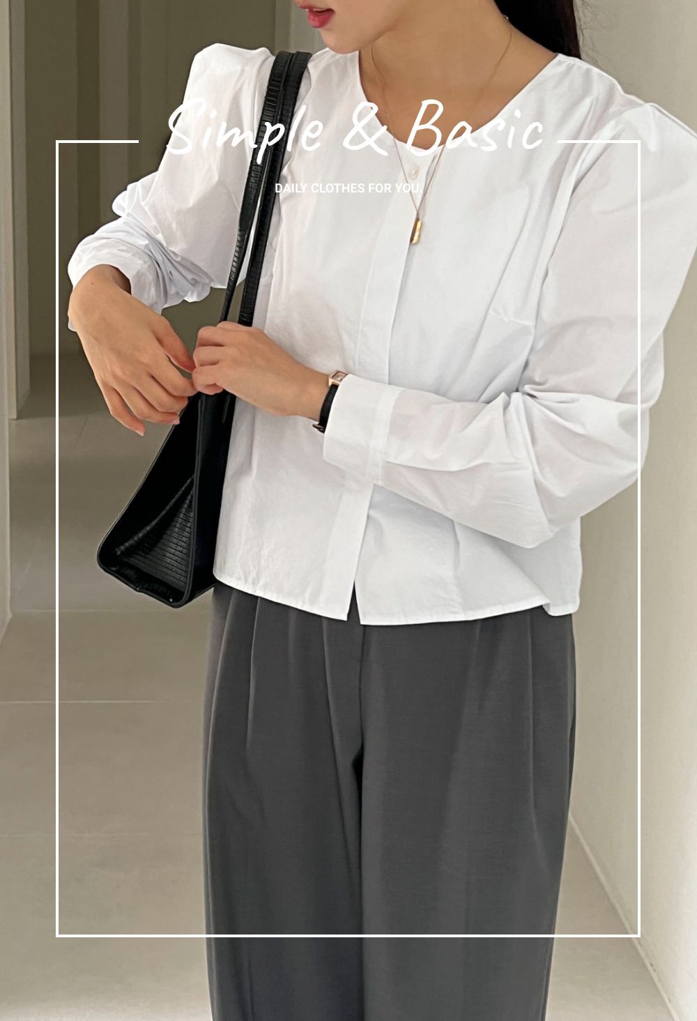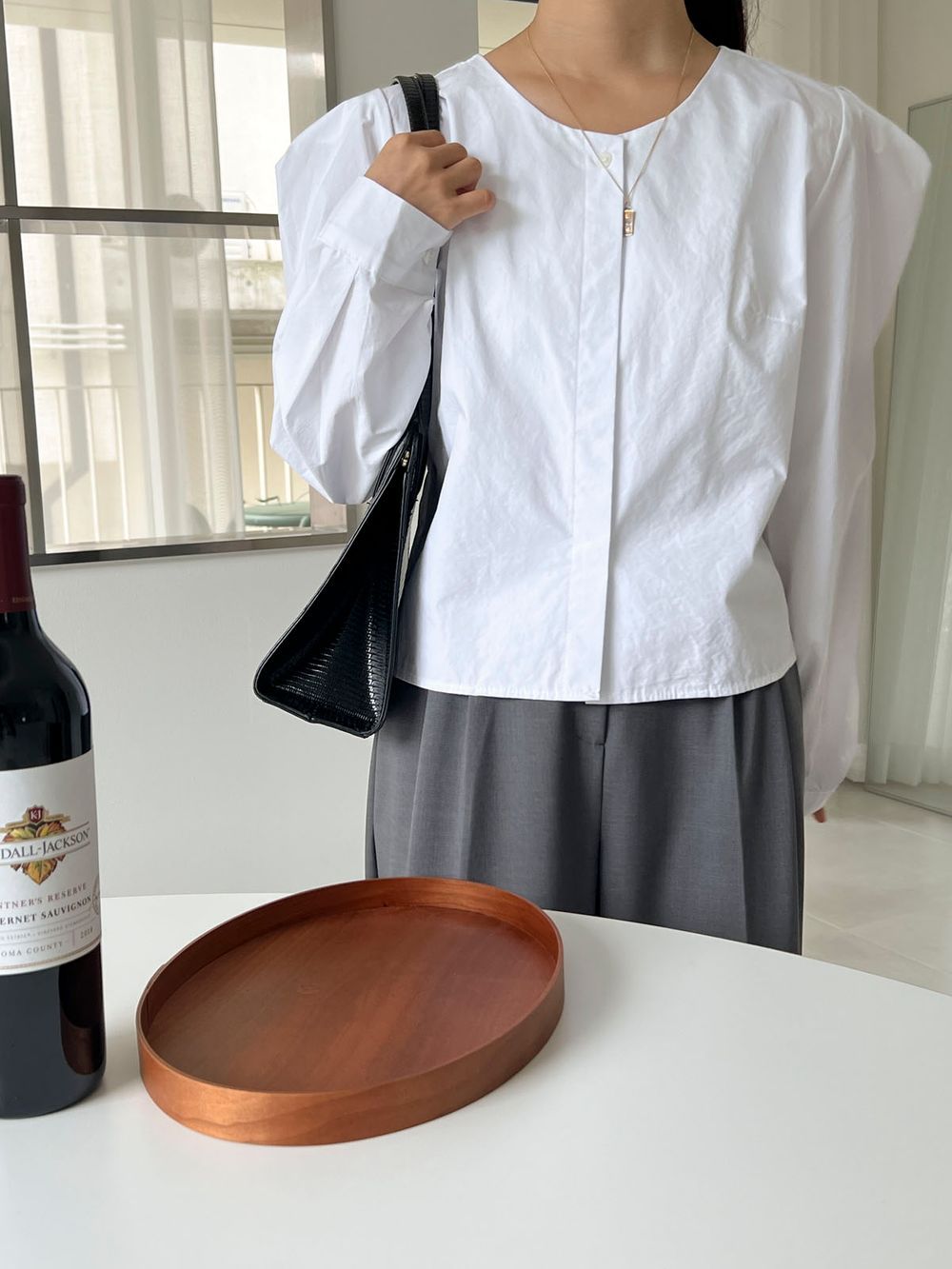 無地 ラウンドネック コットン カラフル ソフト ブラウス