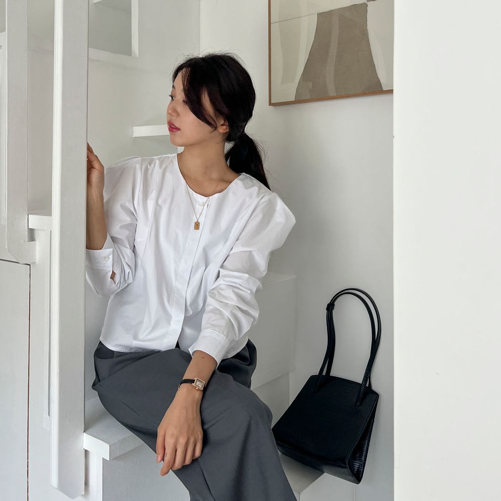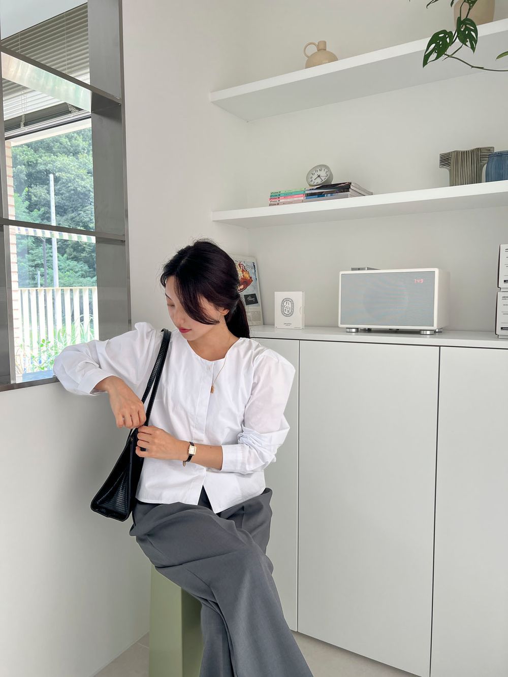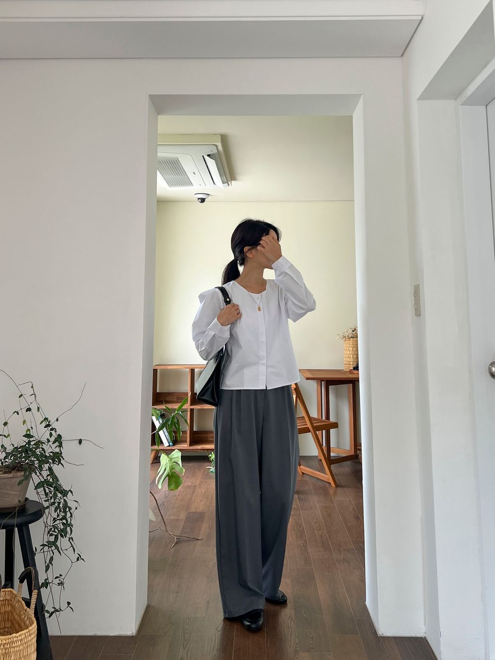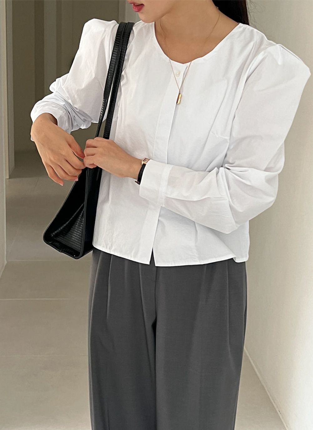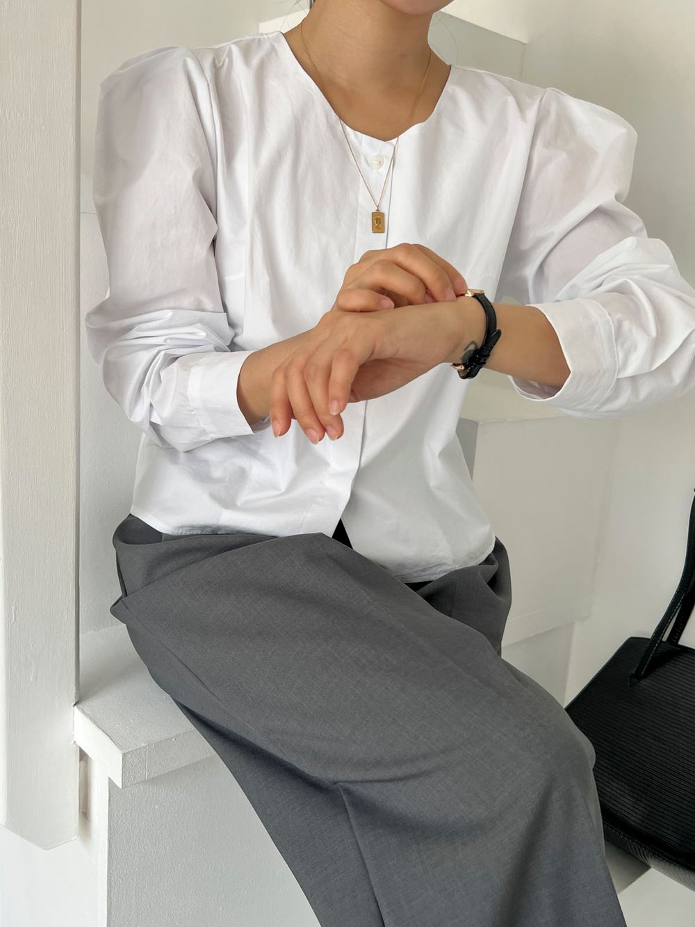無地 ラウンドネック コットン カラフル ソフト ブラウス