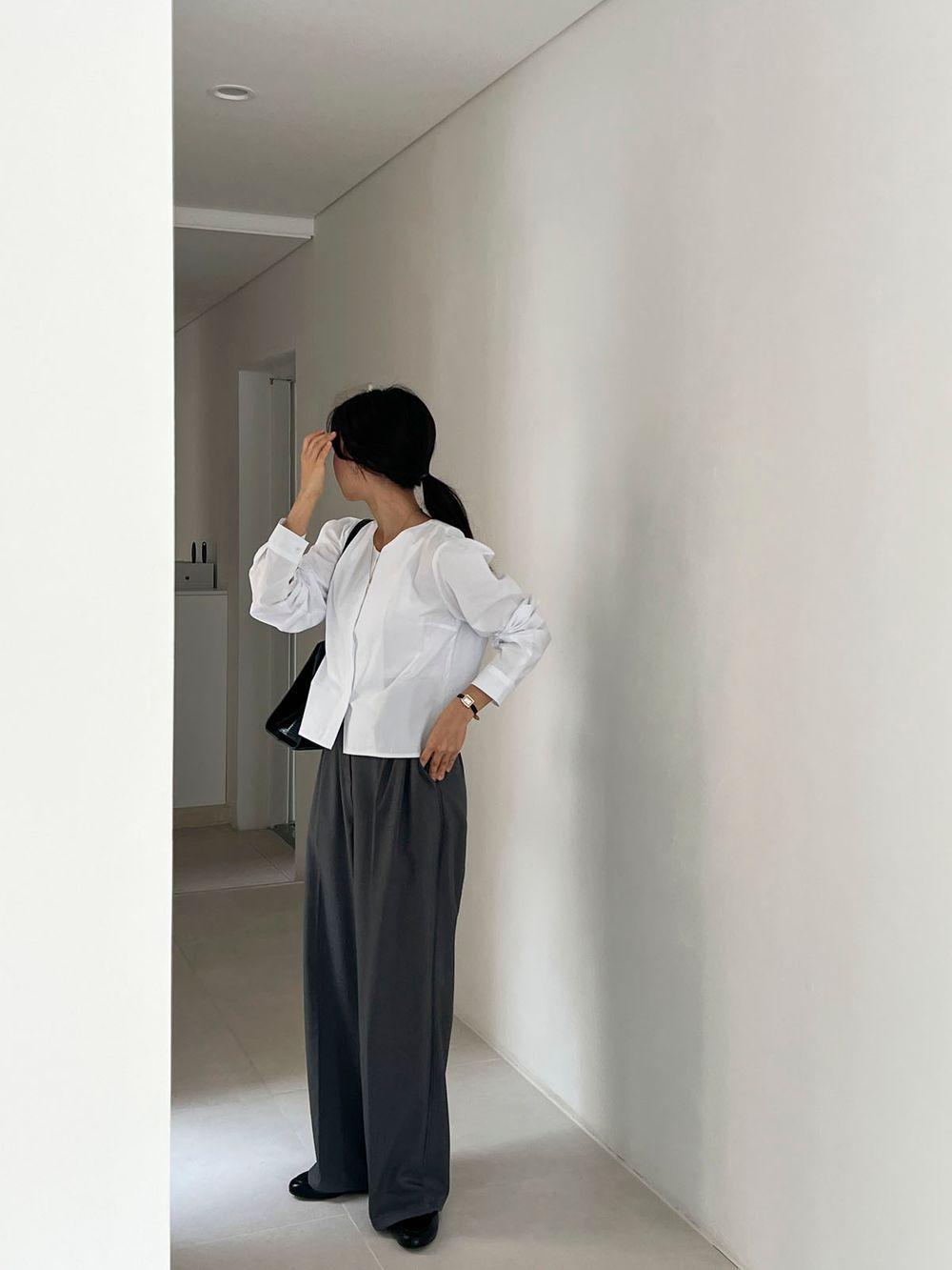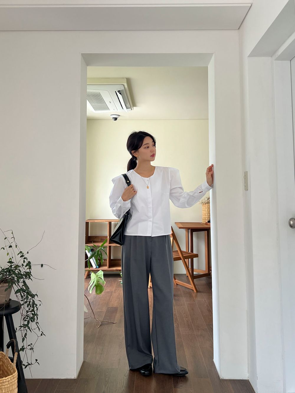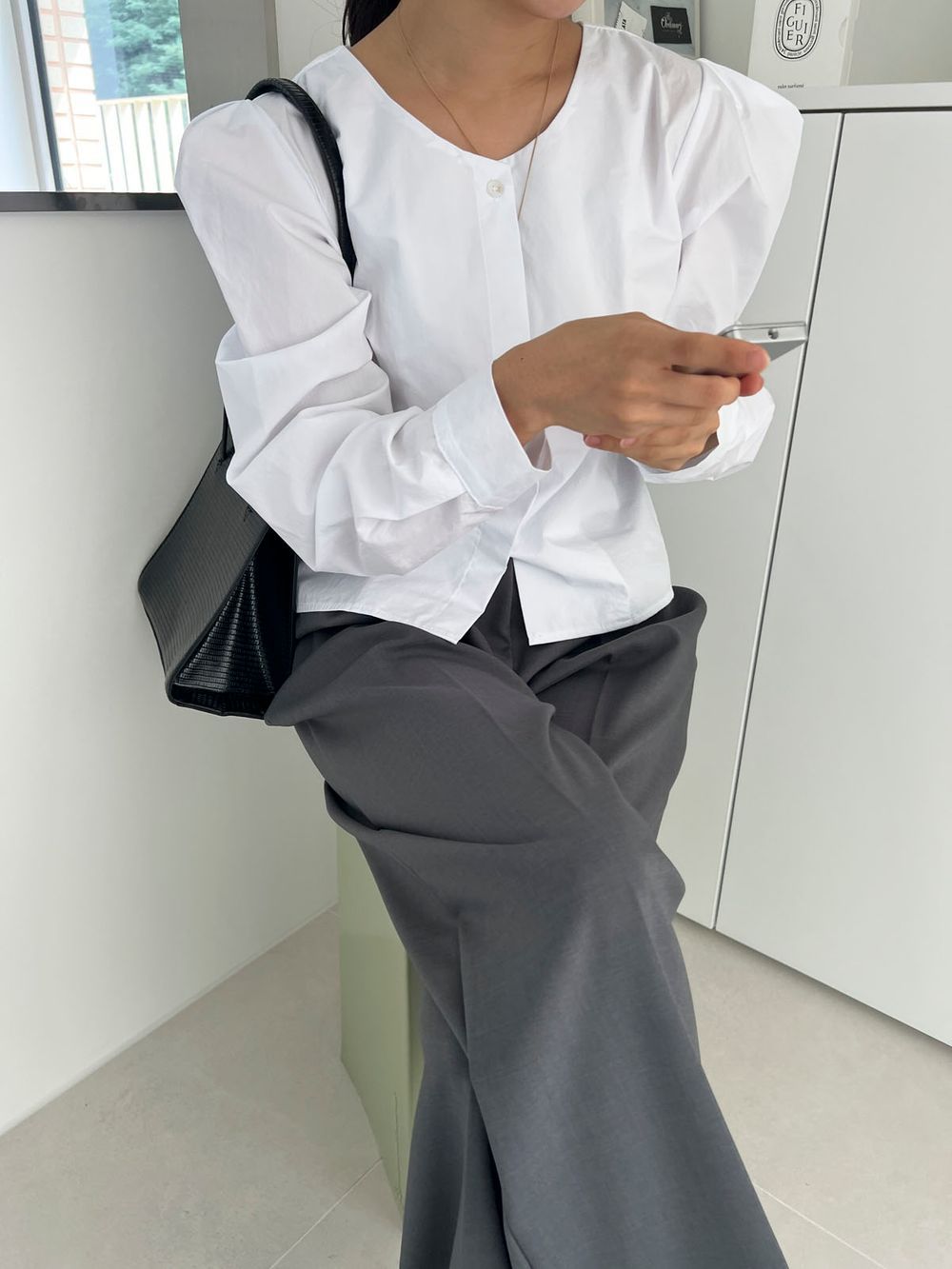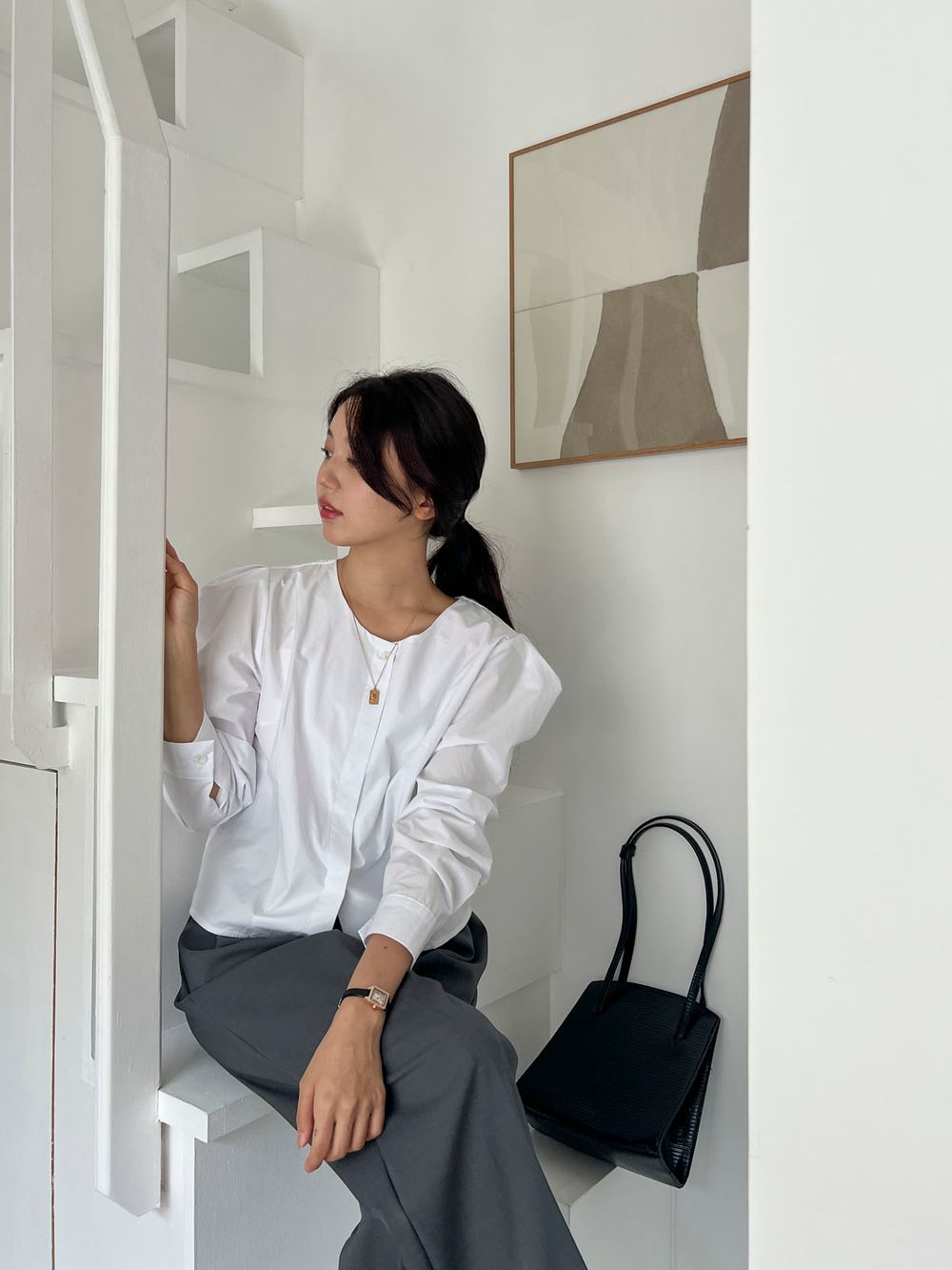 無地 ラウンドネック コットン カラフル ソフト ブラウス