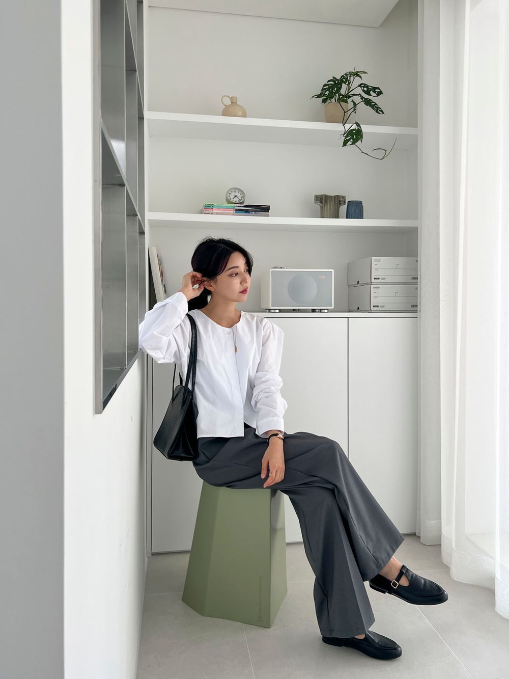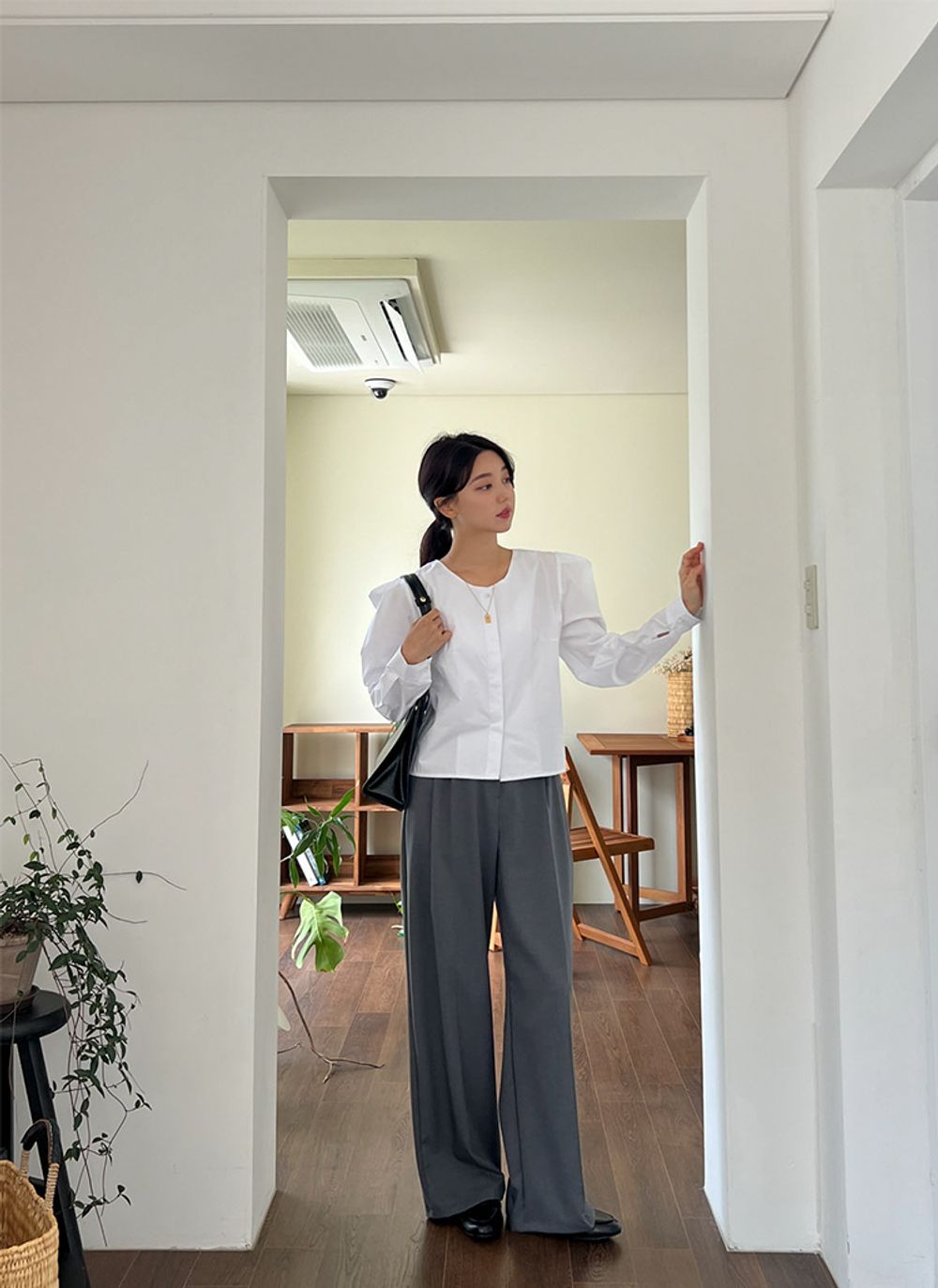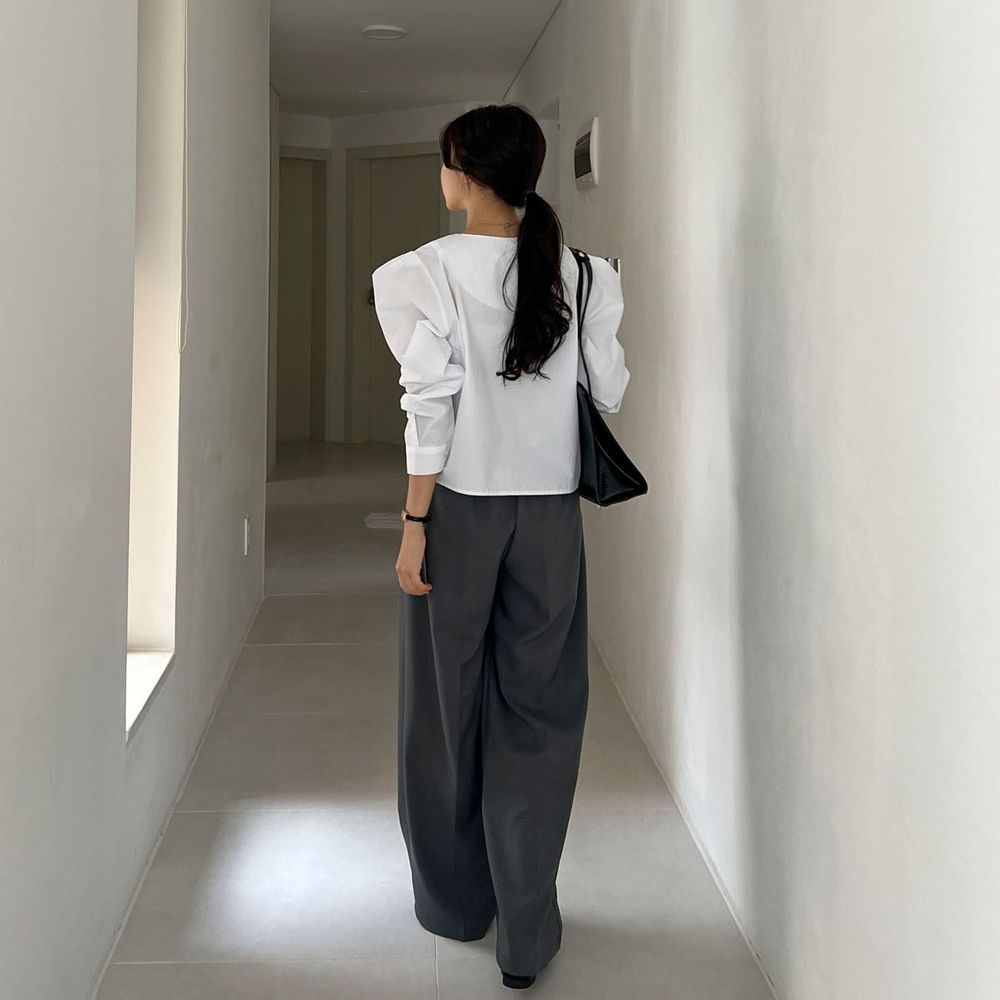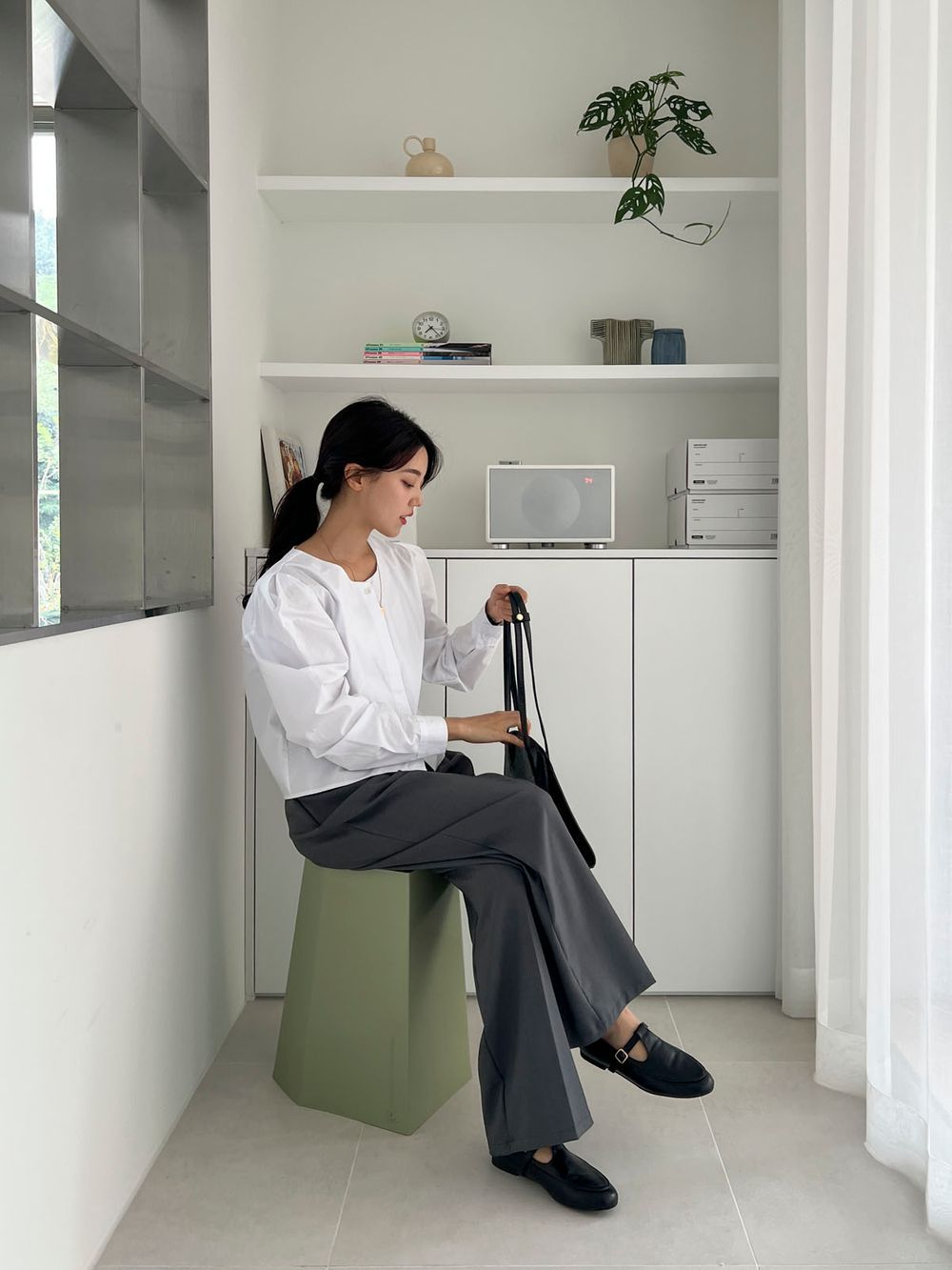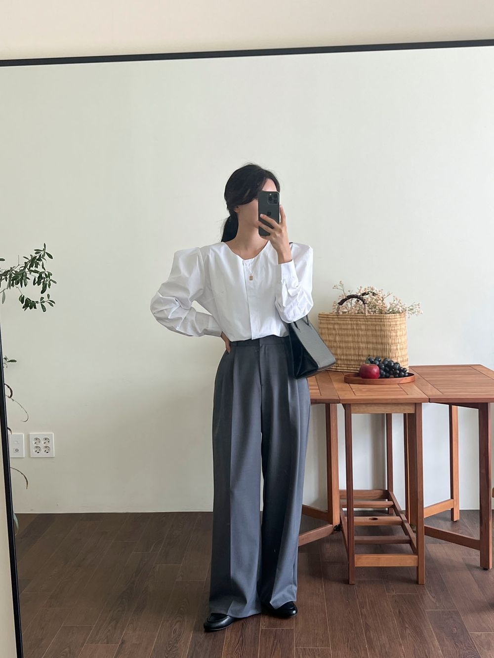 無地 ラウンドネック コットン カラフル ソフト ブラウス
