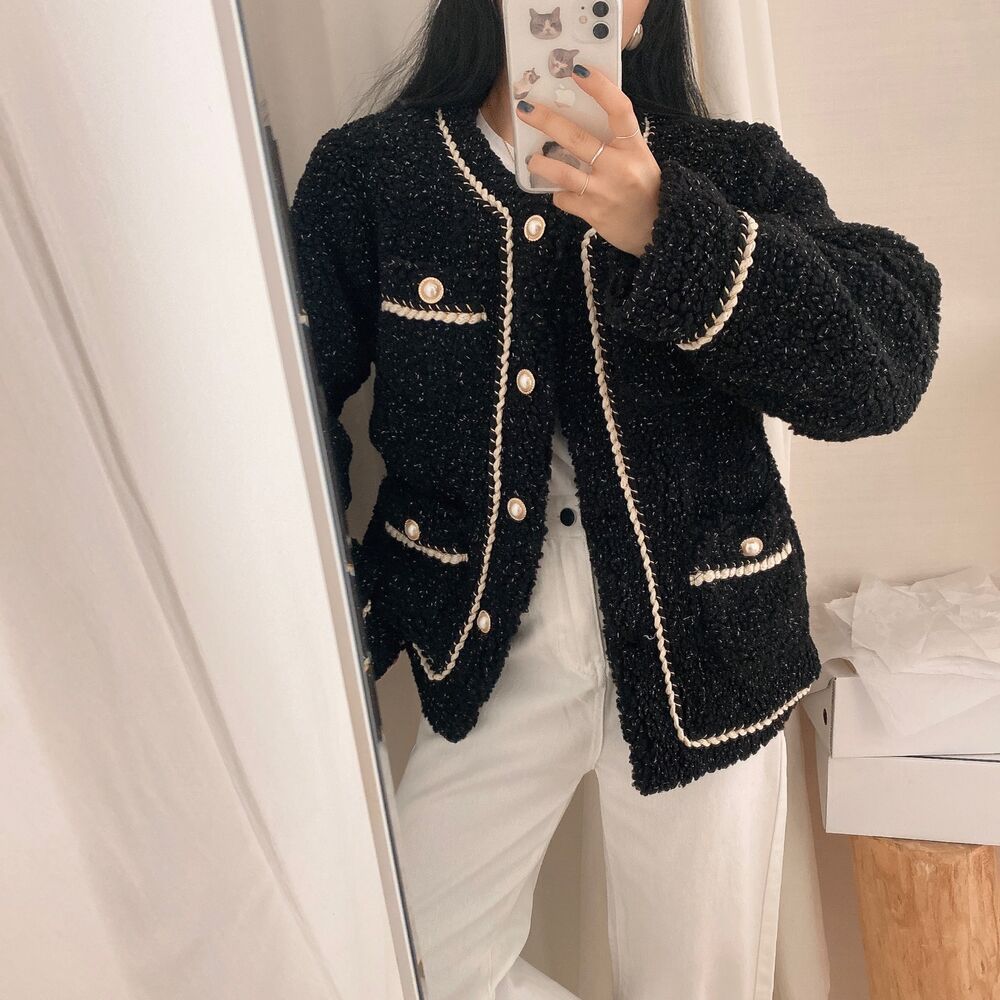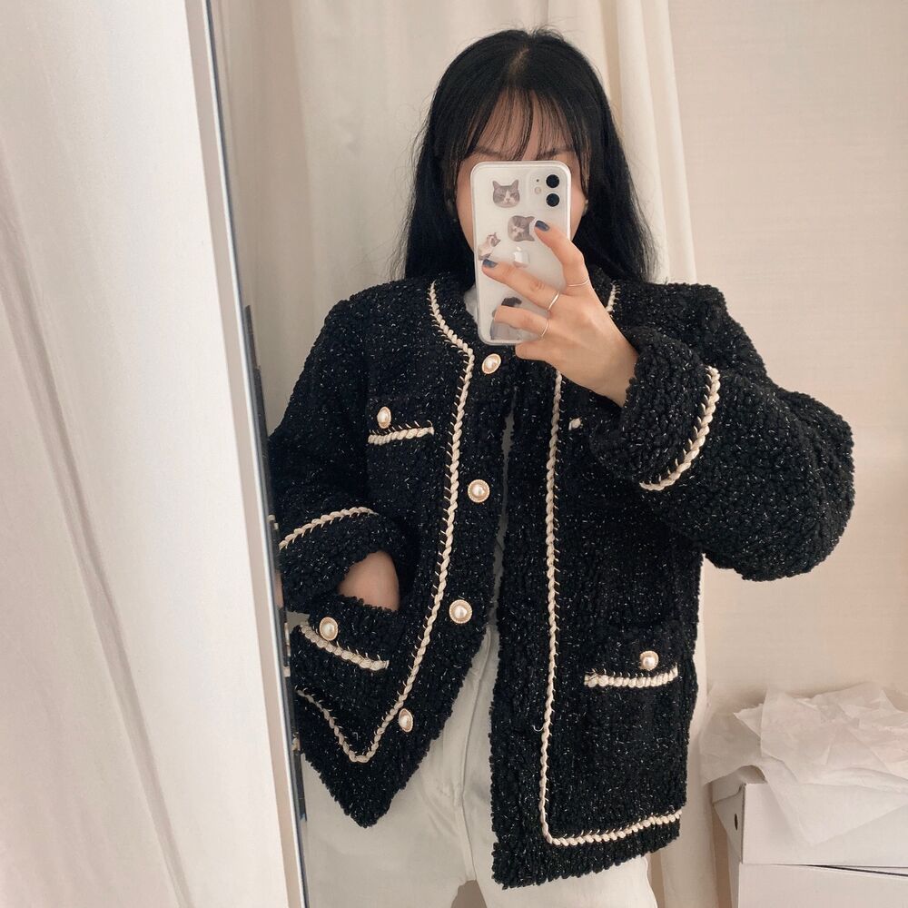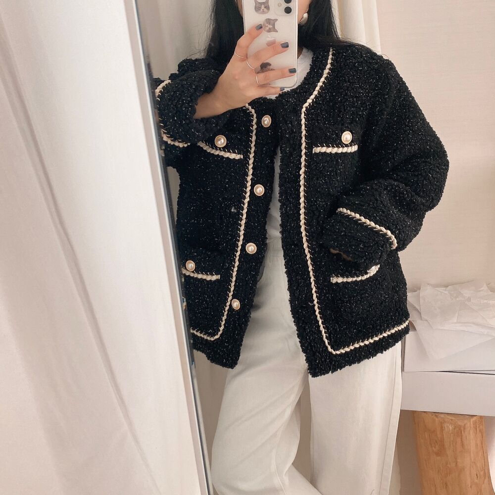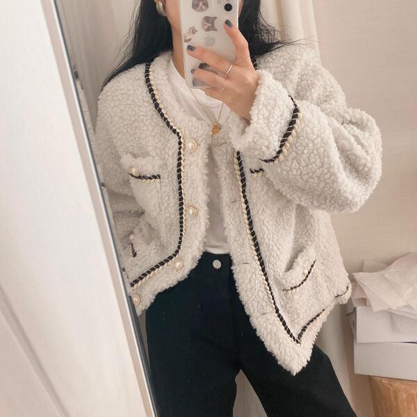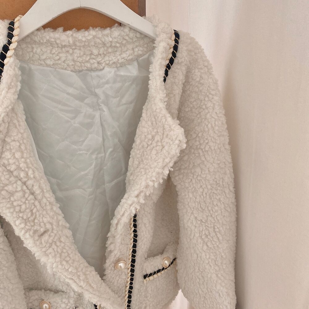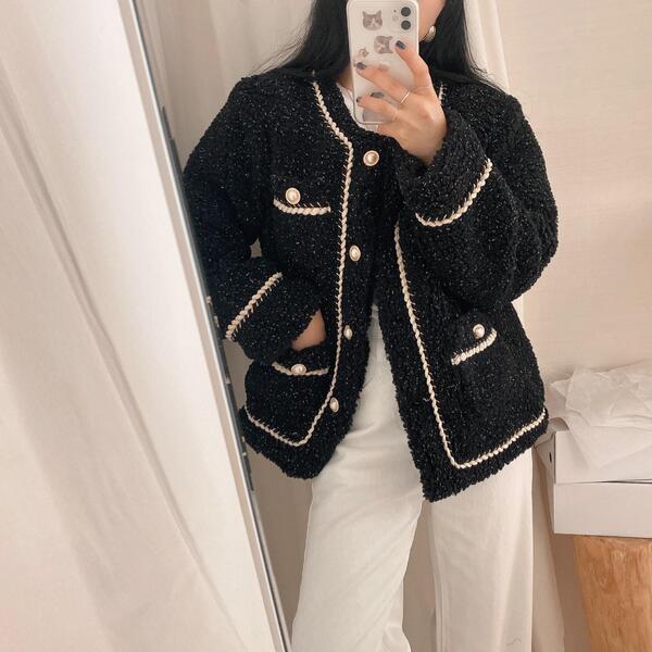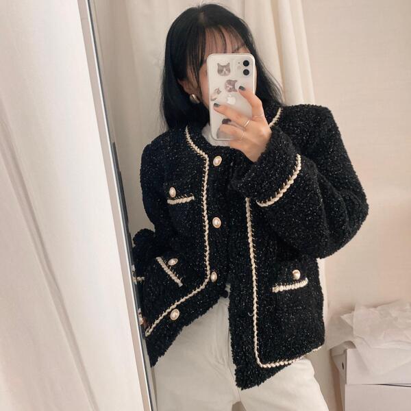 ツイードノーカラーキルティングジャケット