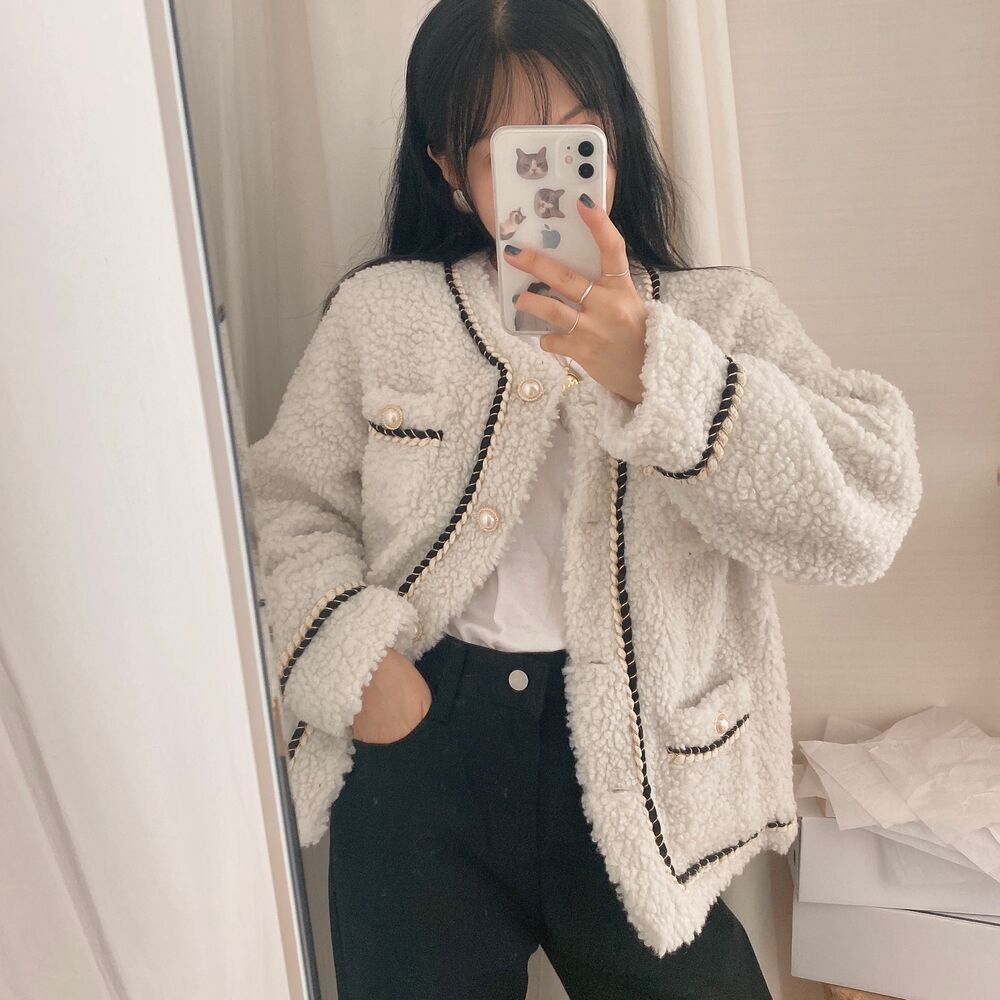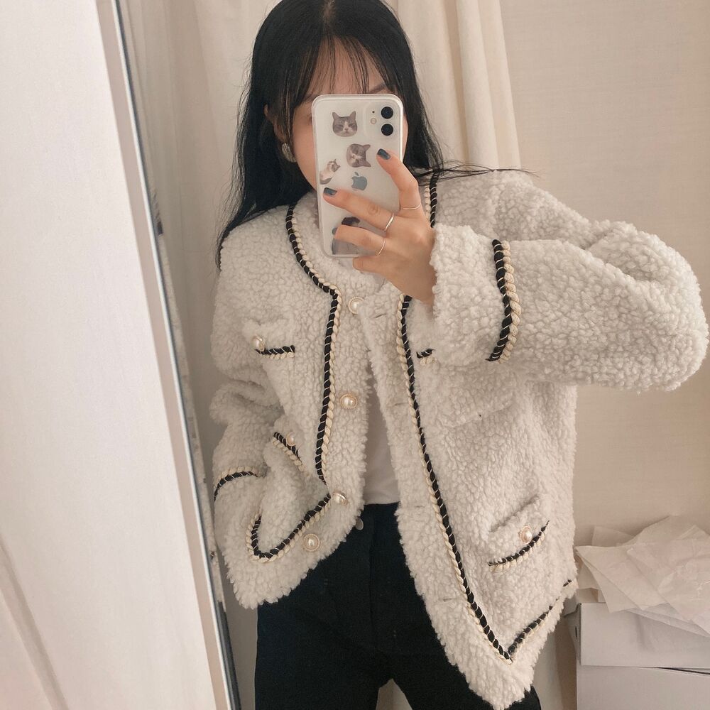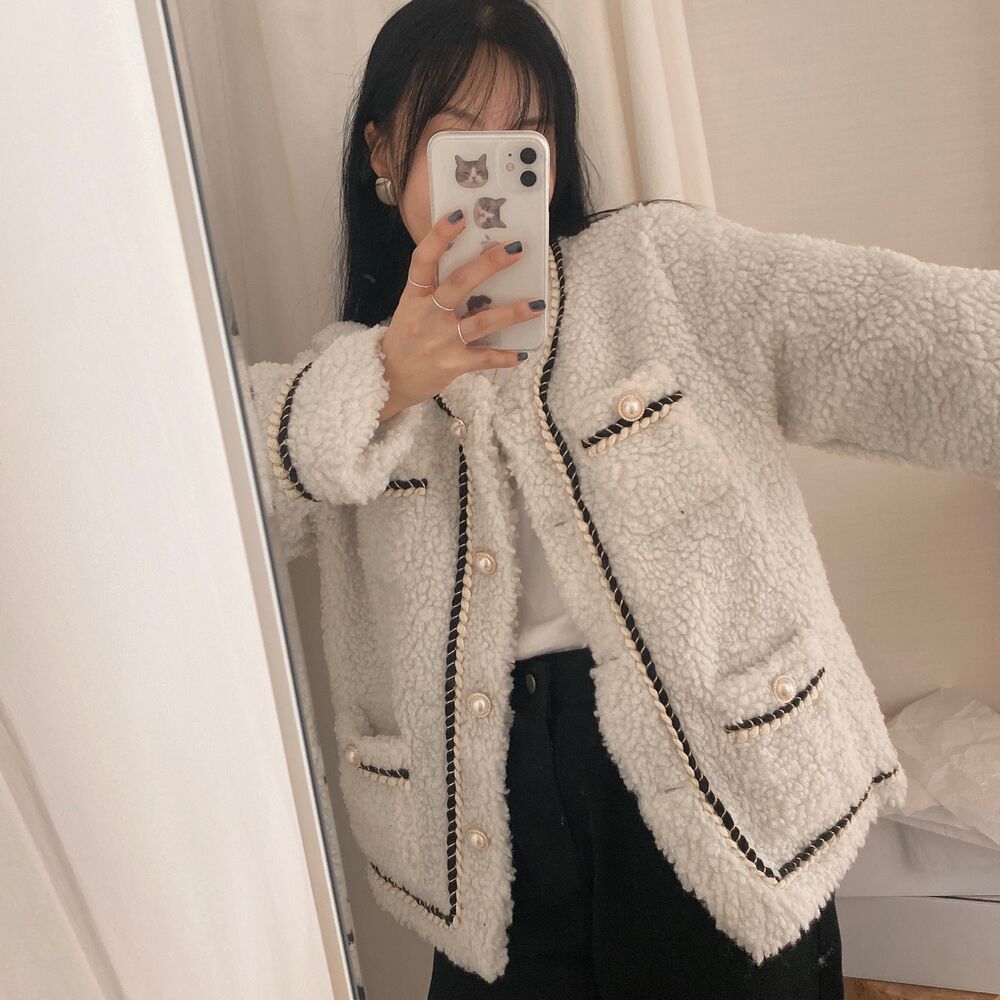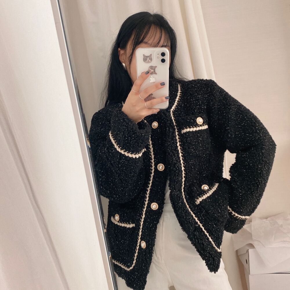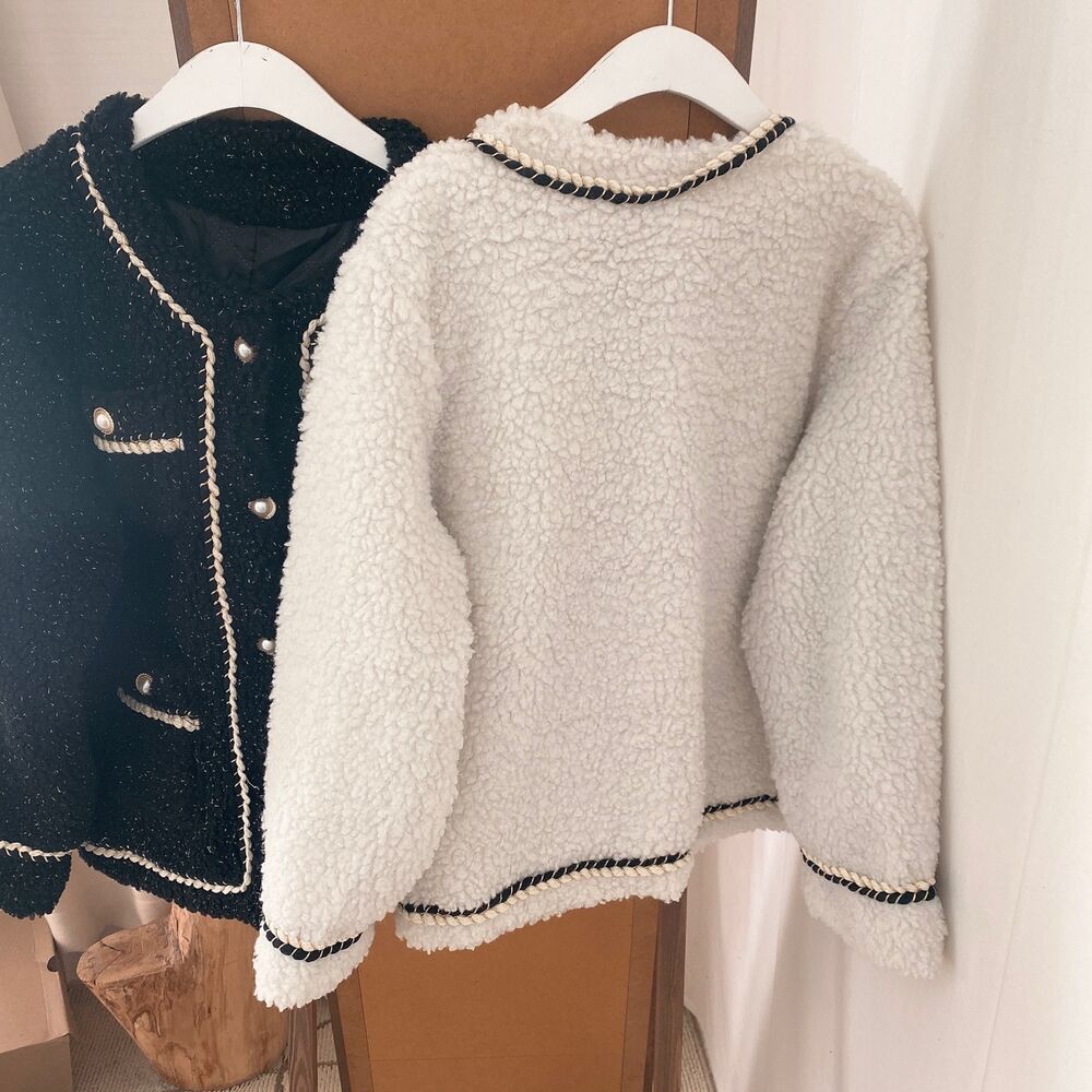 ツイードノーカラーキルティングジャケット