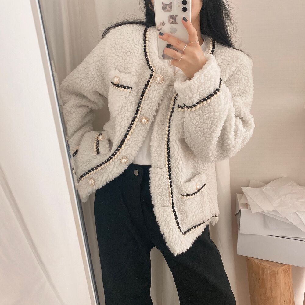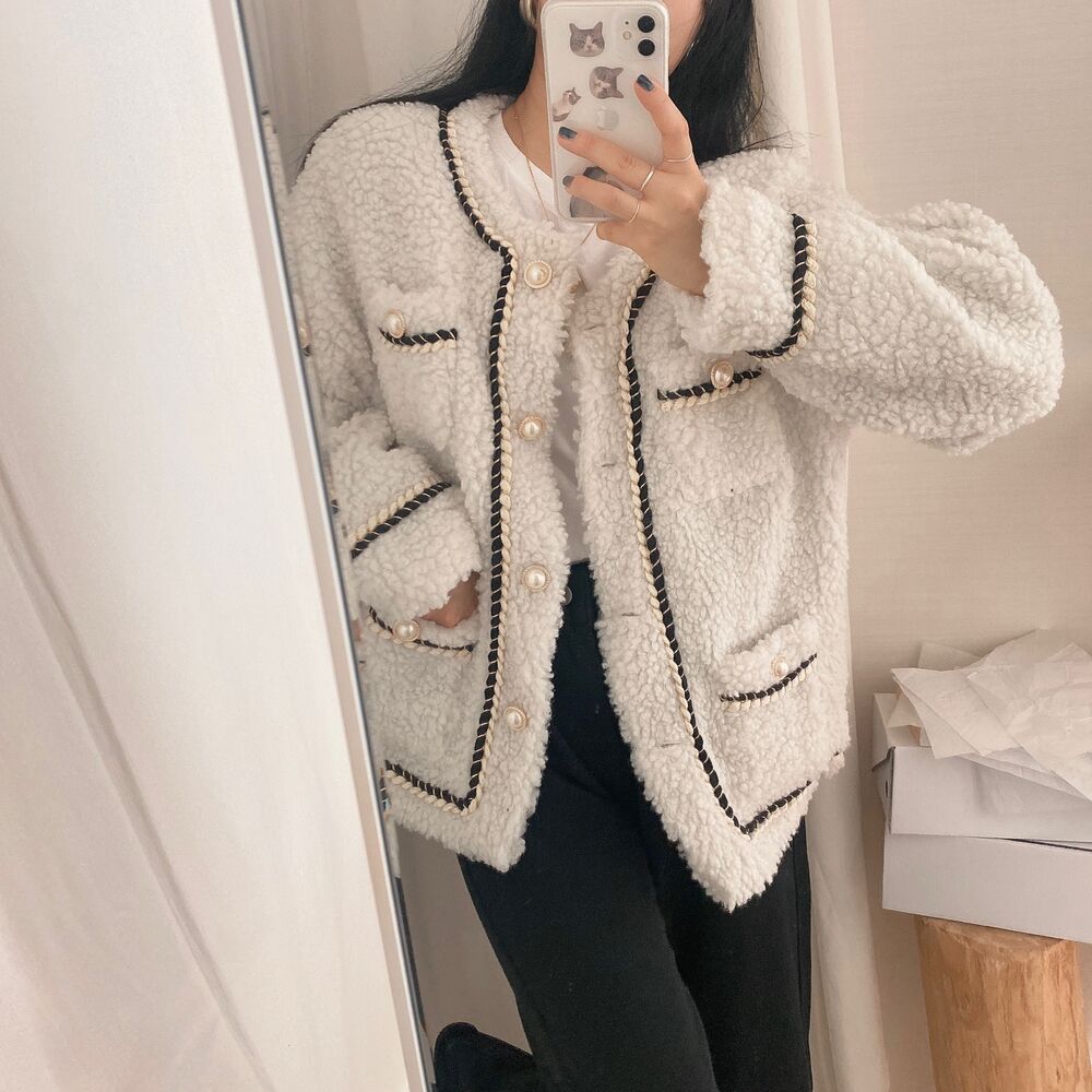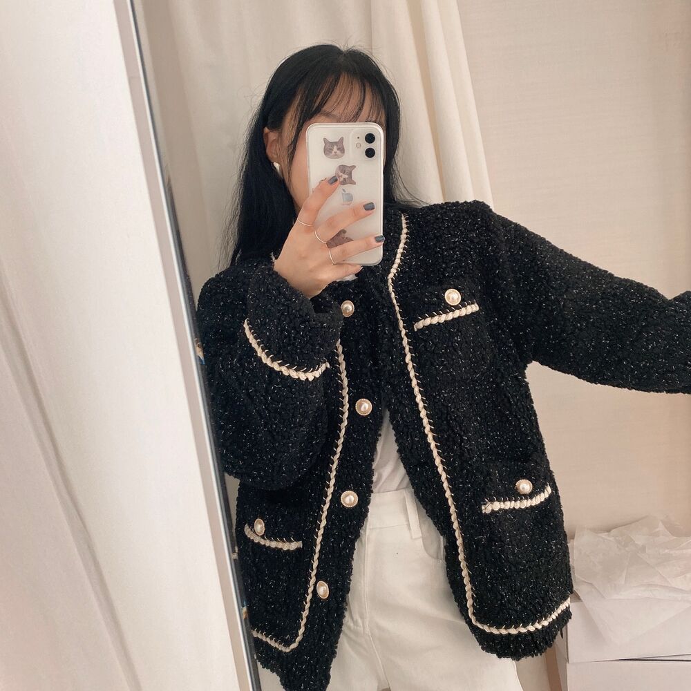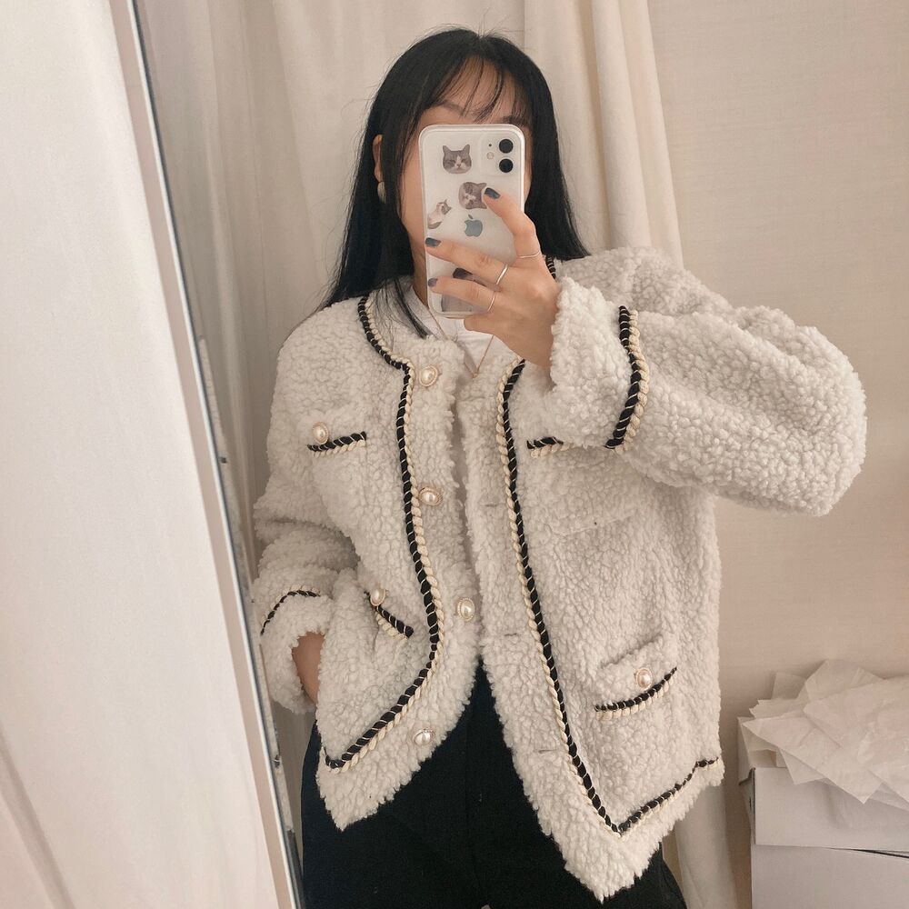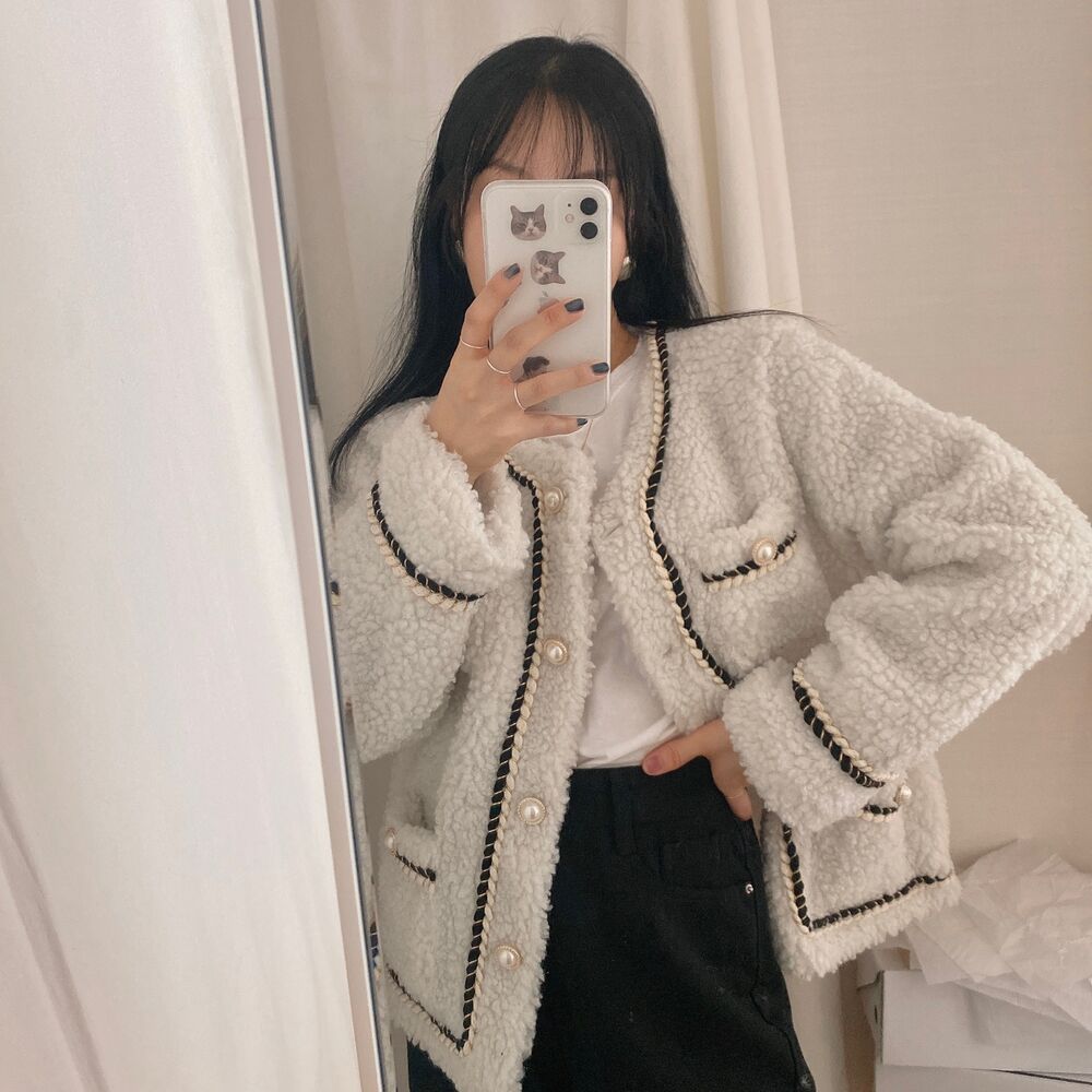 ツイードノーカラーキルティングジャケット