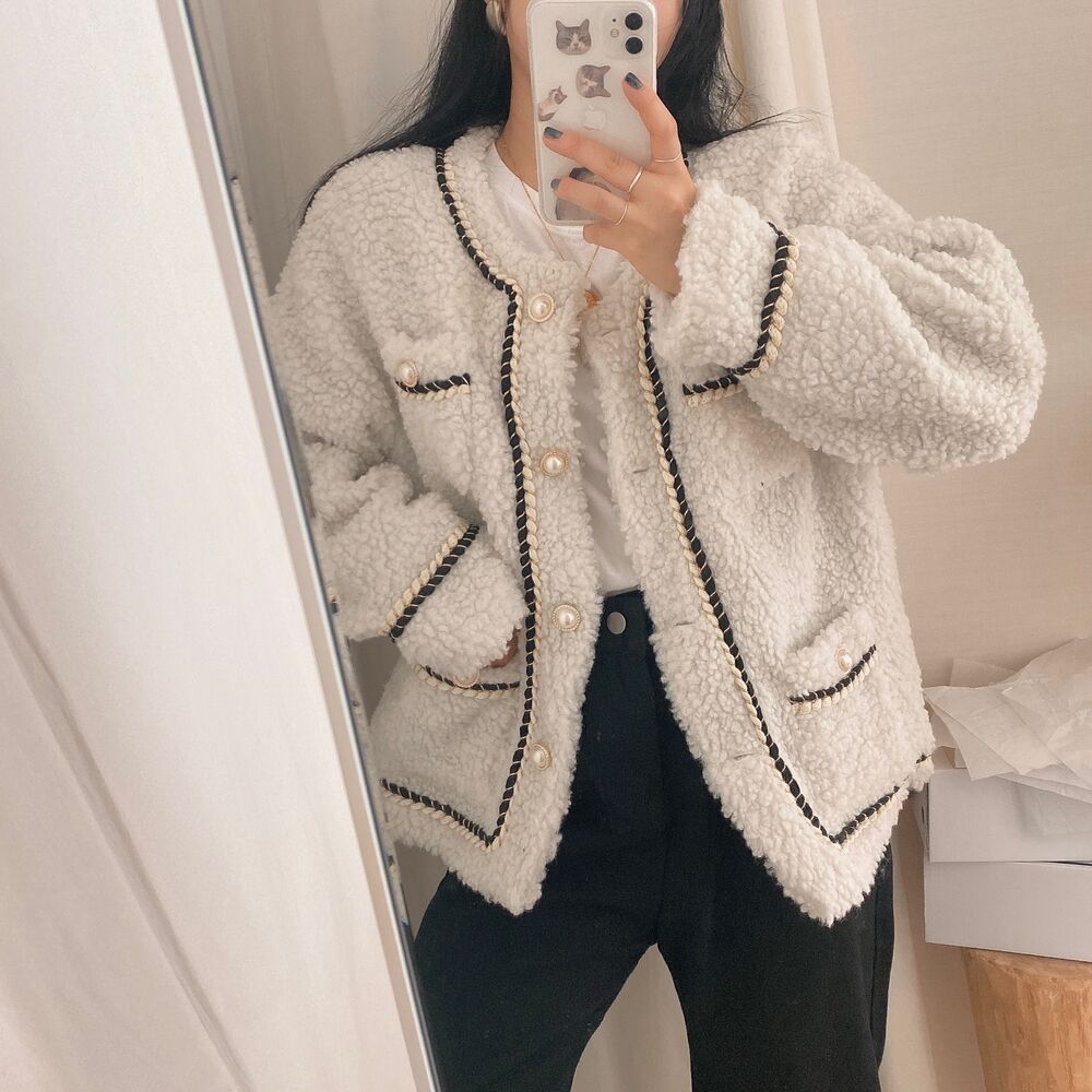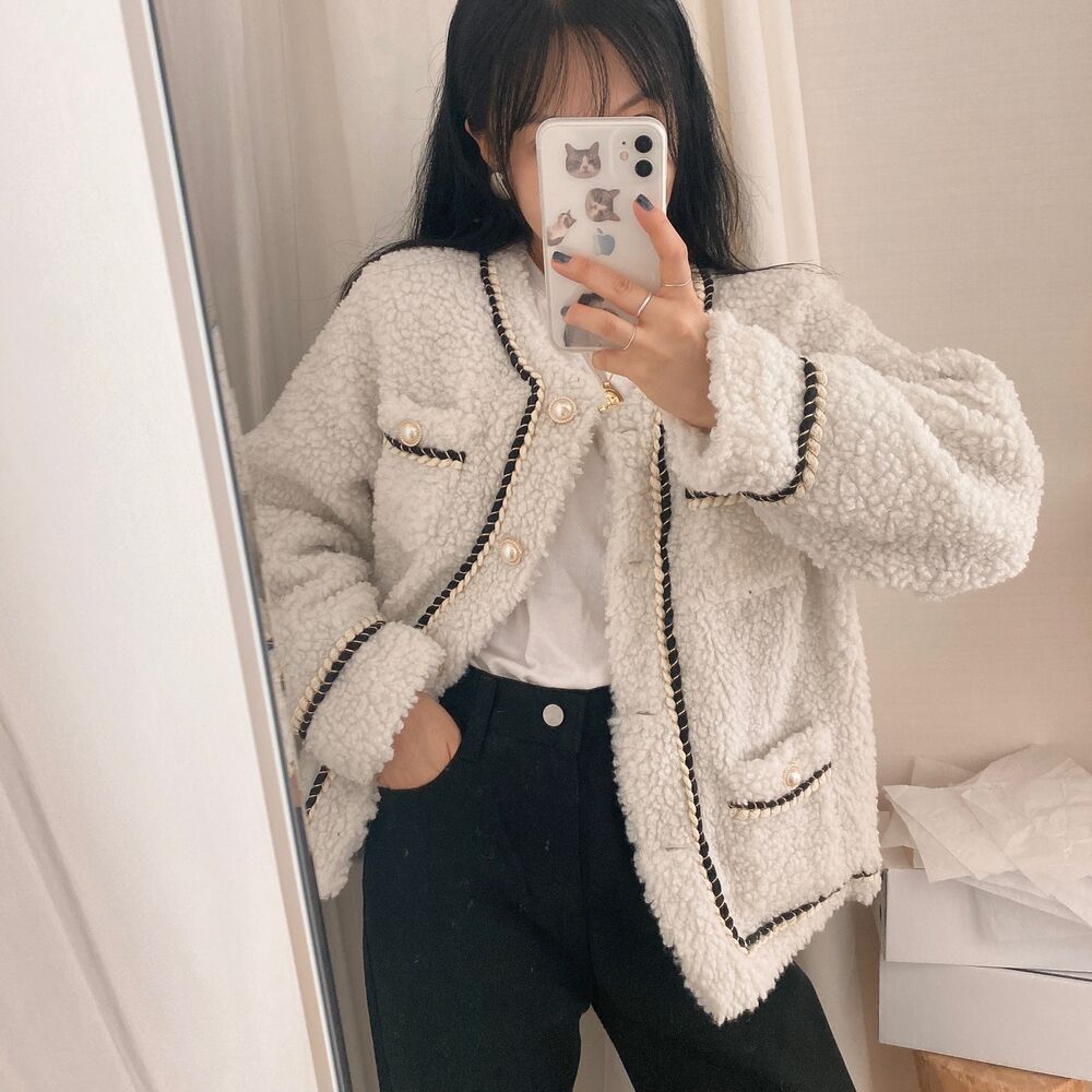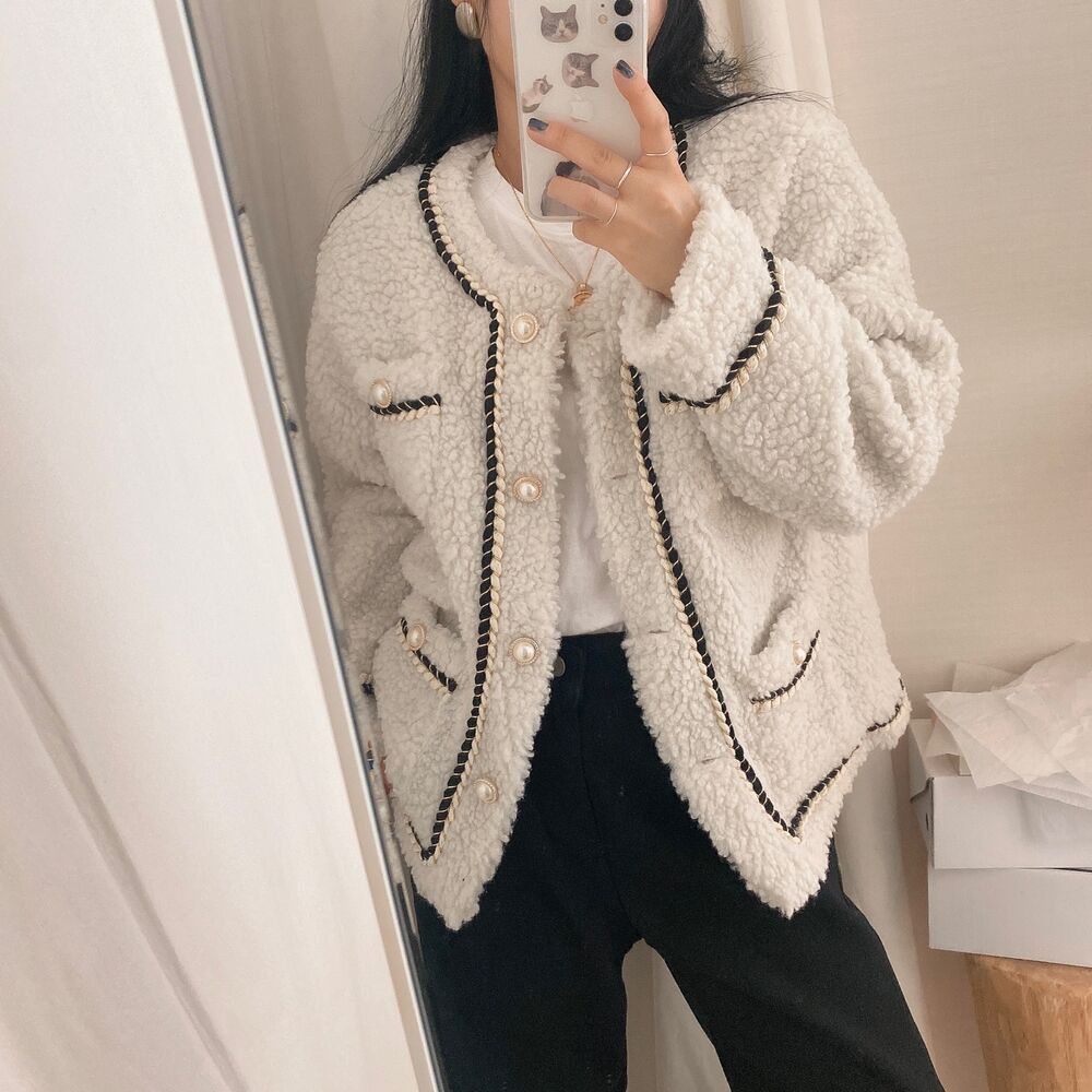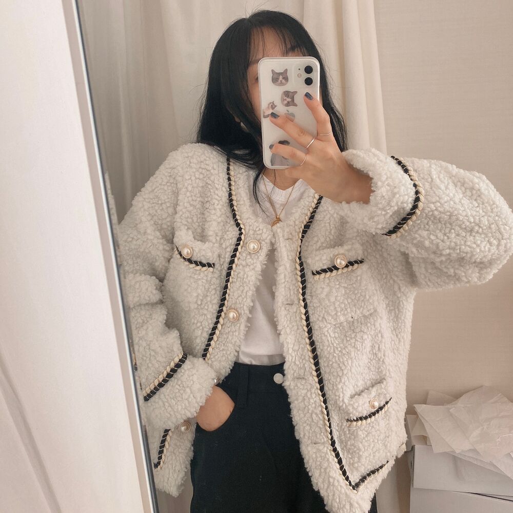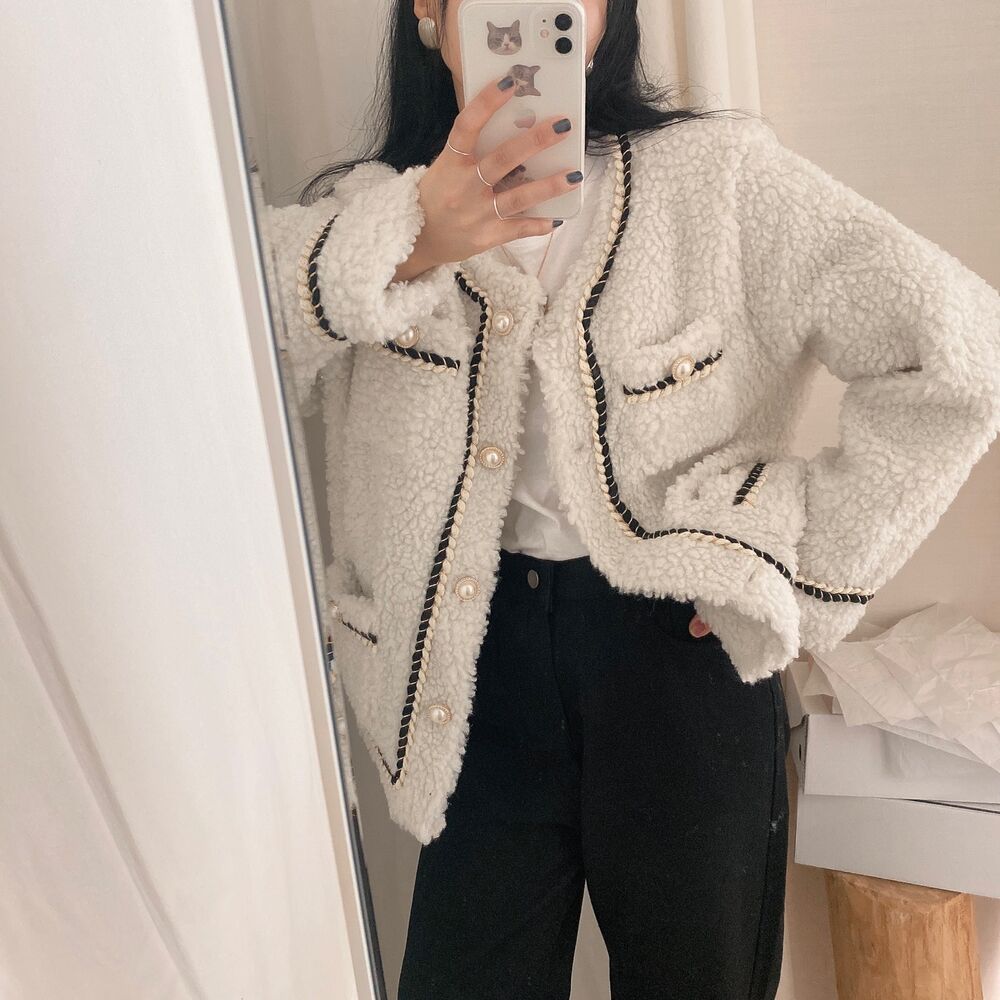 ツイードノーカラーキルティングジャケット