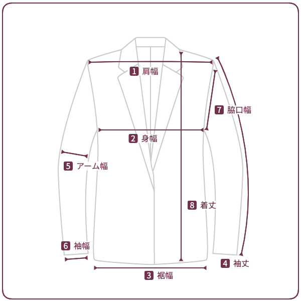 4 袖丈 | 57.5 22.5 | 58.5 23 |