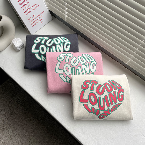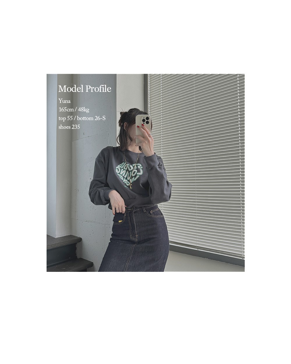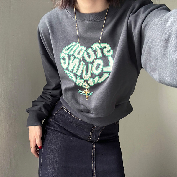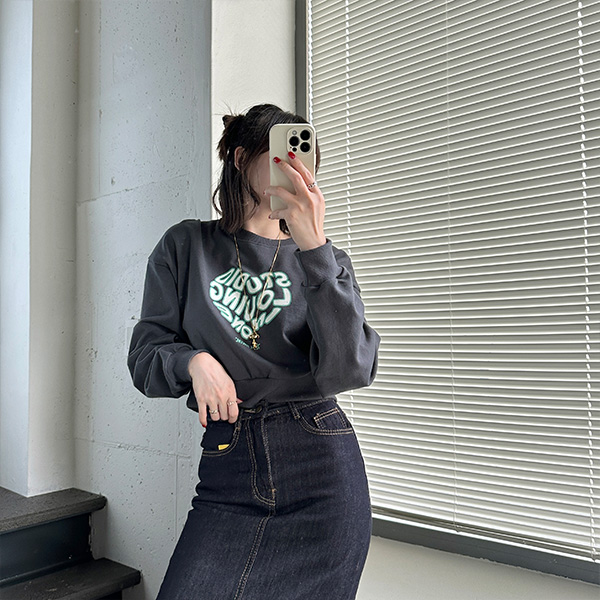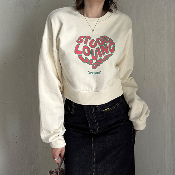 トレンディーハートレタリングセミクロップドスウェットTシャツ