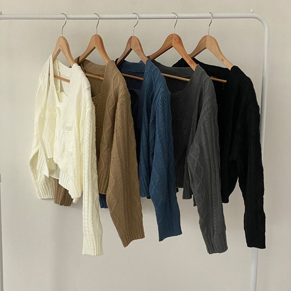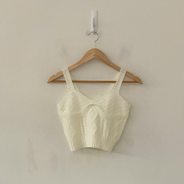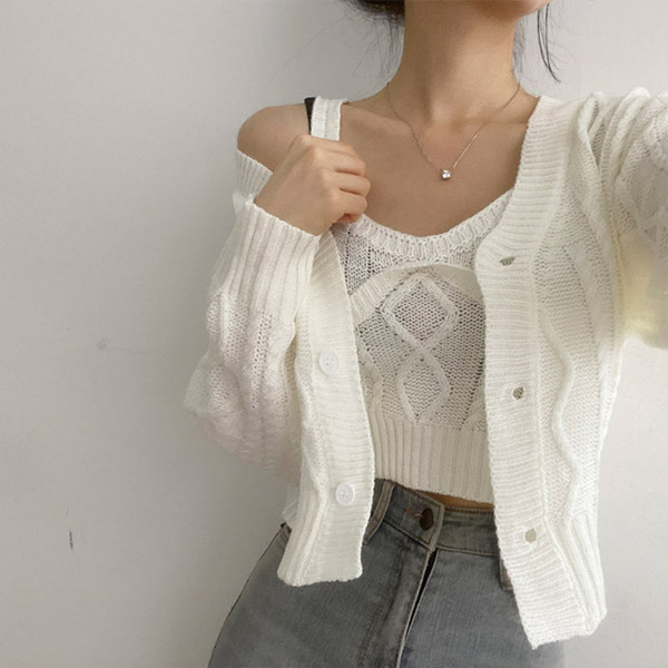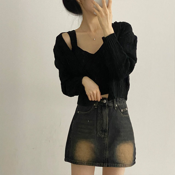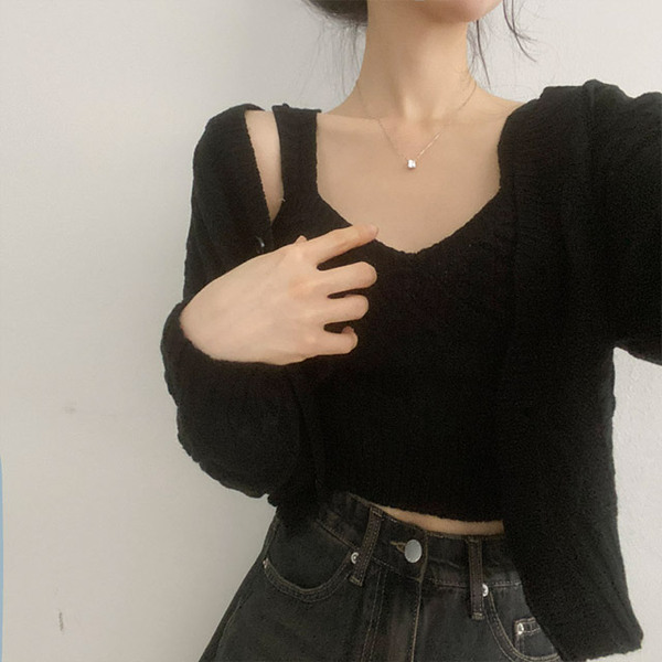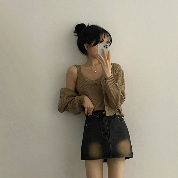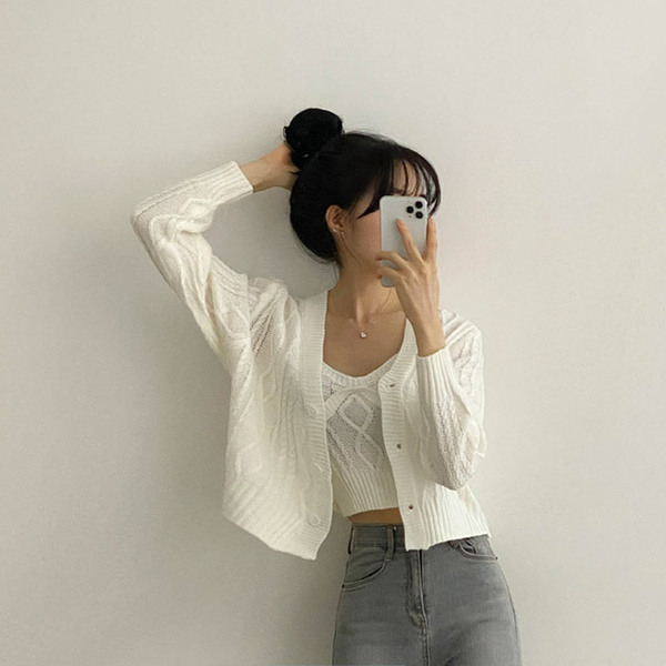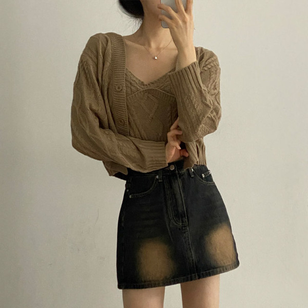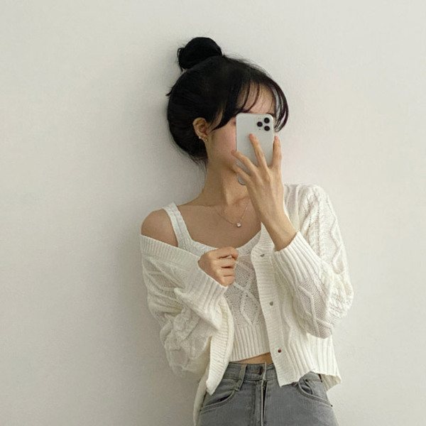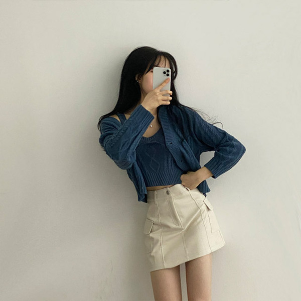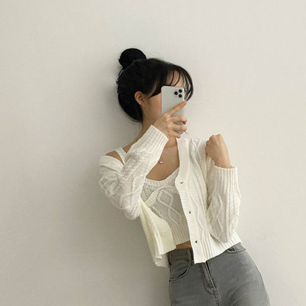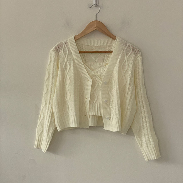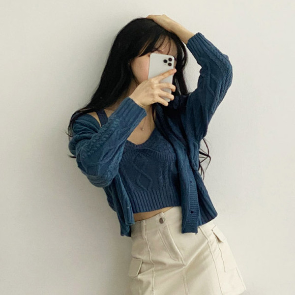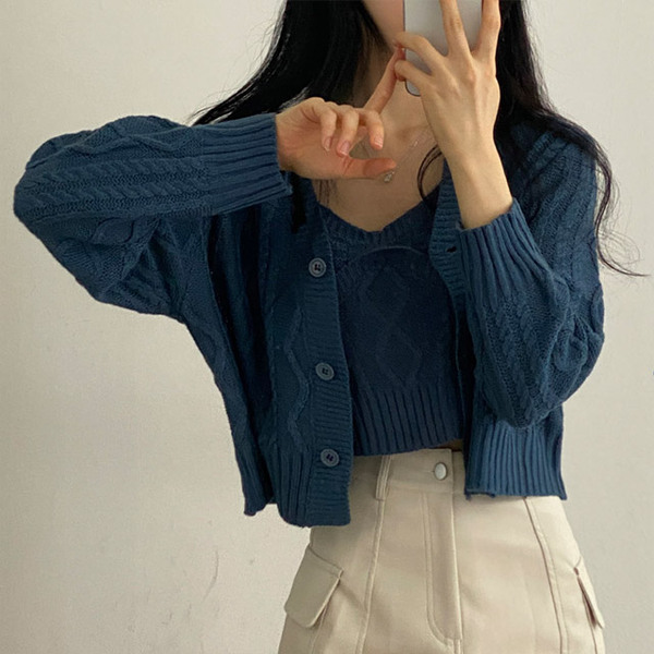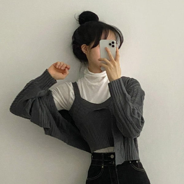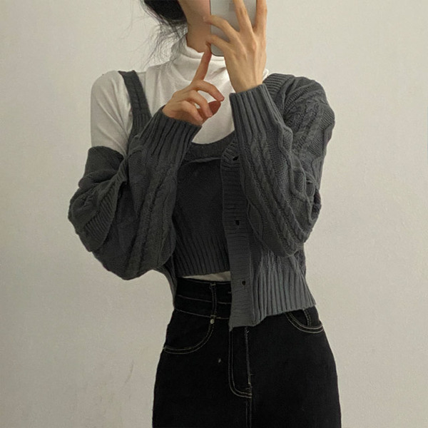 [5color/カーディガン+ノースリーブset]ケーブルツイストクロップドカーディガン+ビスチェノースリーブセット