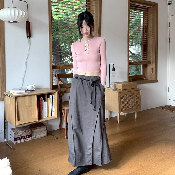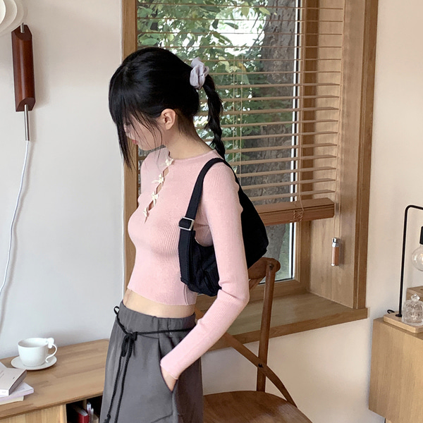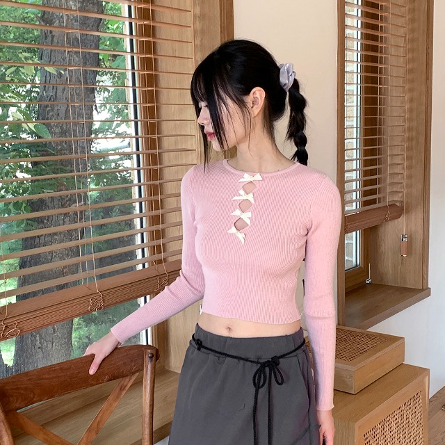 [リバーシブル]2WAY両面バレエコアリボンリブ長袖ニット