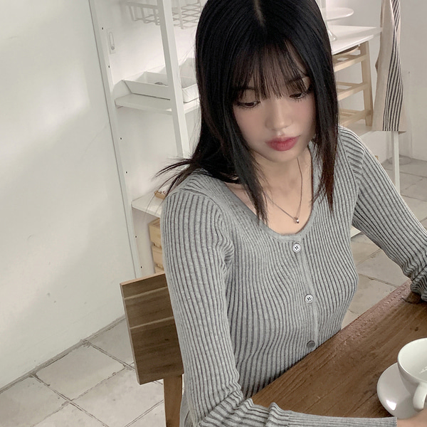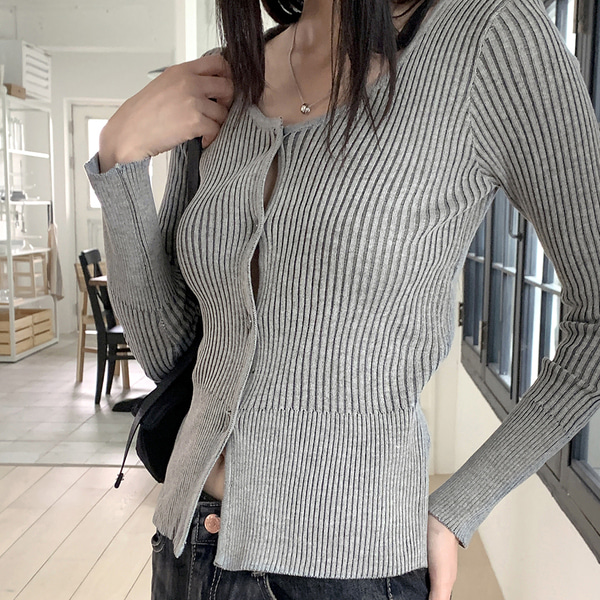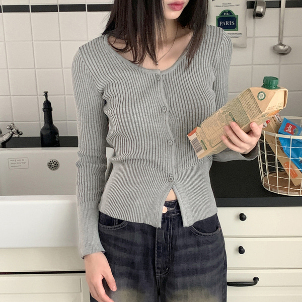 リブバイカラーラウンドクロップド長袖カーディガン