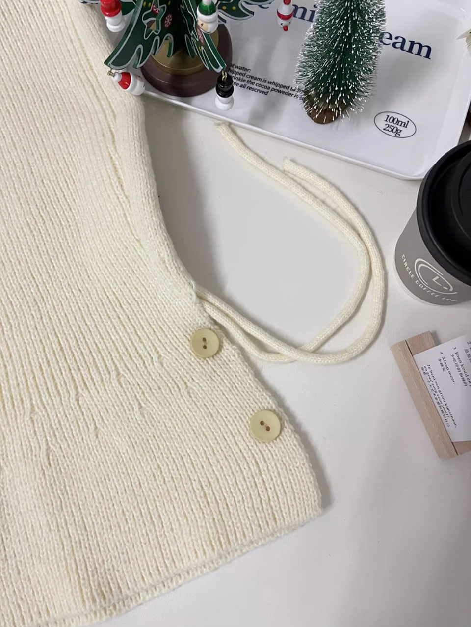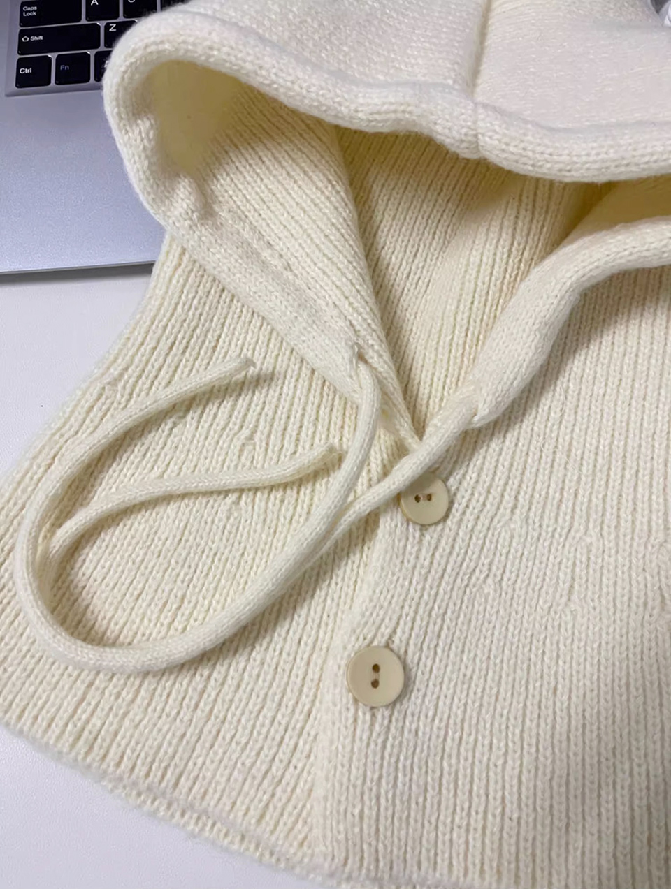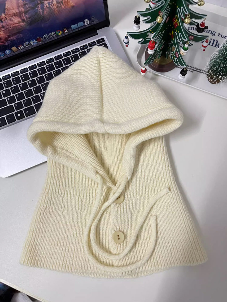 ニットリボンフード付きボタンバラクラバネックウォーマー(6color)
