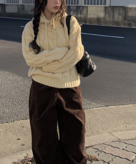 [人気セット] バラクラバ付きケーブル編みニットセット (3color)
