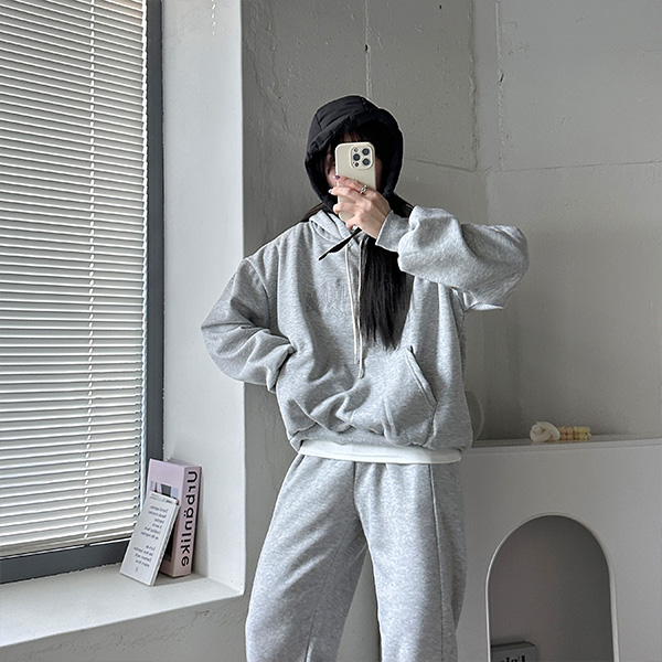 [SET] ステッチ裏起毛パーカー、裏起毛ジョガーパンツ