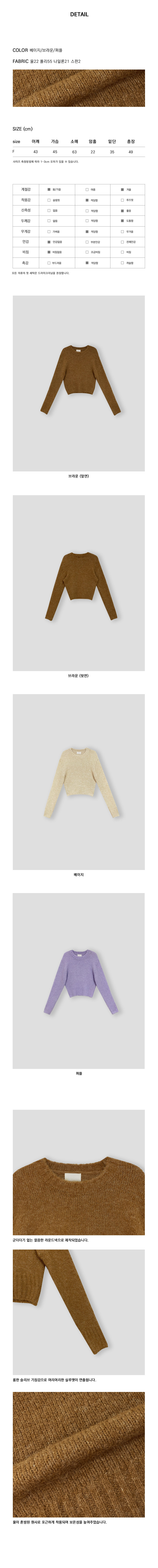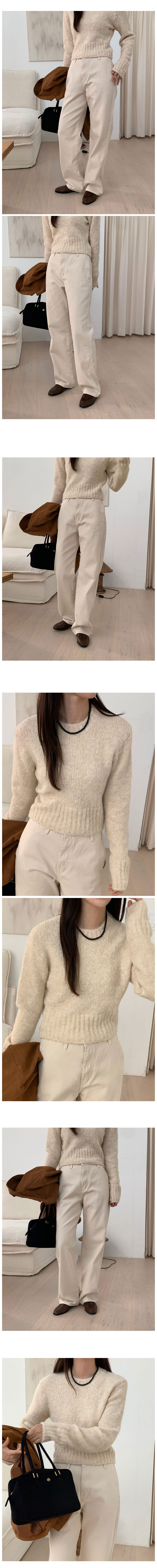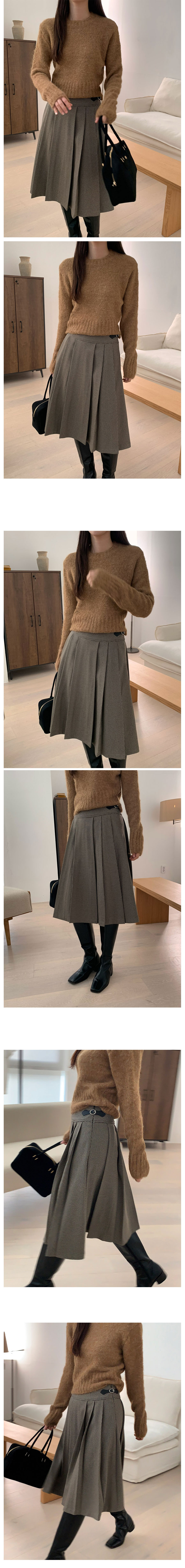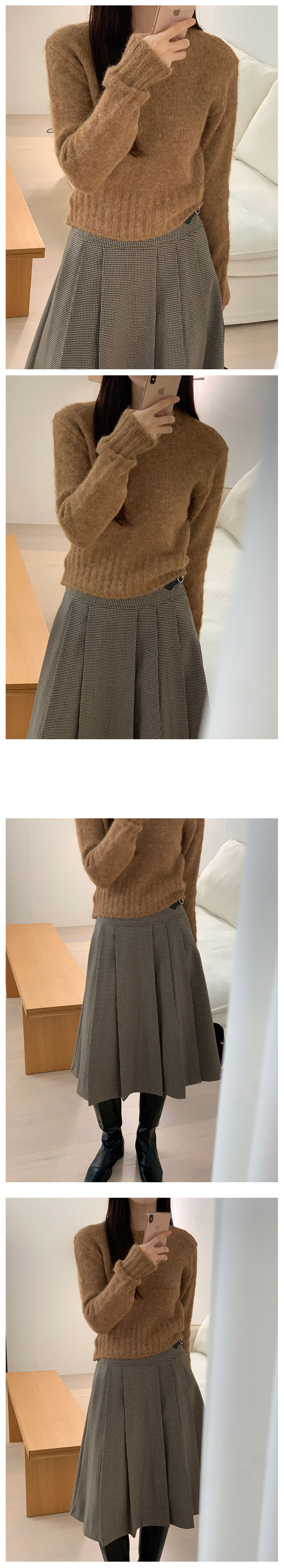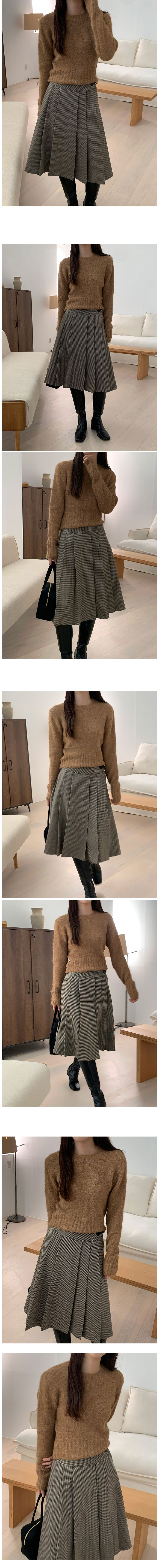 ウールラウンドセミクロップド絞りニット
