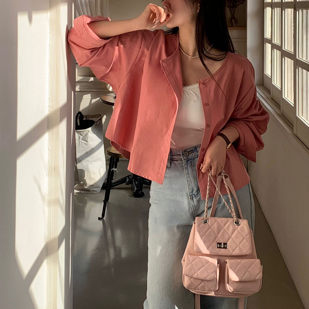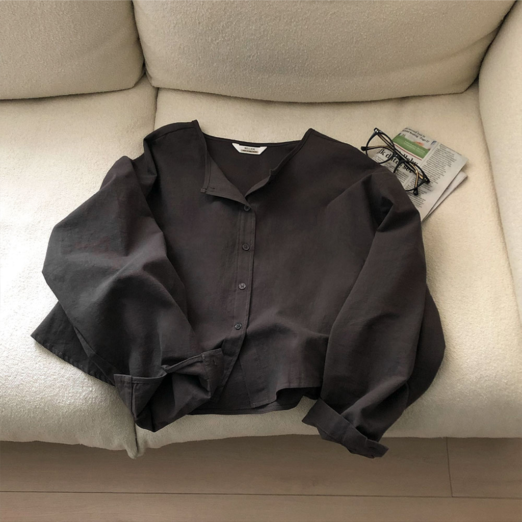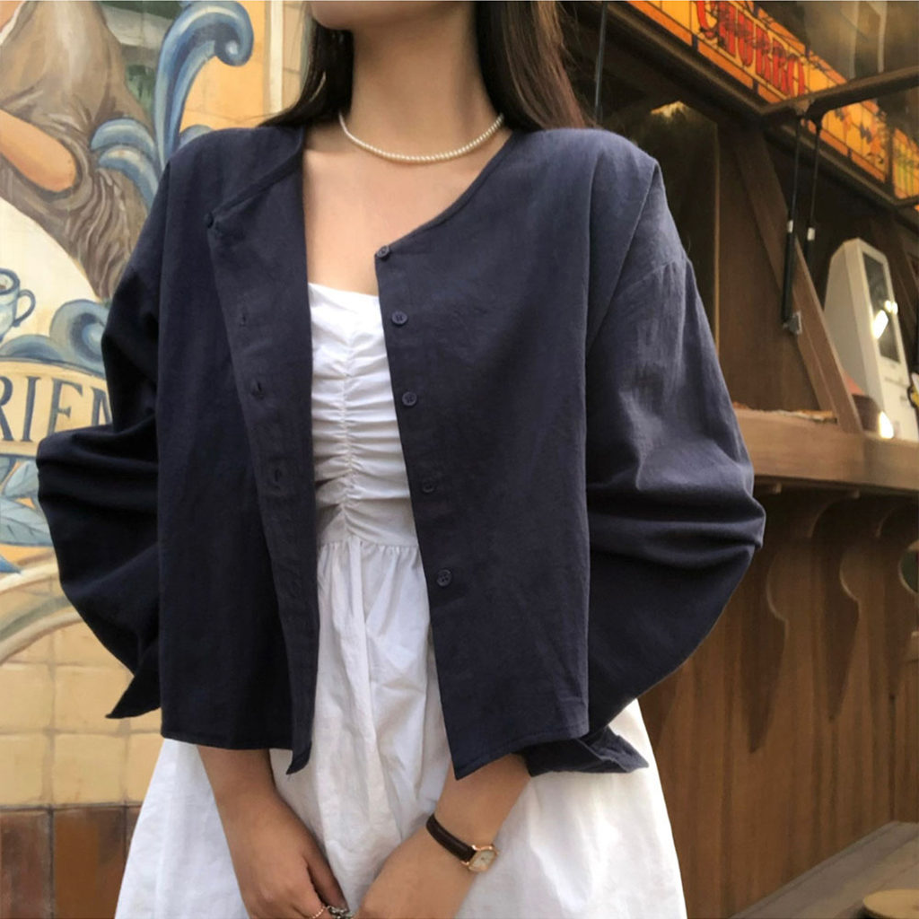 - カラーのないすっきりとしたノーカラーデザインでカーディガンのように薄いアウターで着やすいです!