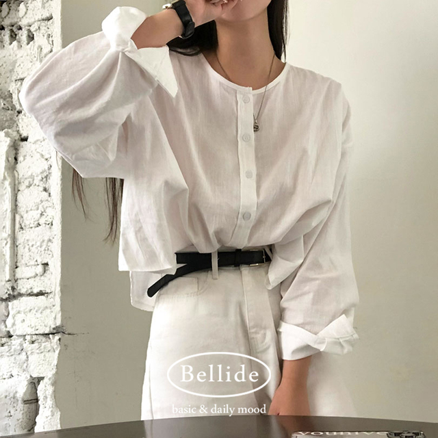 [BELLIDE MADE] ルーズフィットノーカラーコットンシャツ
