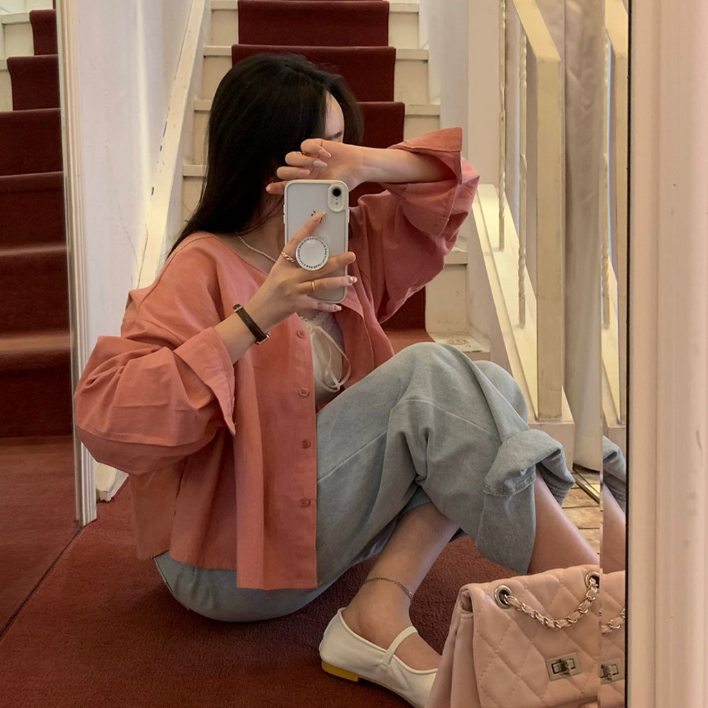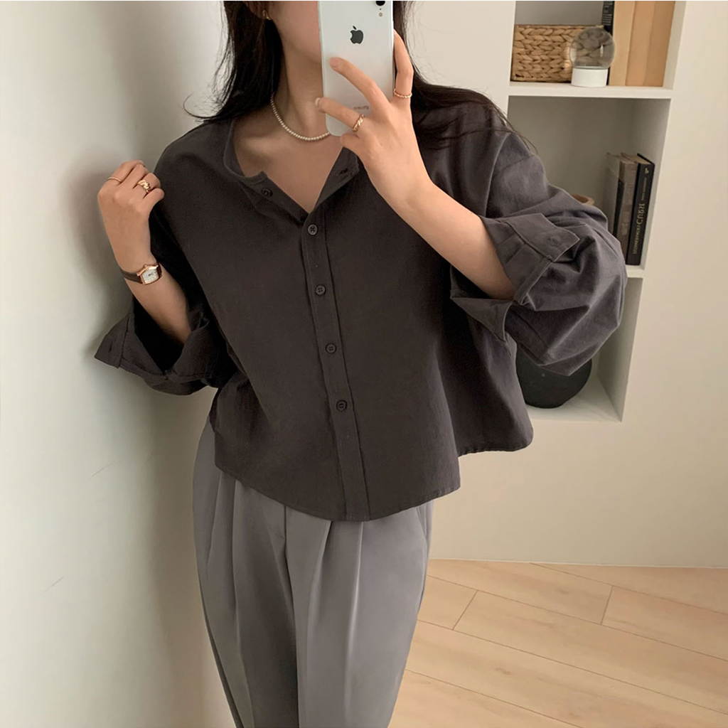(ORIGINAL) 2TYPE ルーズフィットノーカラーコットンシャツ