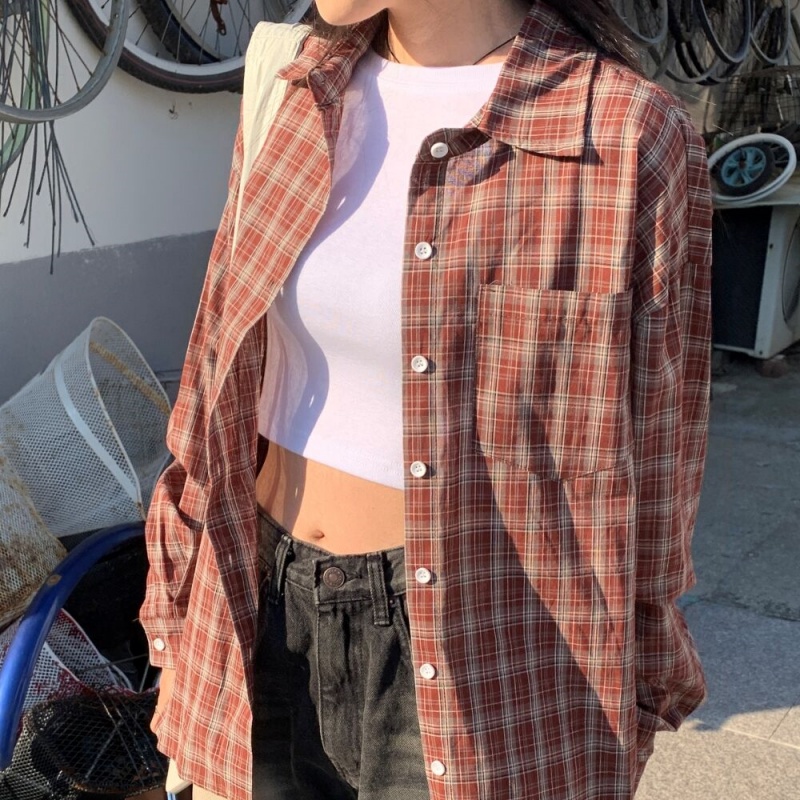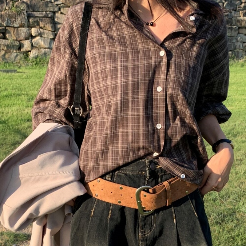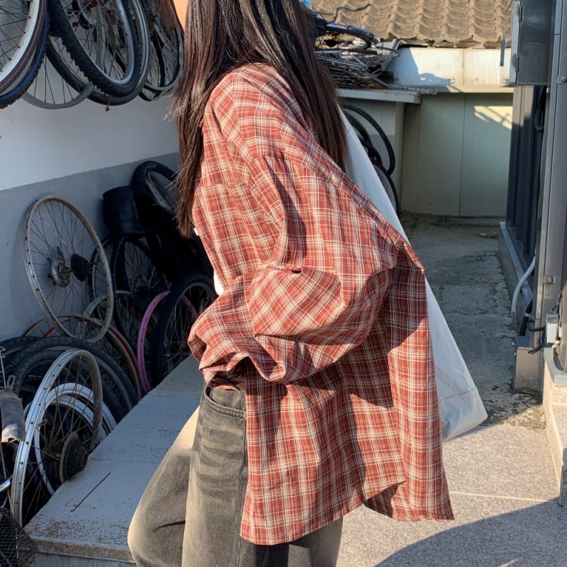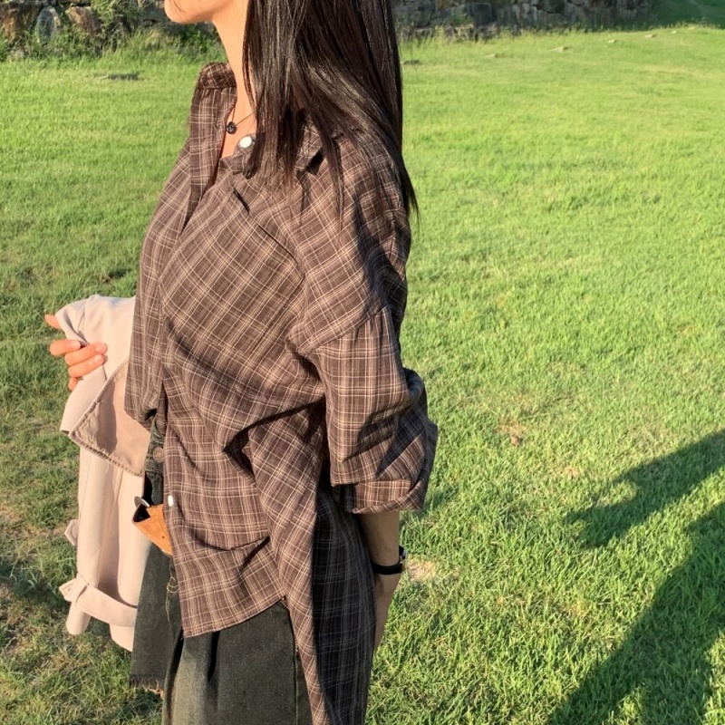 ルーズフィット秋チェックシャツ
