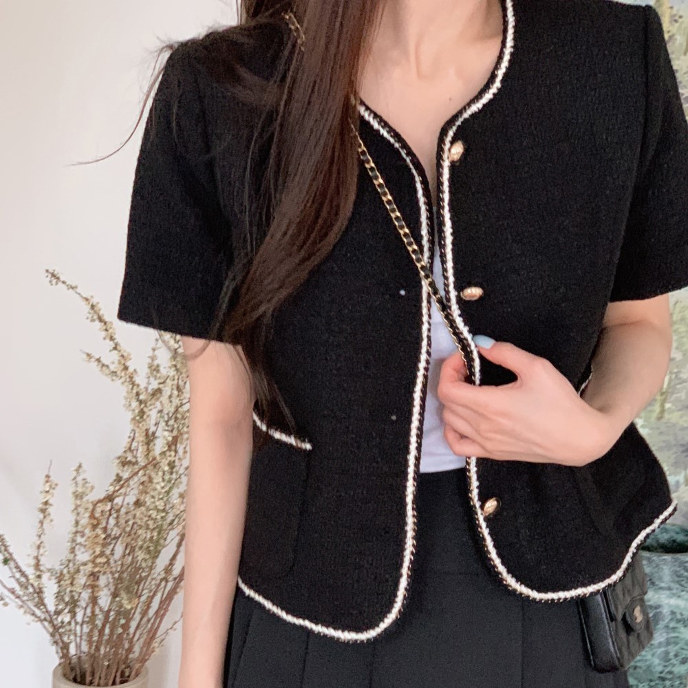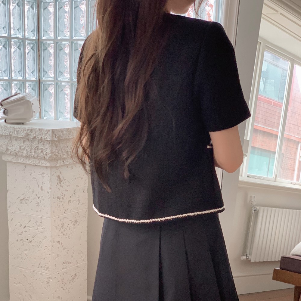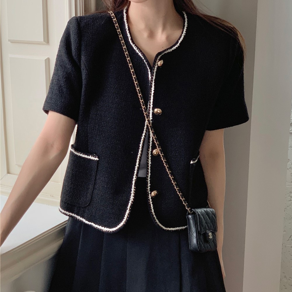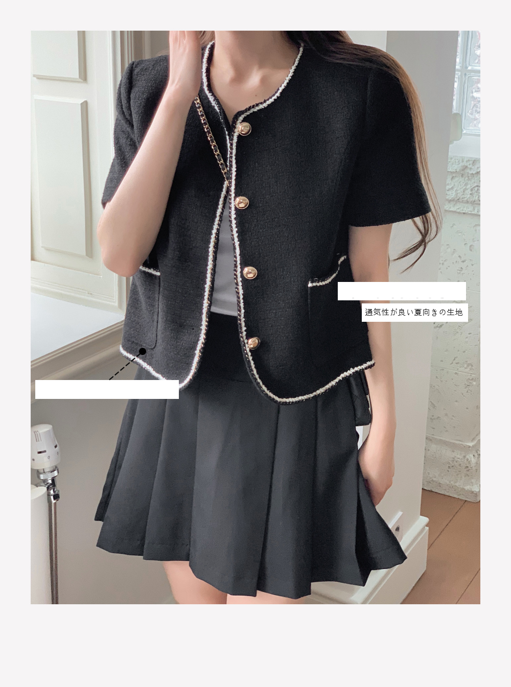 バイカラー半袖クロップドツーイドジャケット(2color)