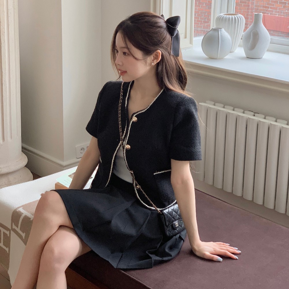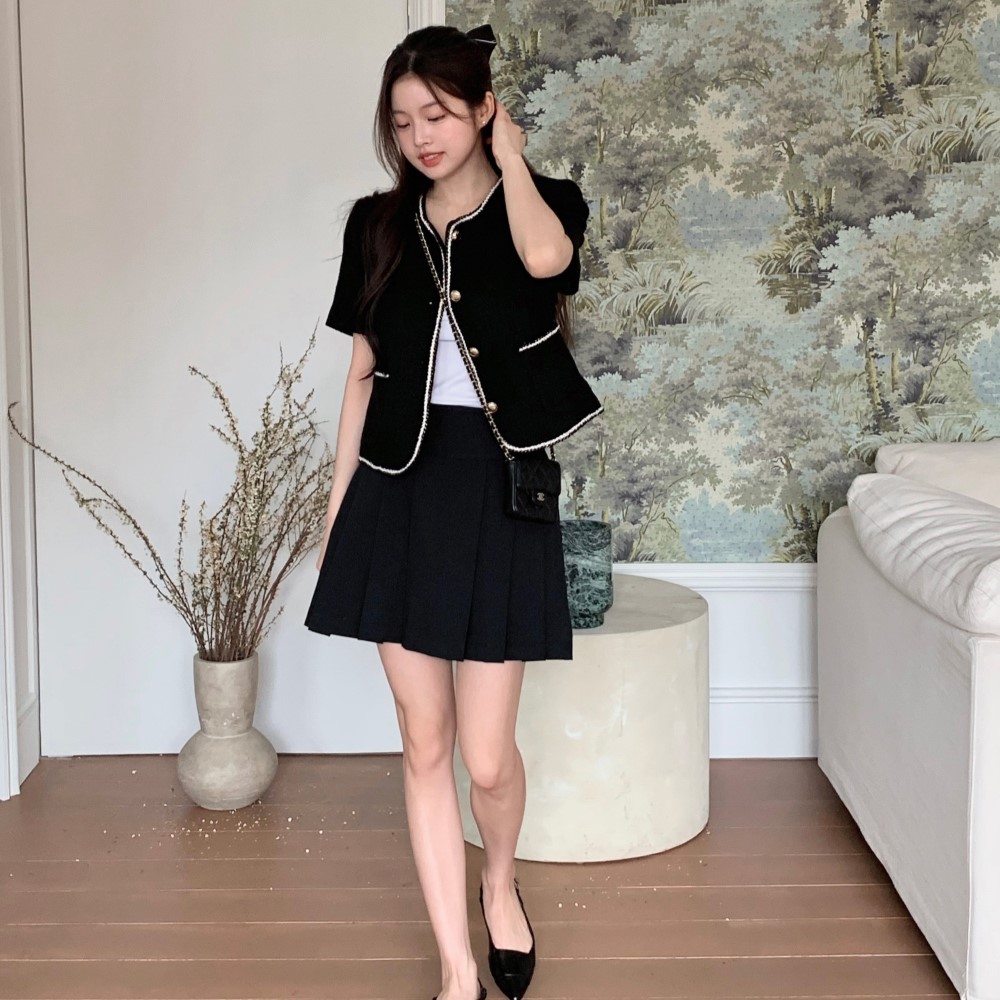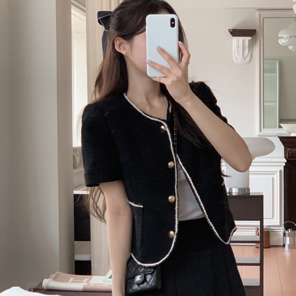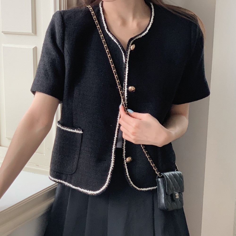 バイカラー半袖クロップドツーイドジャケット(2color)