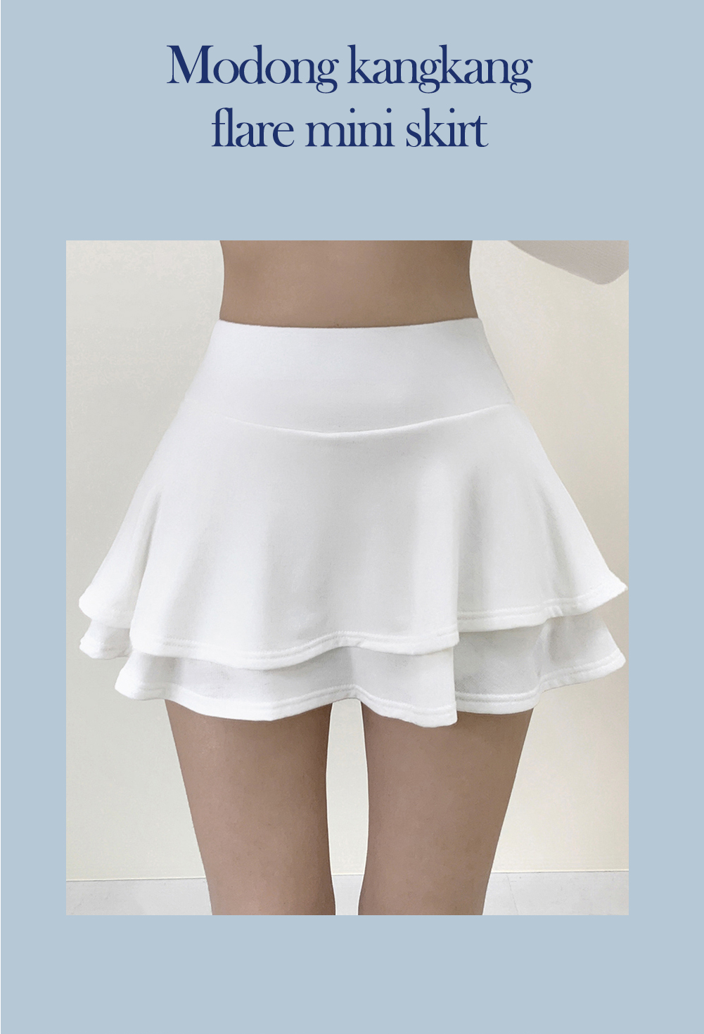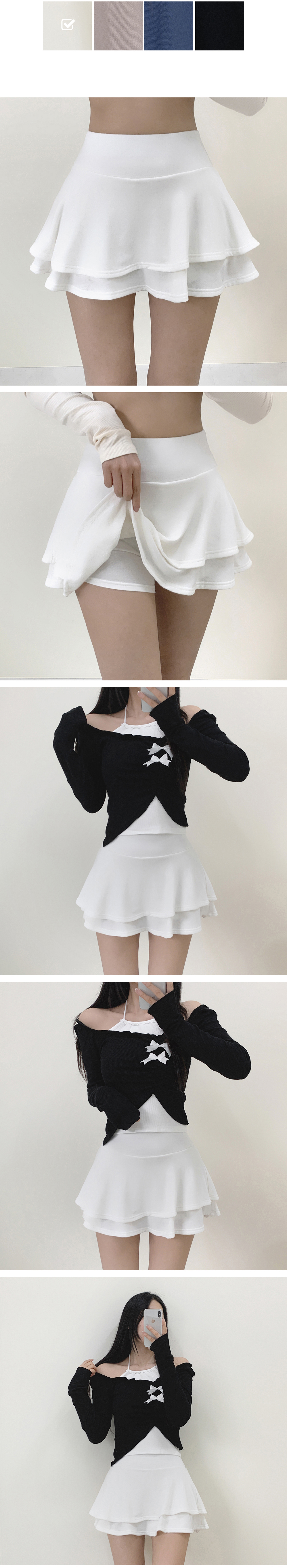 [パンツ型裏地付き] ティアードフレアミニスカート