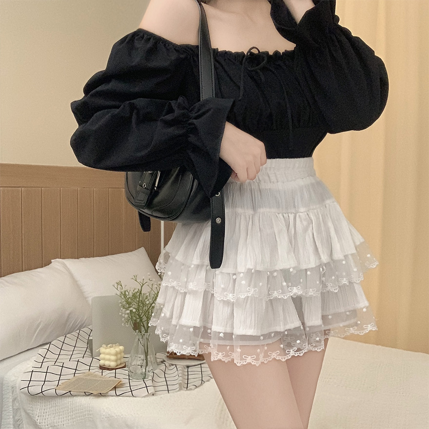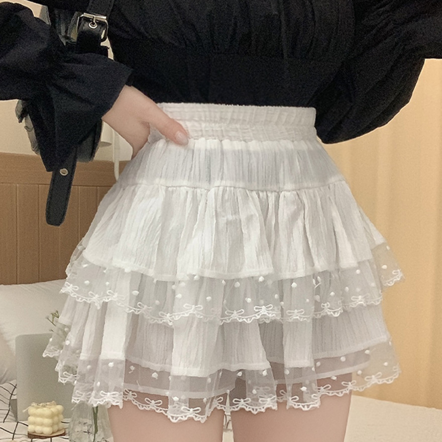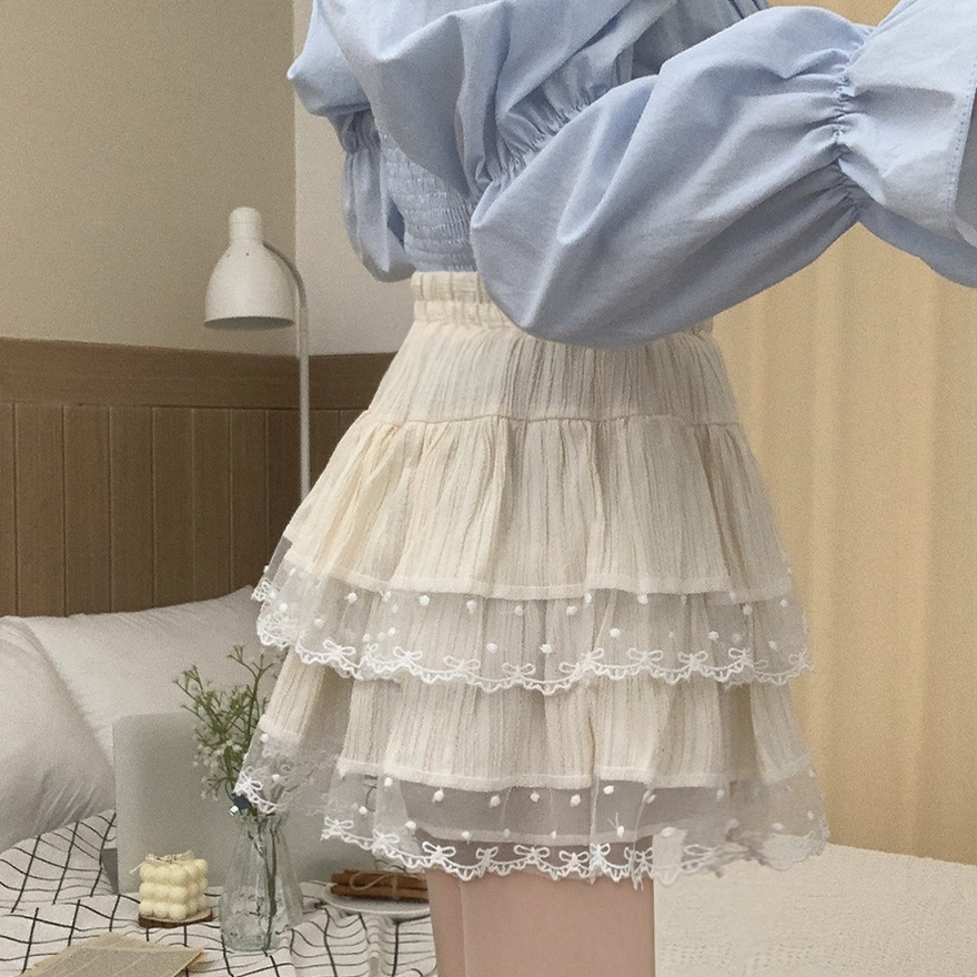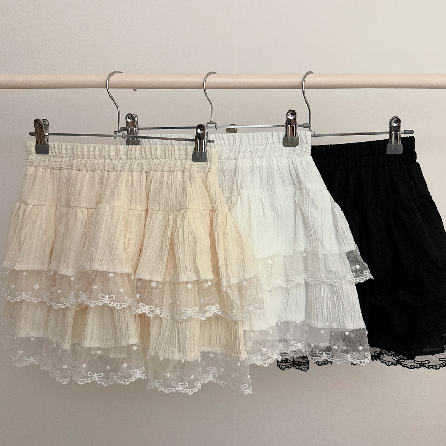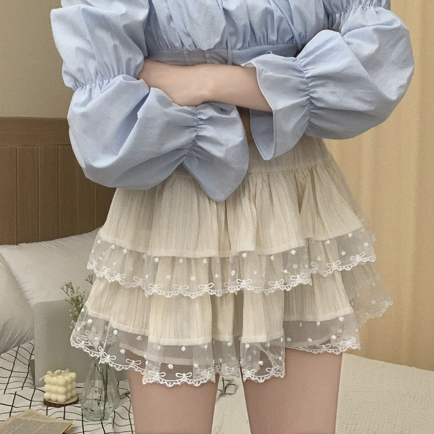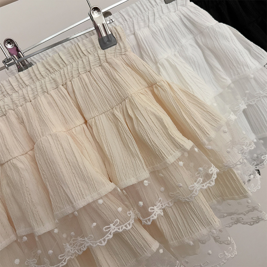 リボンレースドットティアードフレアミニスカート
