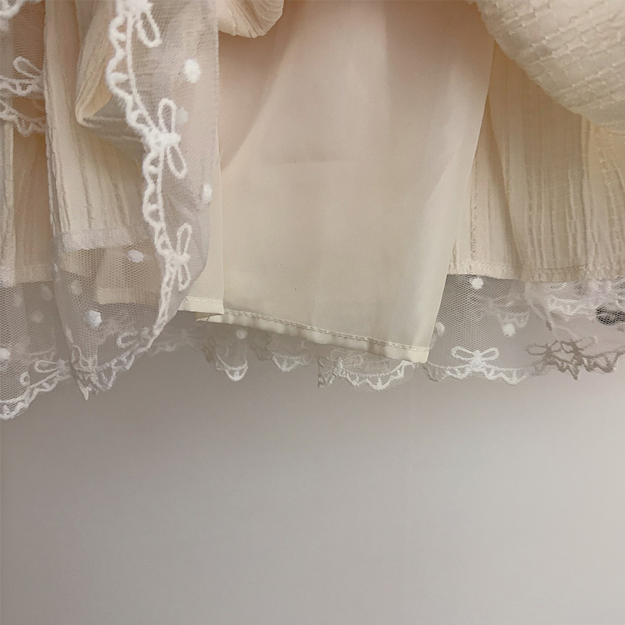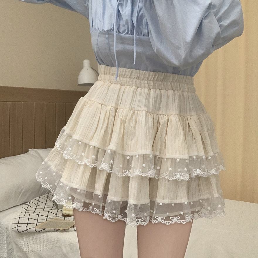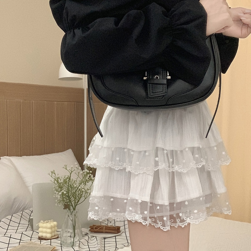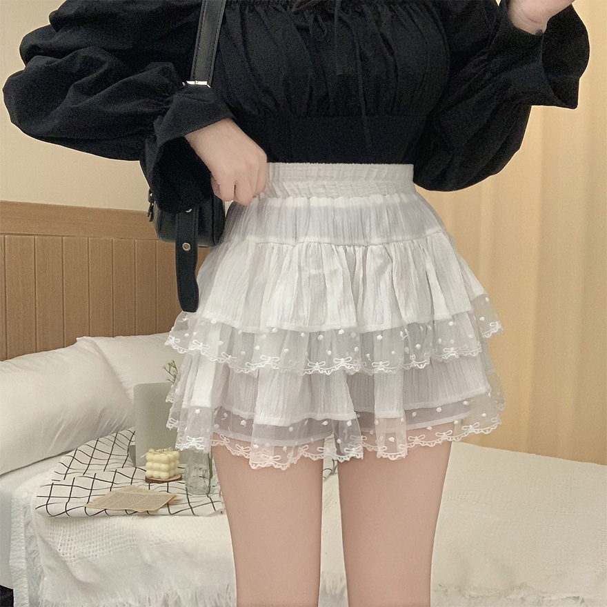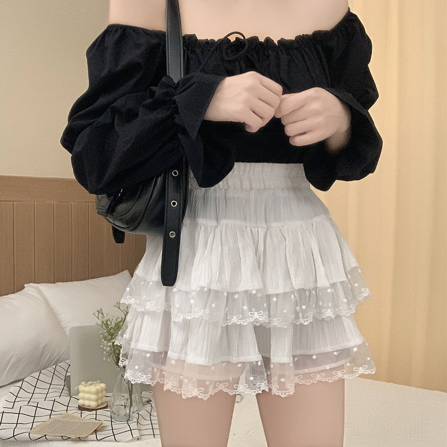 リボンレースドットティアードフレアミニスカート