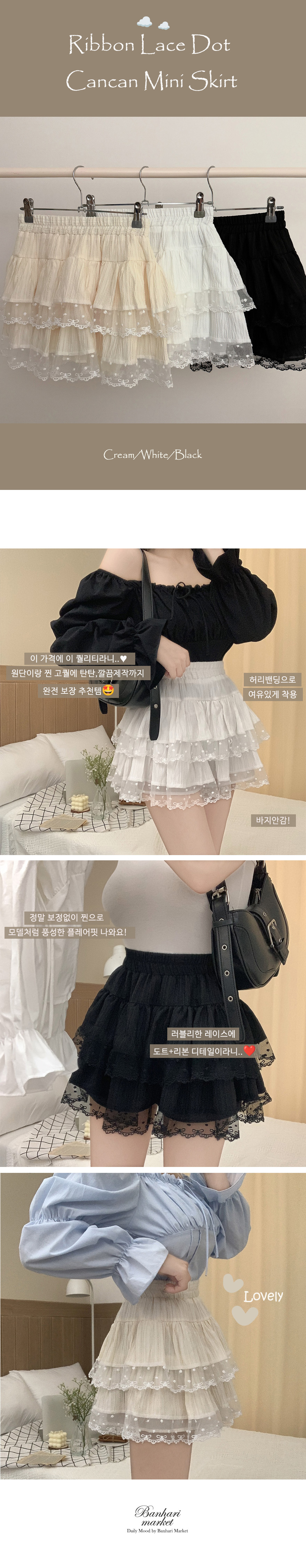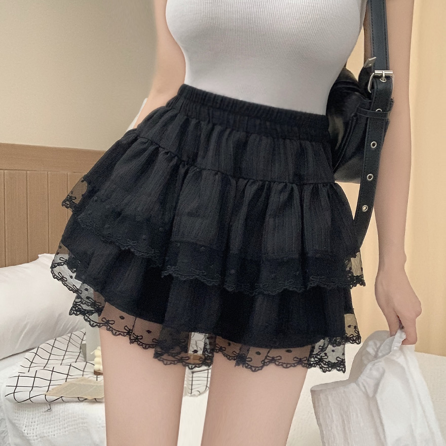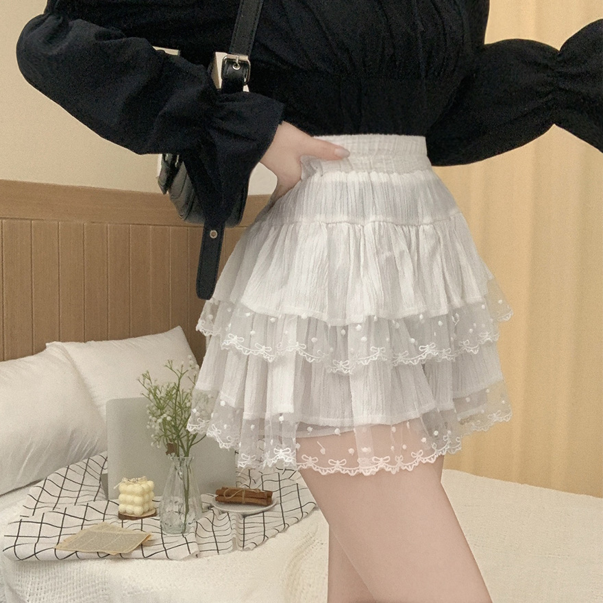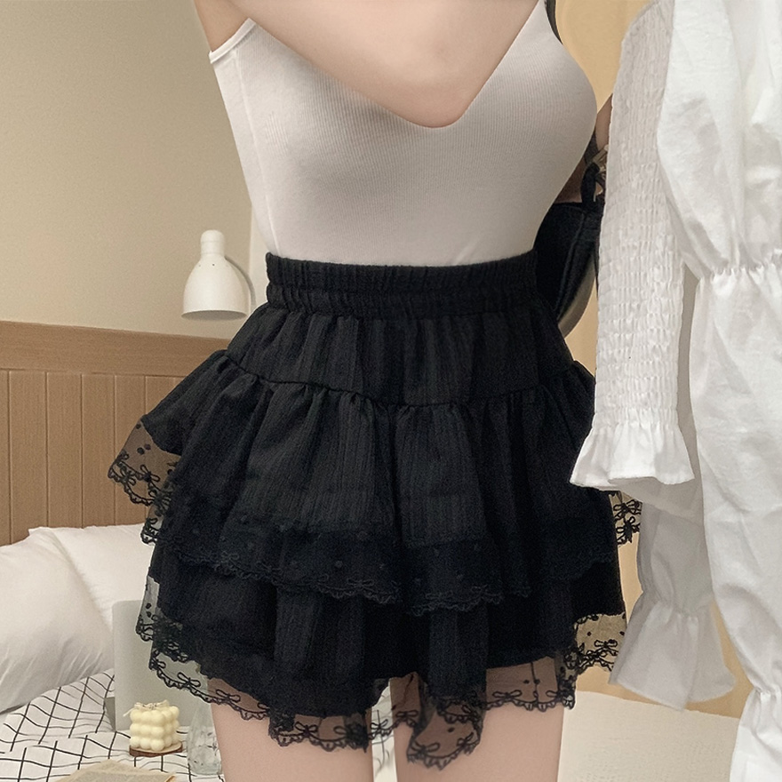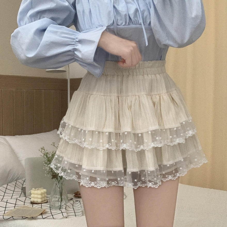 リボンレースドットティアードフレアミニスカート
