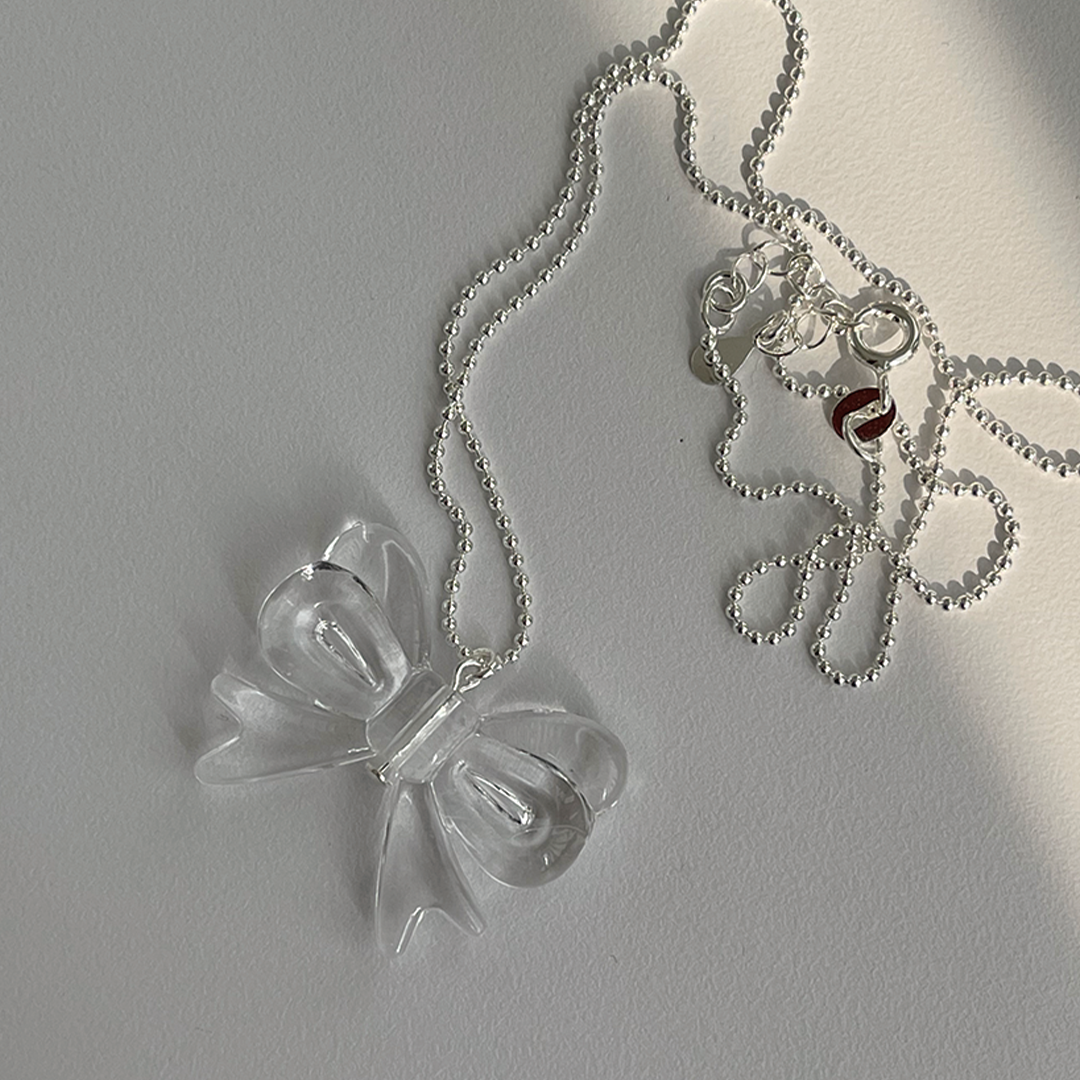프릴이 들어간 리본 펜던트 볼 목걸이입니다.