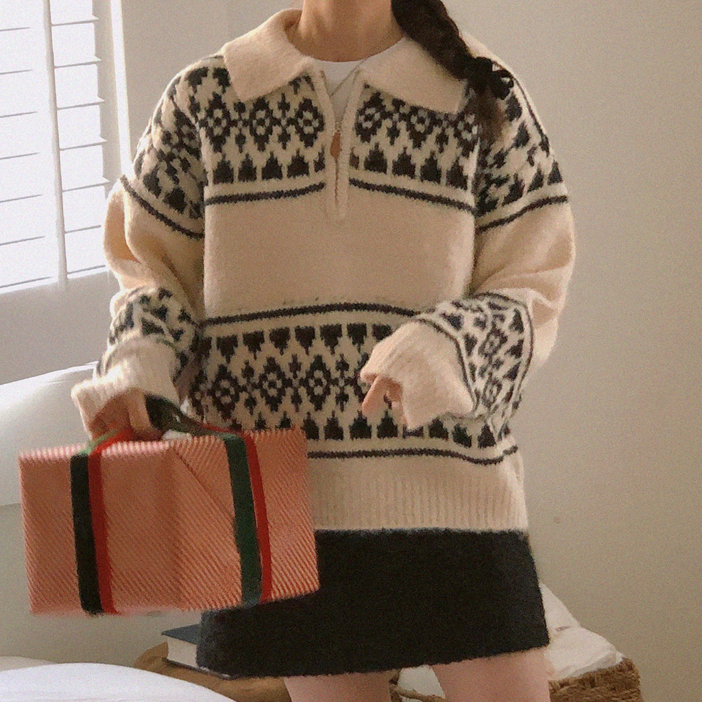 ハーフジップアップニット