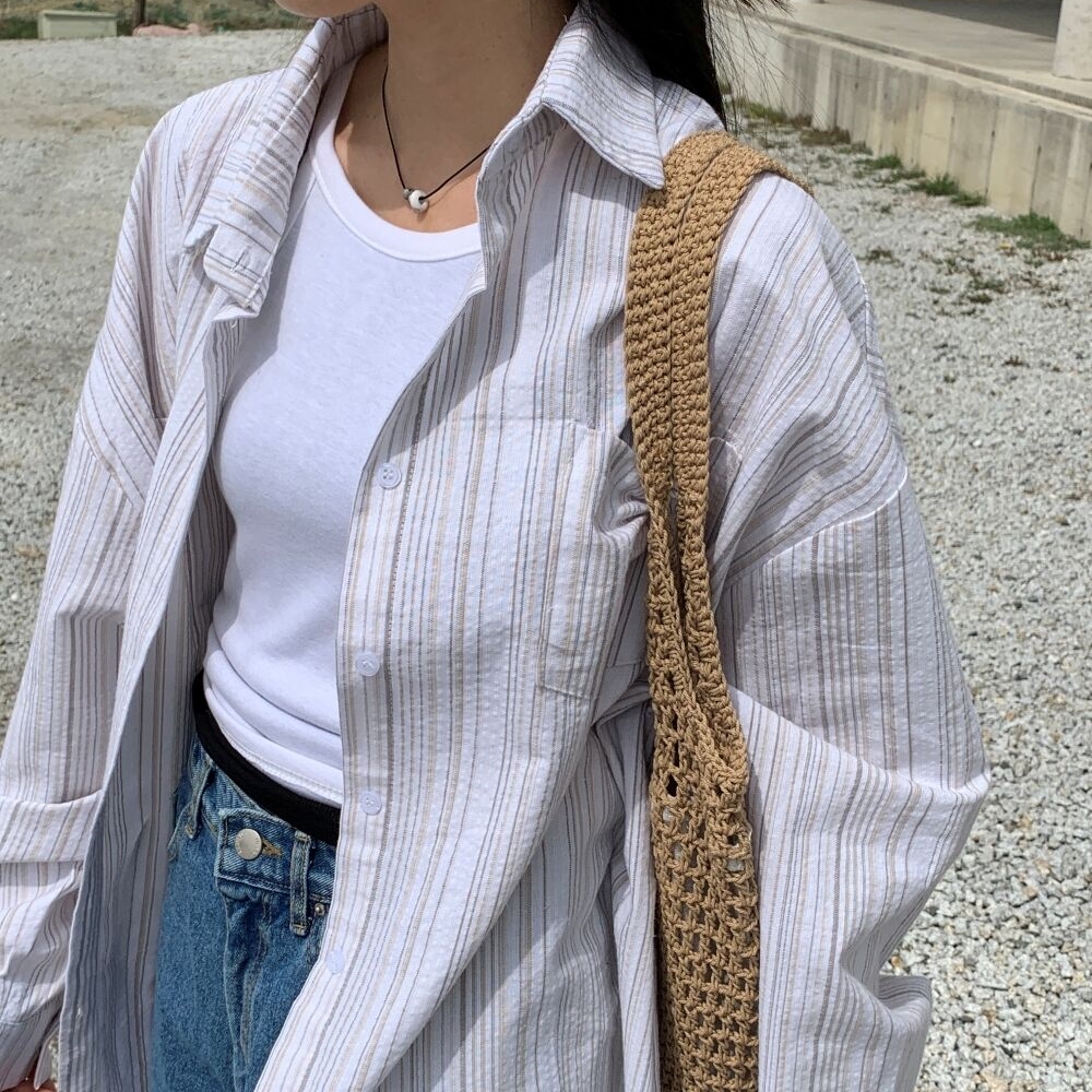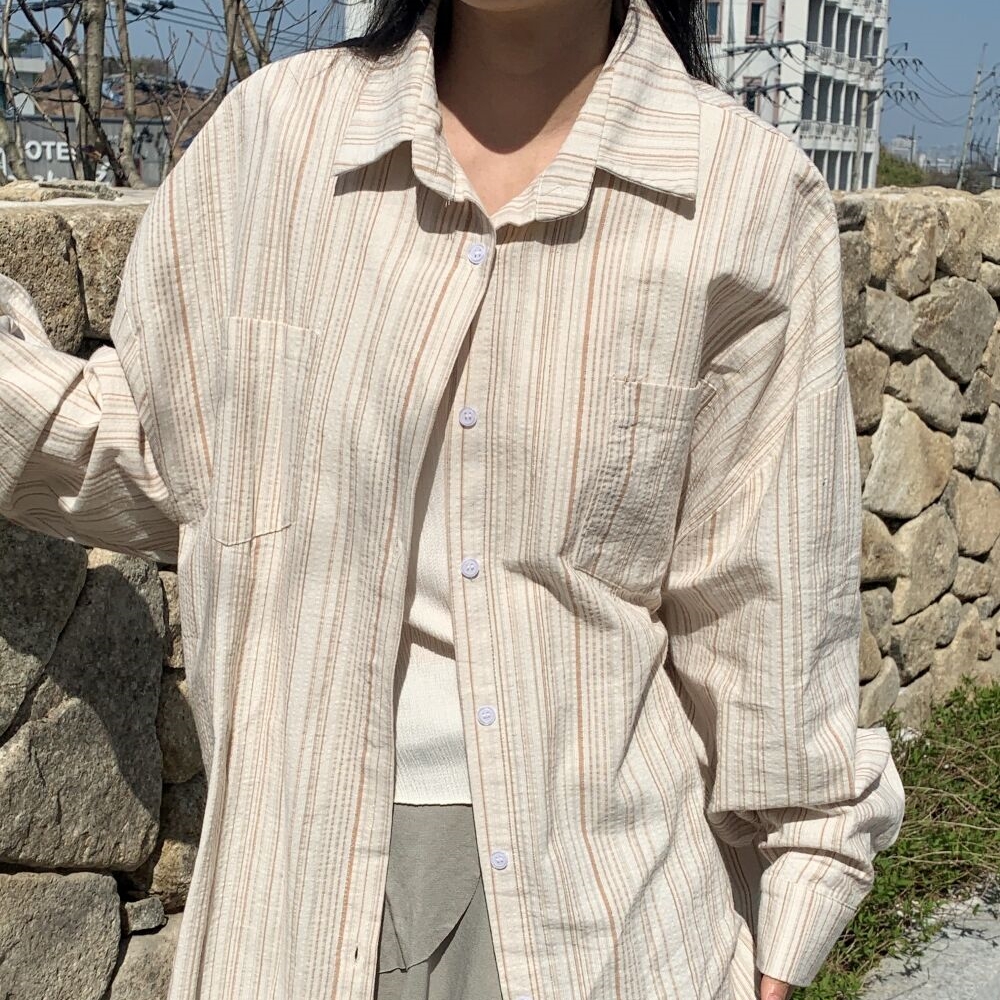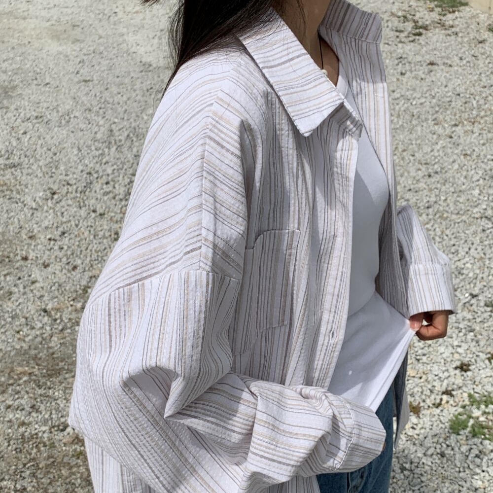 オーバーサイズストライプボーダー長袖シャツ2color
