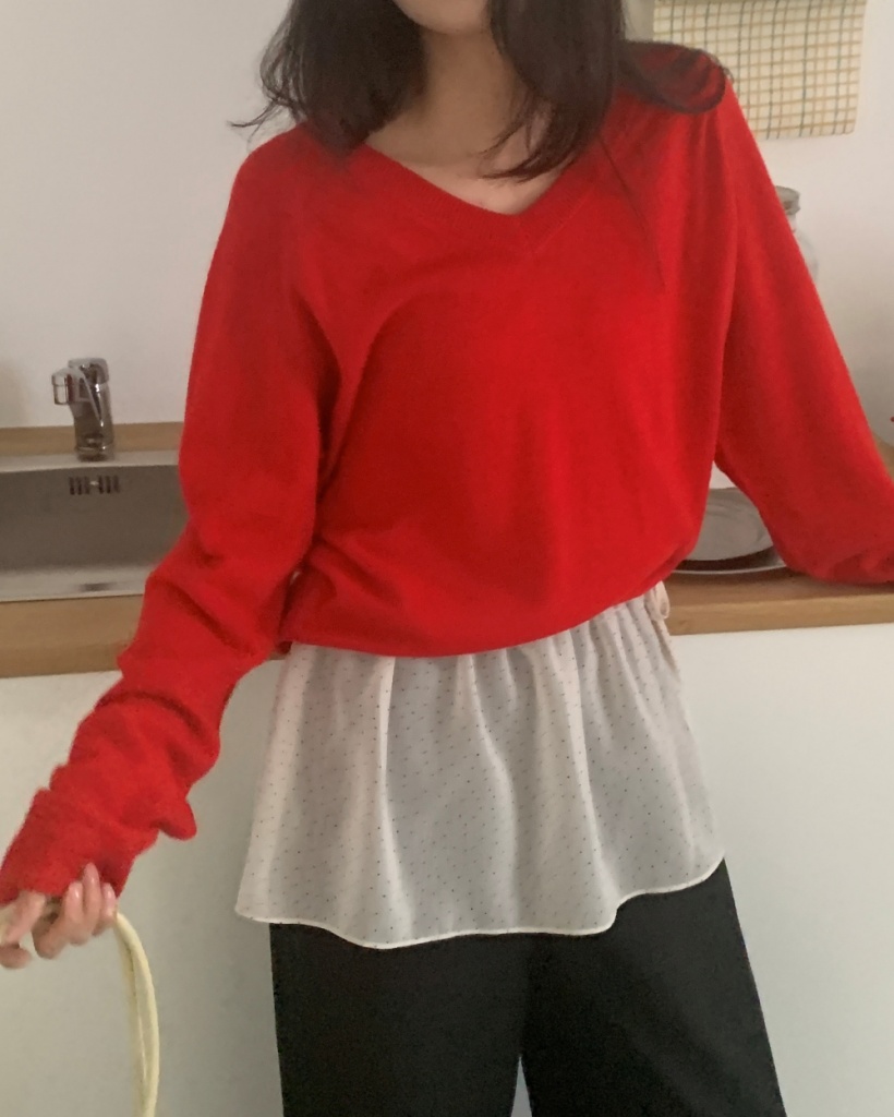 [original]Vネックウールルーズフィットニット