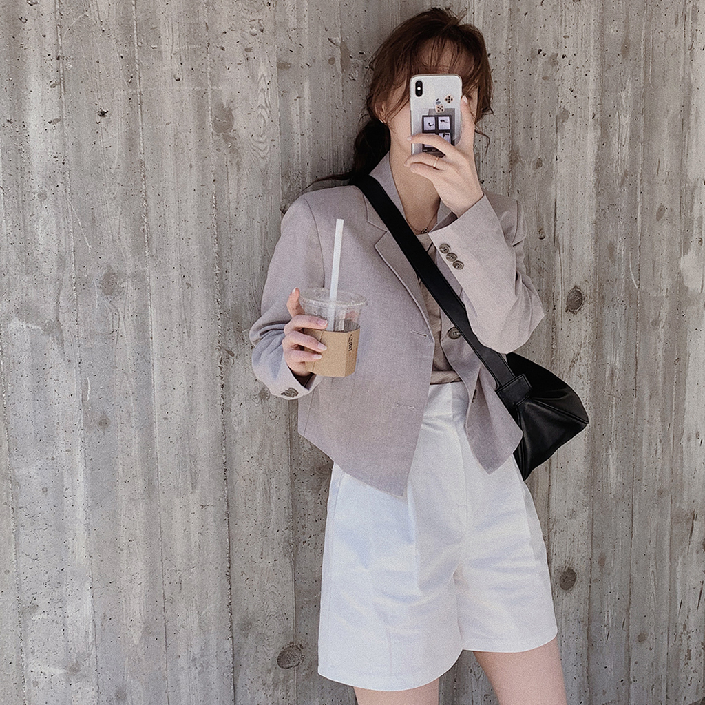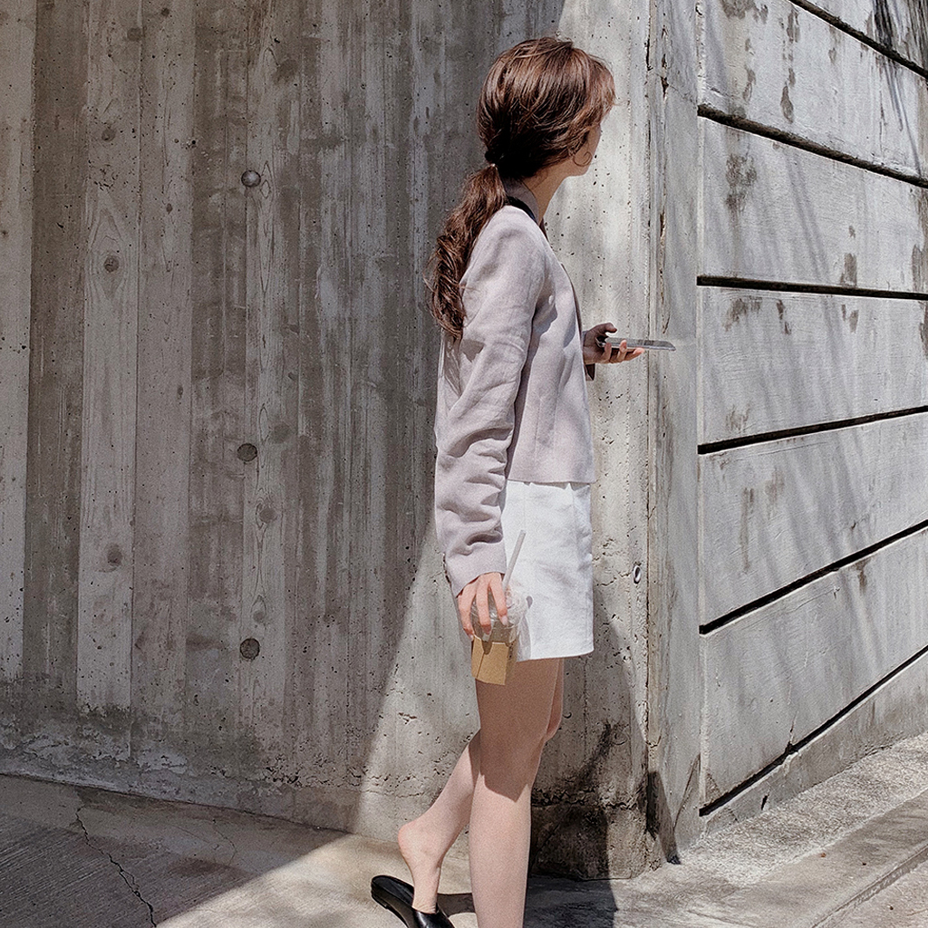 -#SLOWMADE. 보틀 세미크롭 린넨자켓 /그레이지