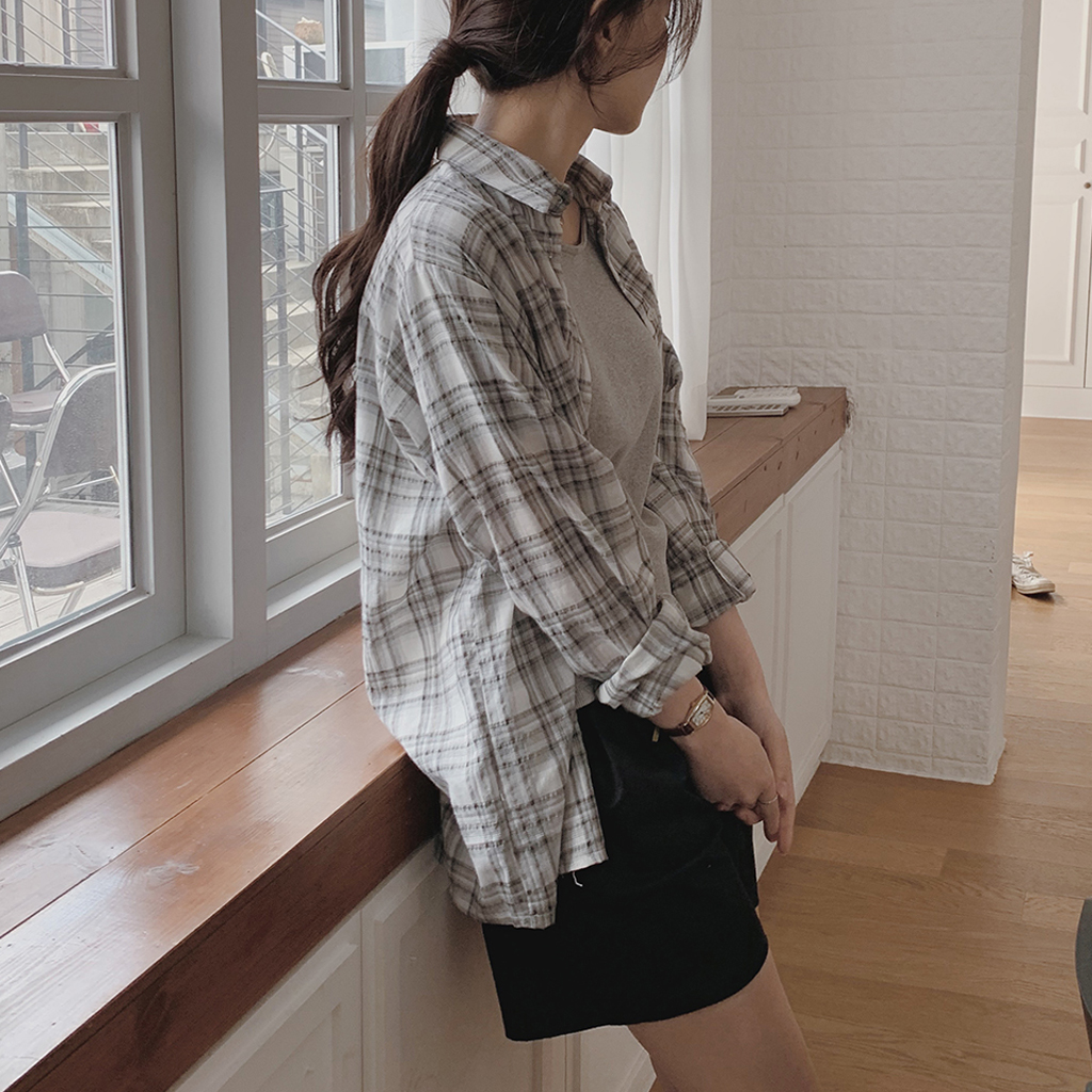 실루엣을 따라 내추럴하게 떨어지는 루즈핏셔츠를 매치한