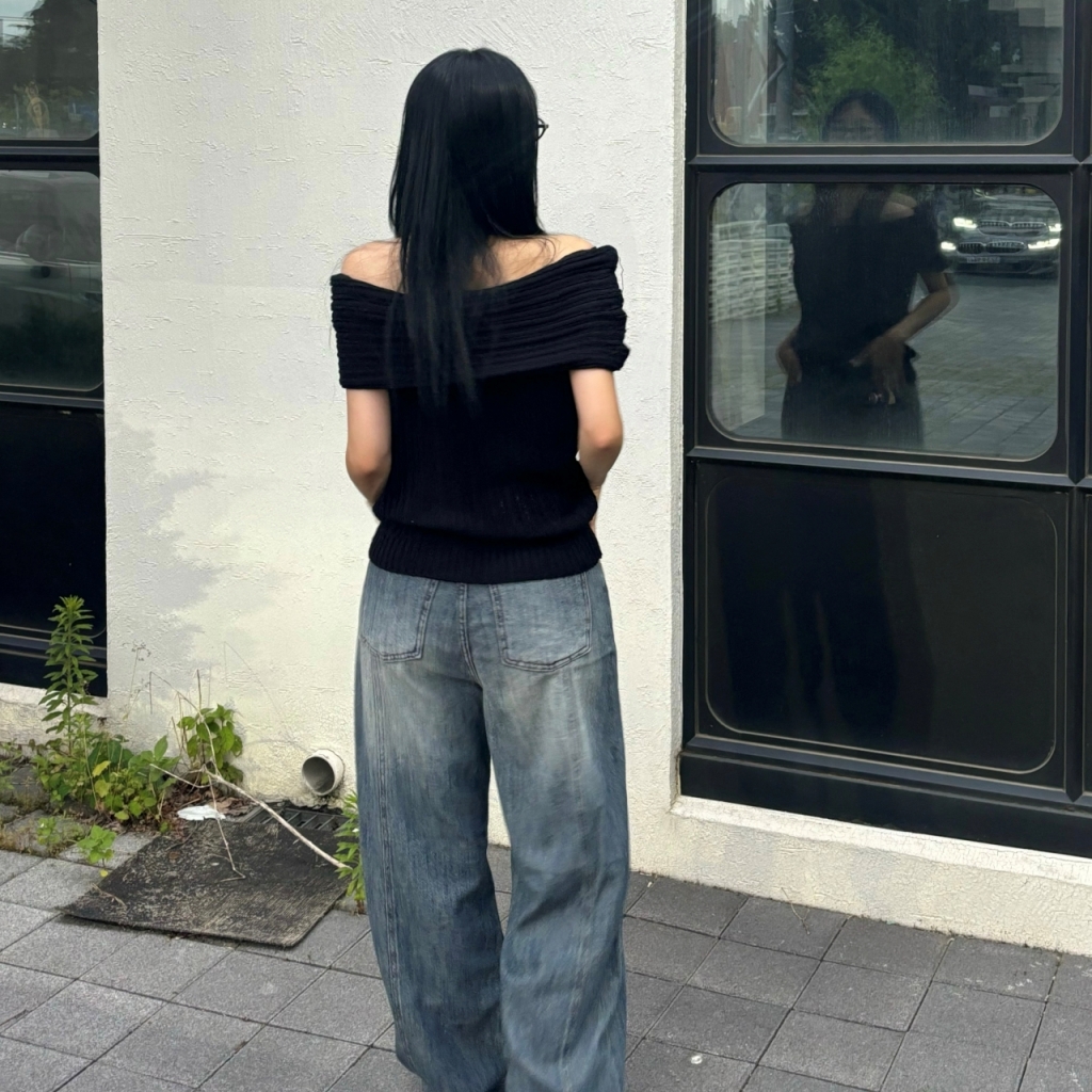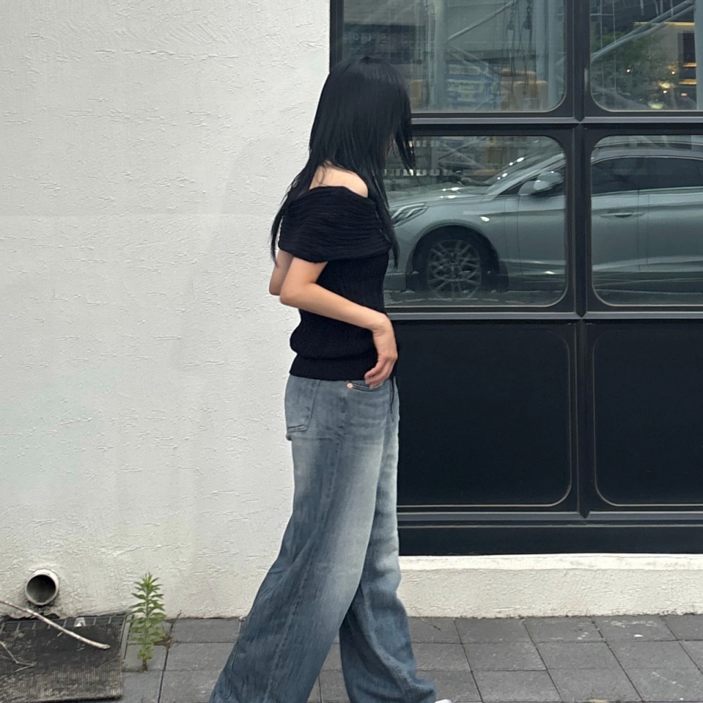ラインセミワイドサマーデニムパンツ-2color