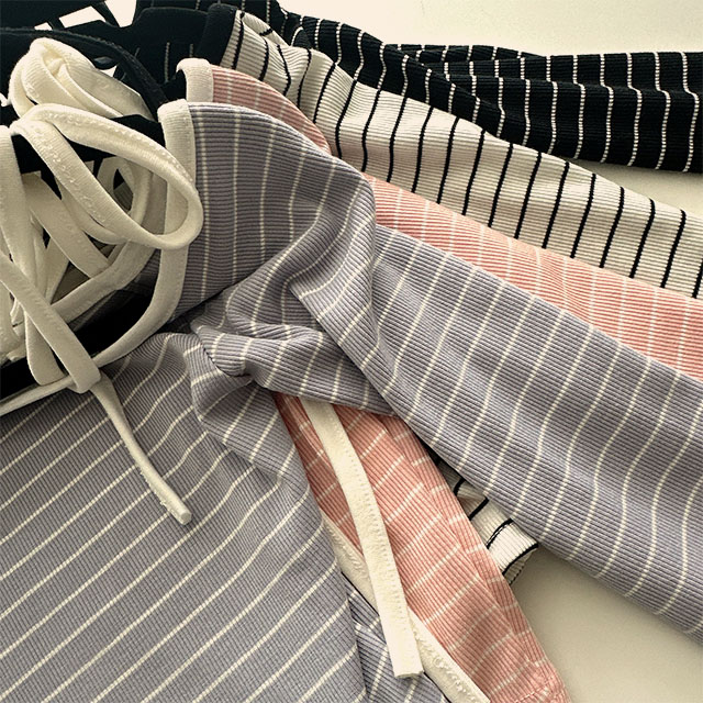 (4col)アシンメトリーリボンオフショルクロップドボーダースリム長袖Tシャツ
