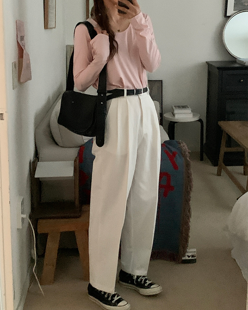タック入りスラックスチノパンツ
