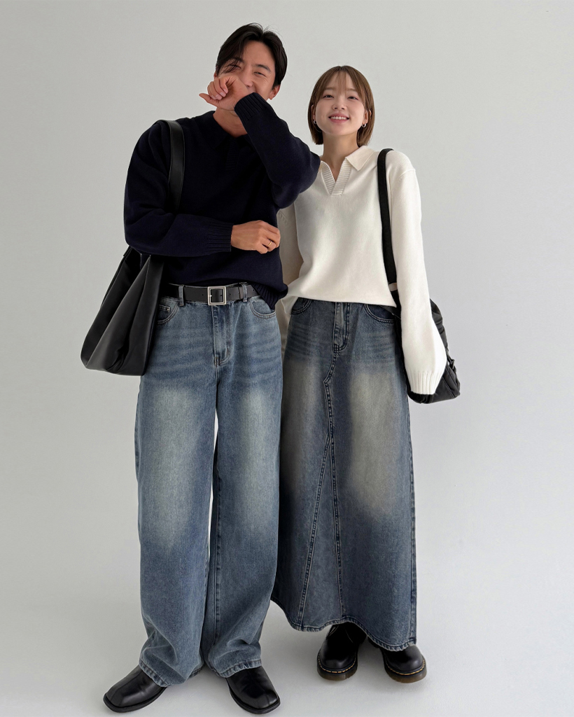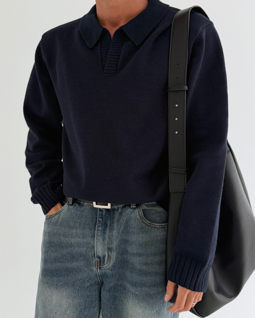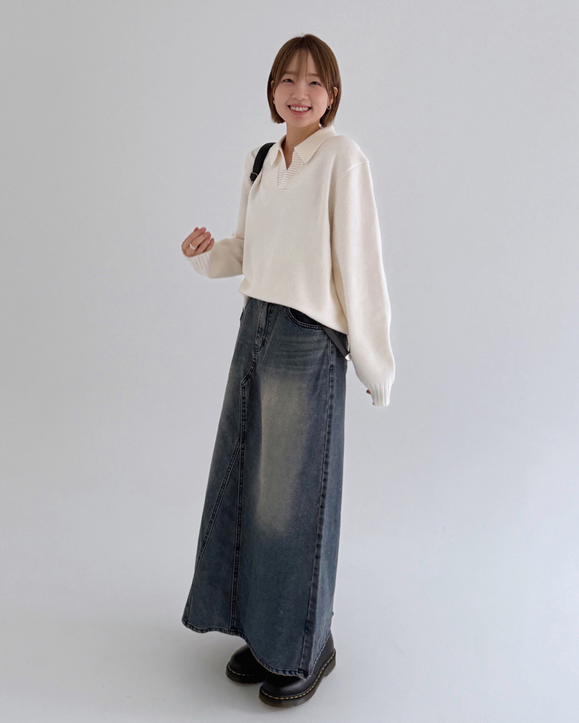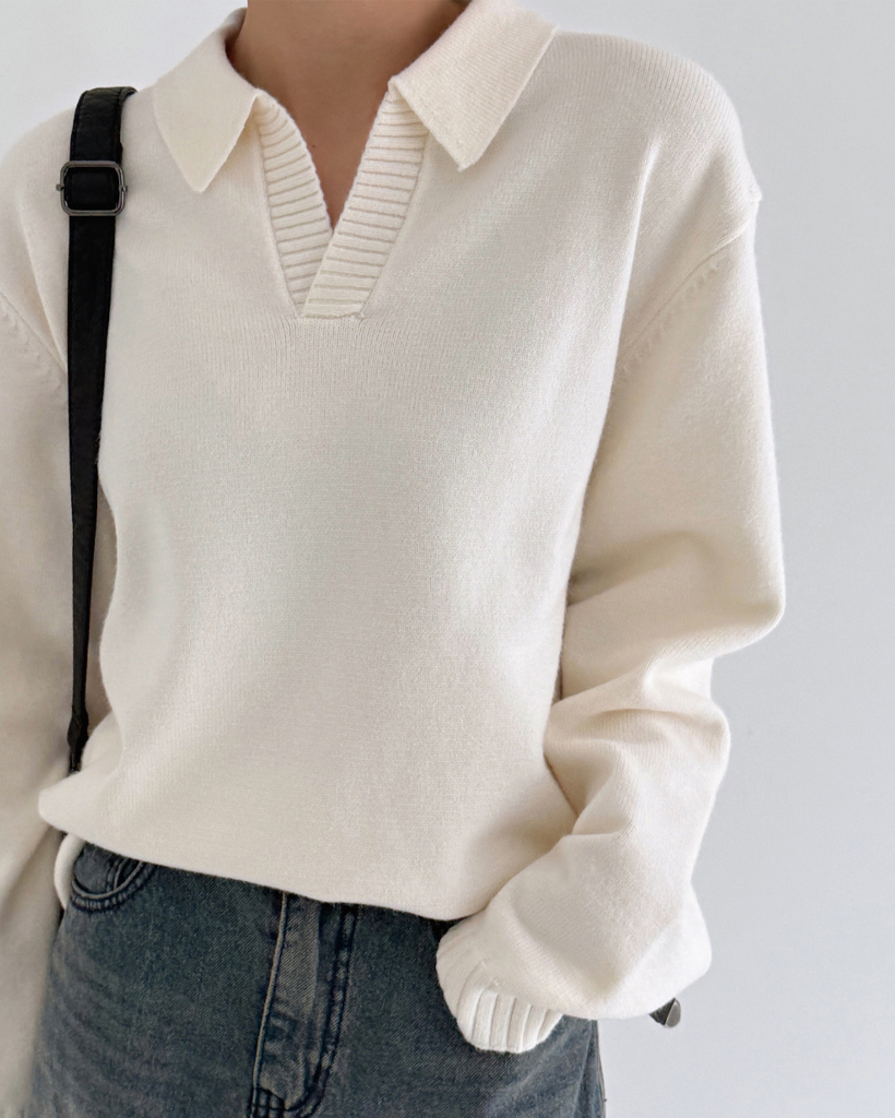(UNISEX)モダールオープンカラーニット
