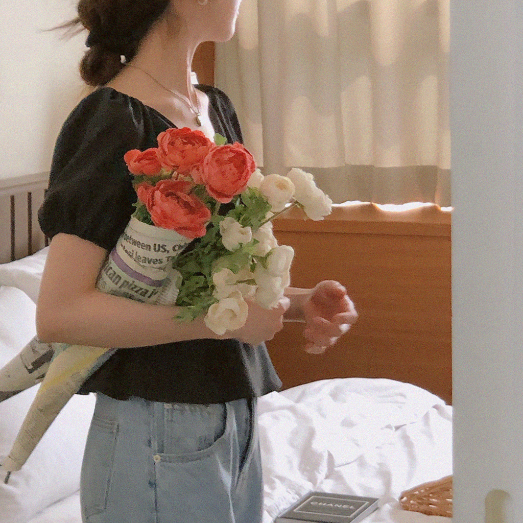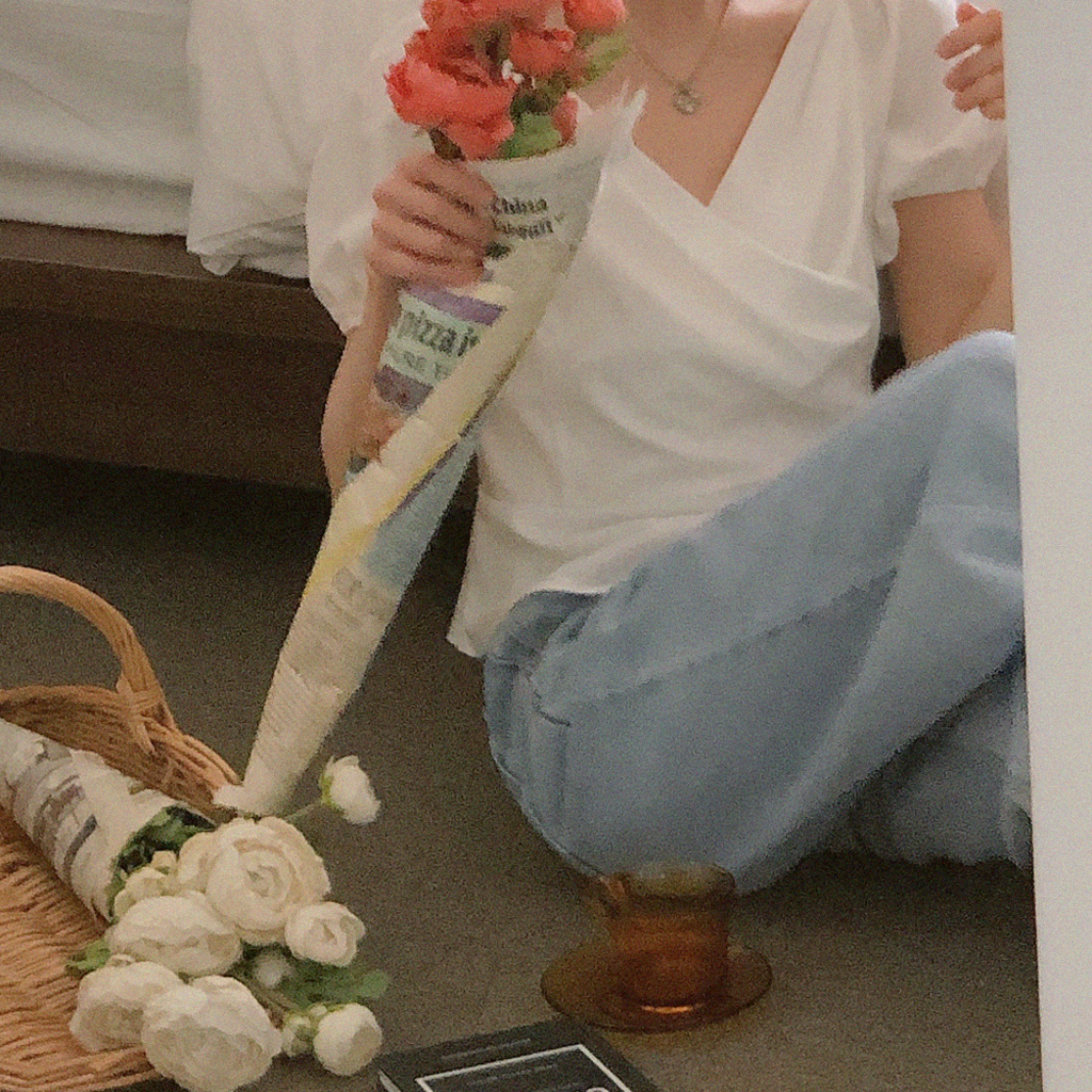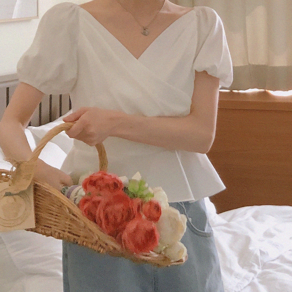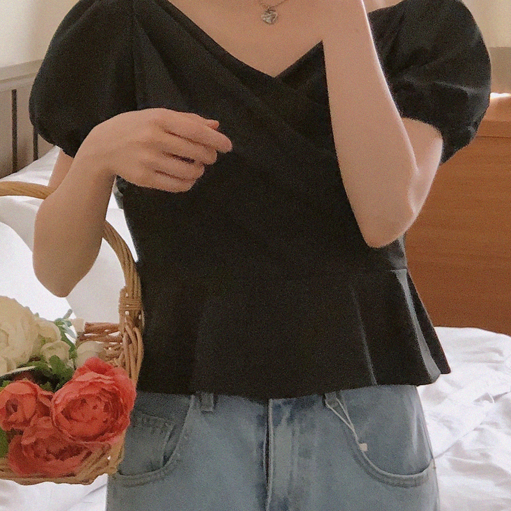 パフ袖ラップブラウス