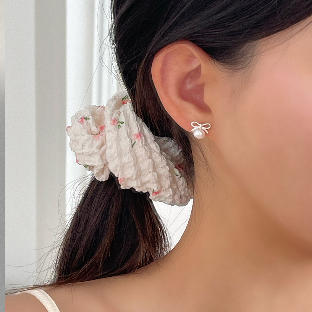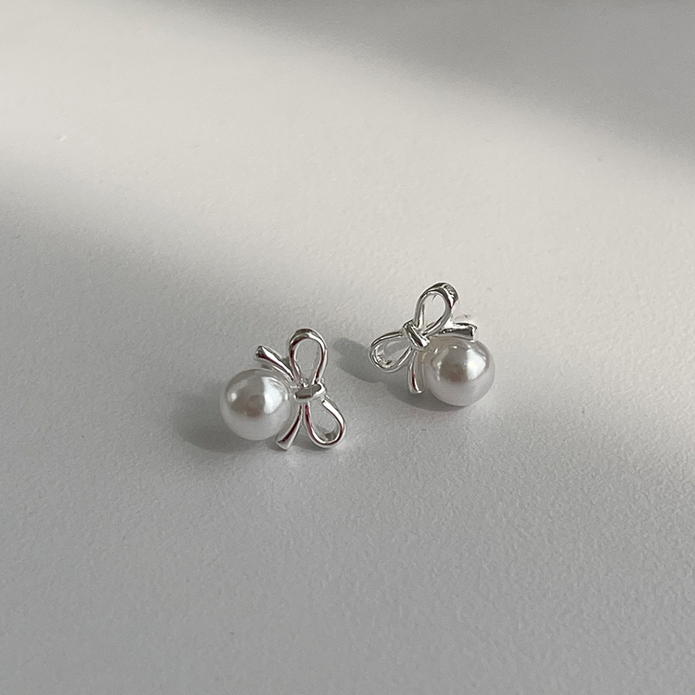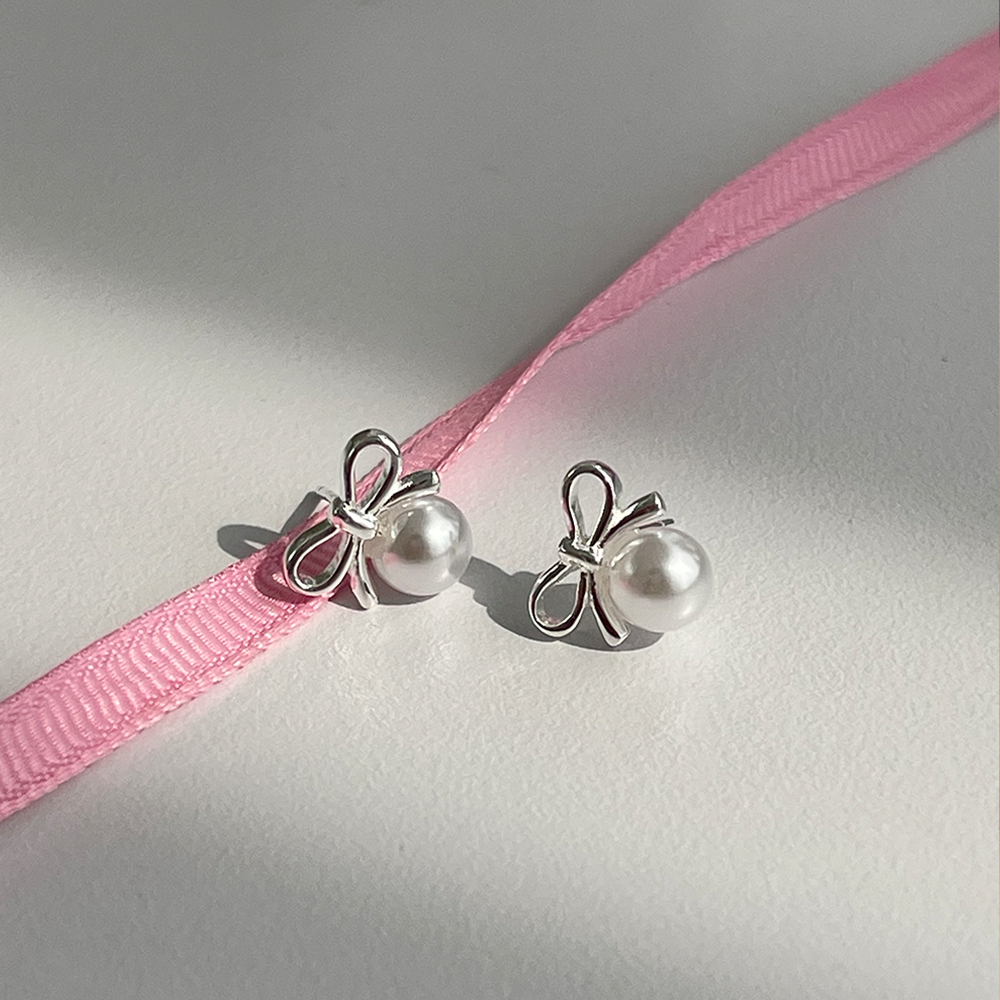 シルバー925リボンパールイヤリング