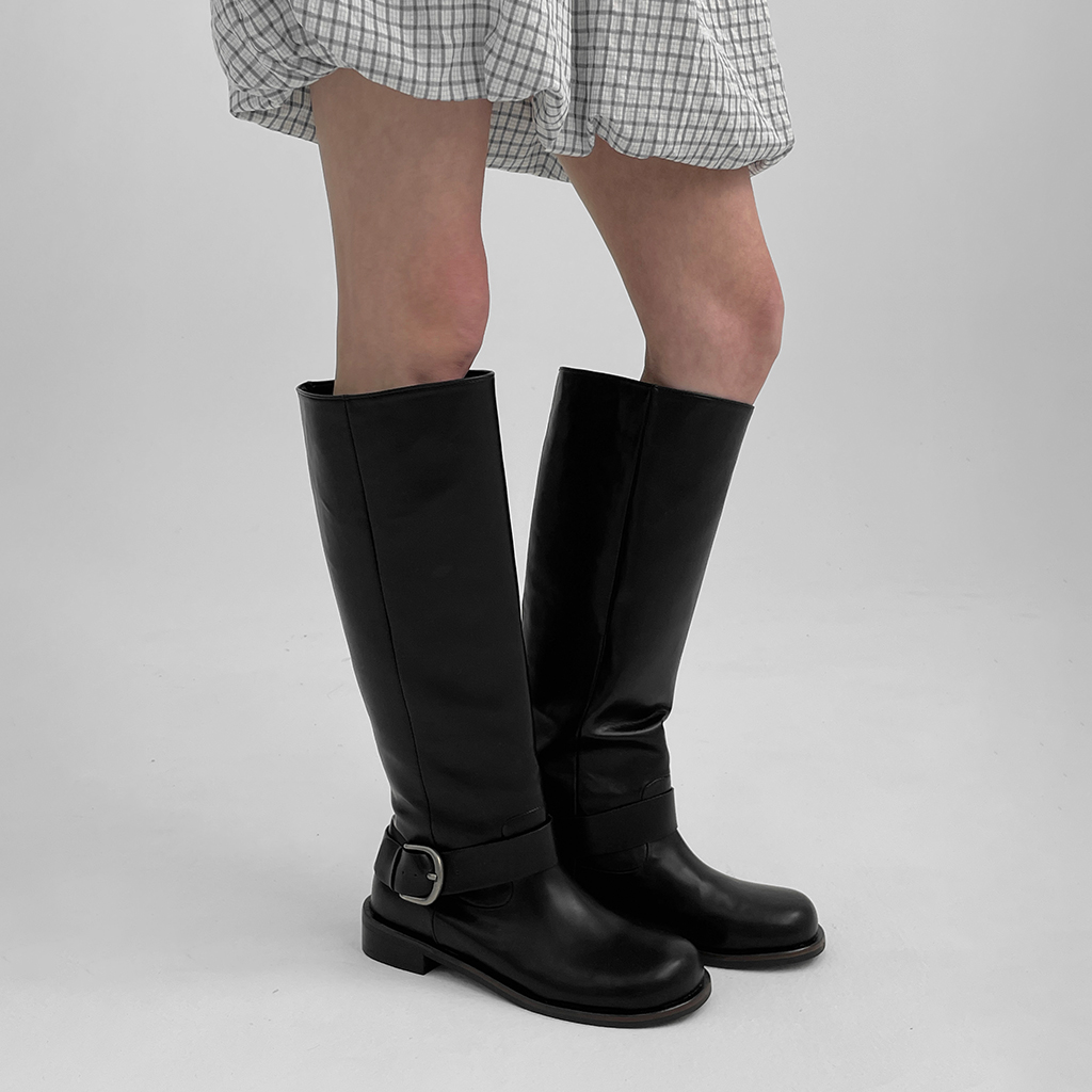 ミルアバックルレザーロングブーツ