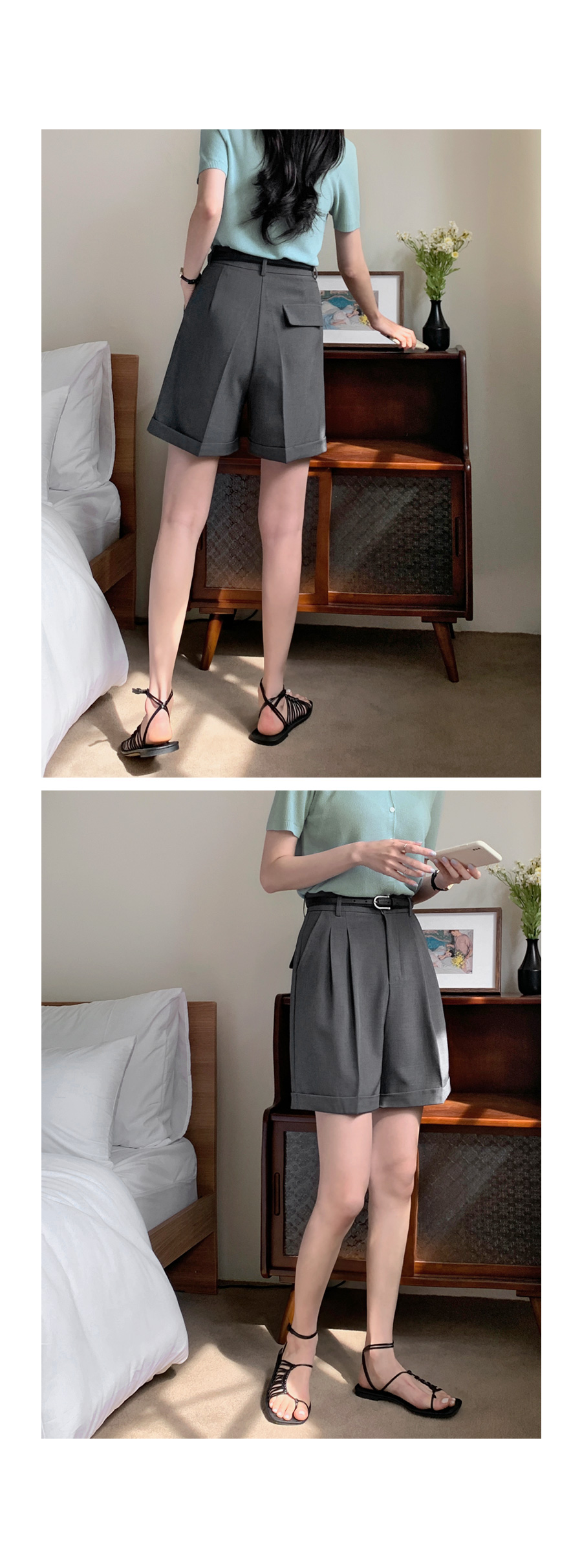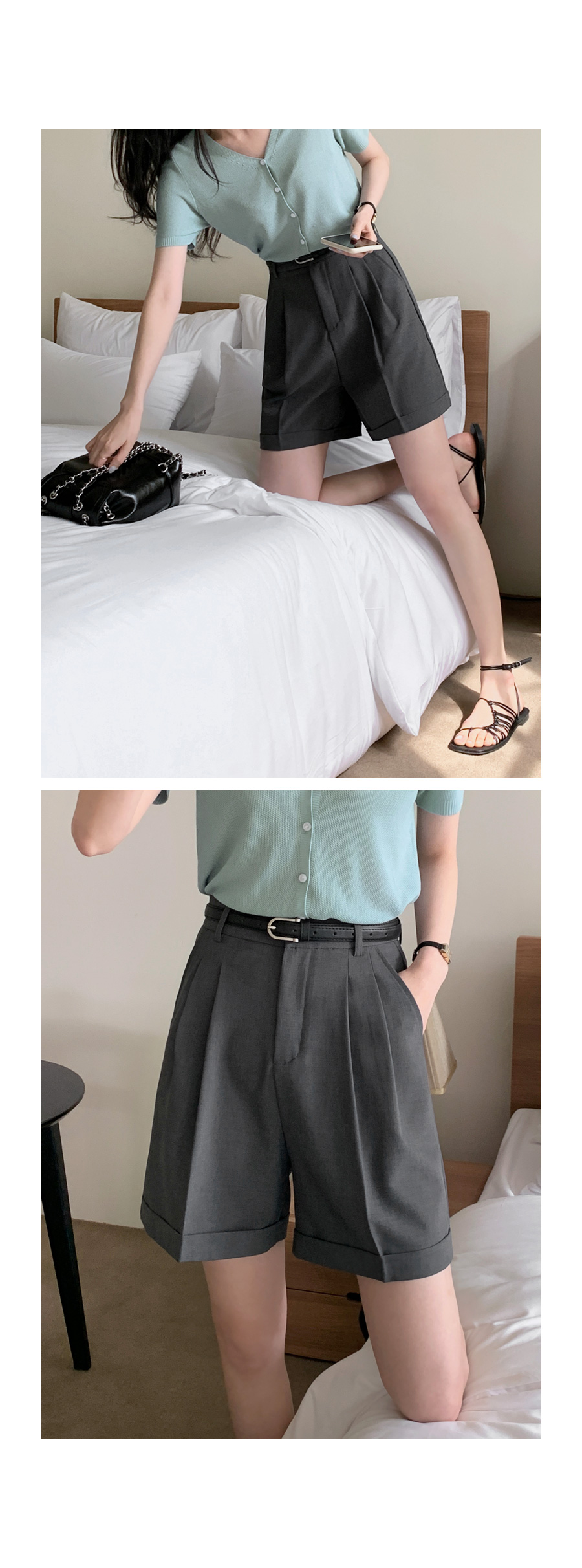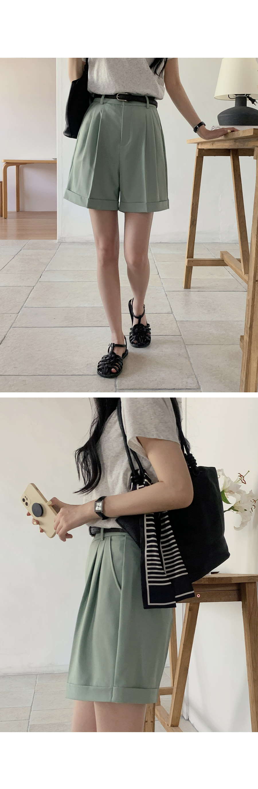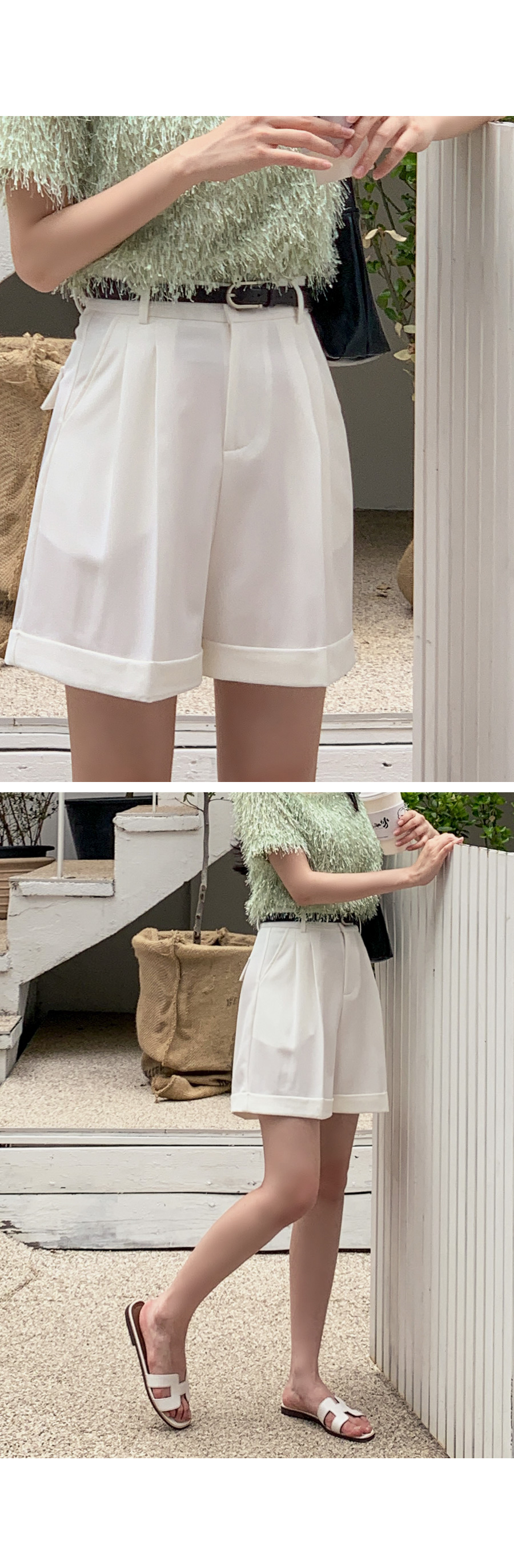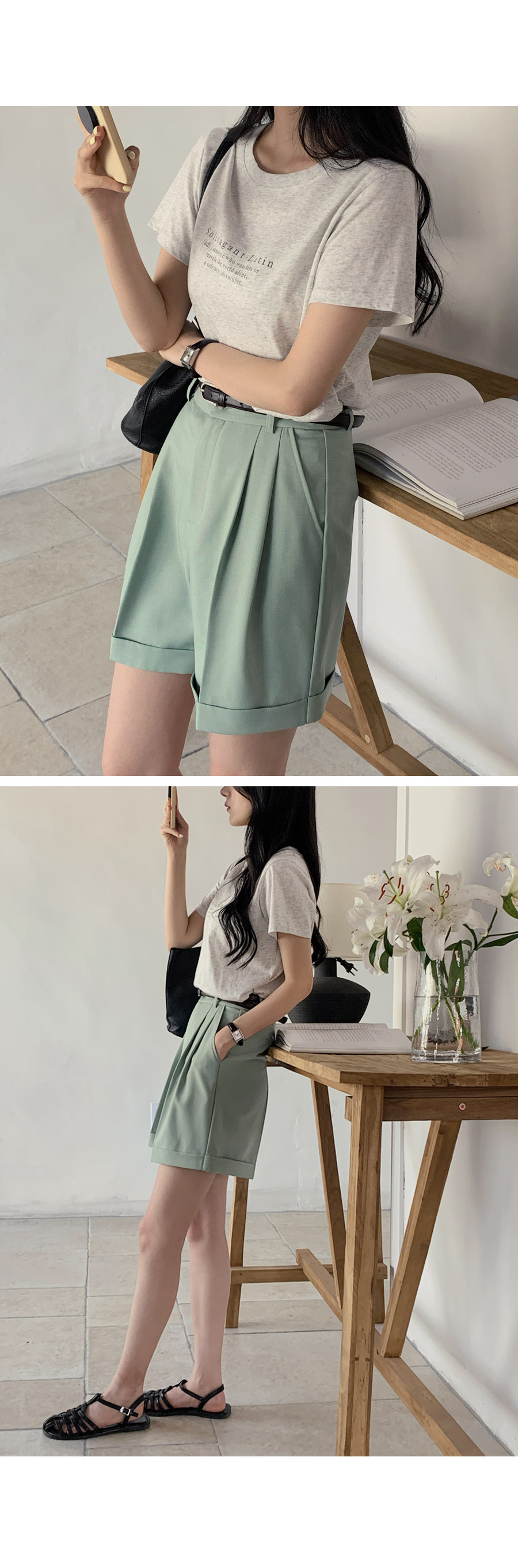 [original][ベルトSET] タック入りロールアップハーフパンツ