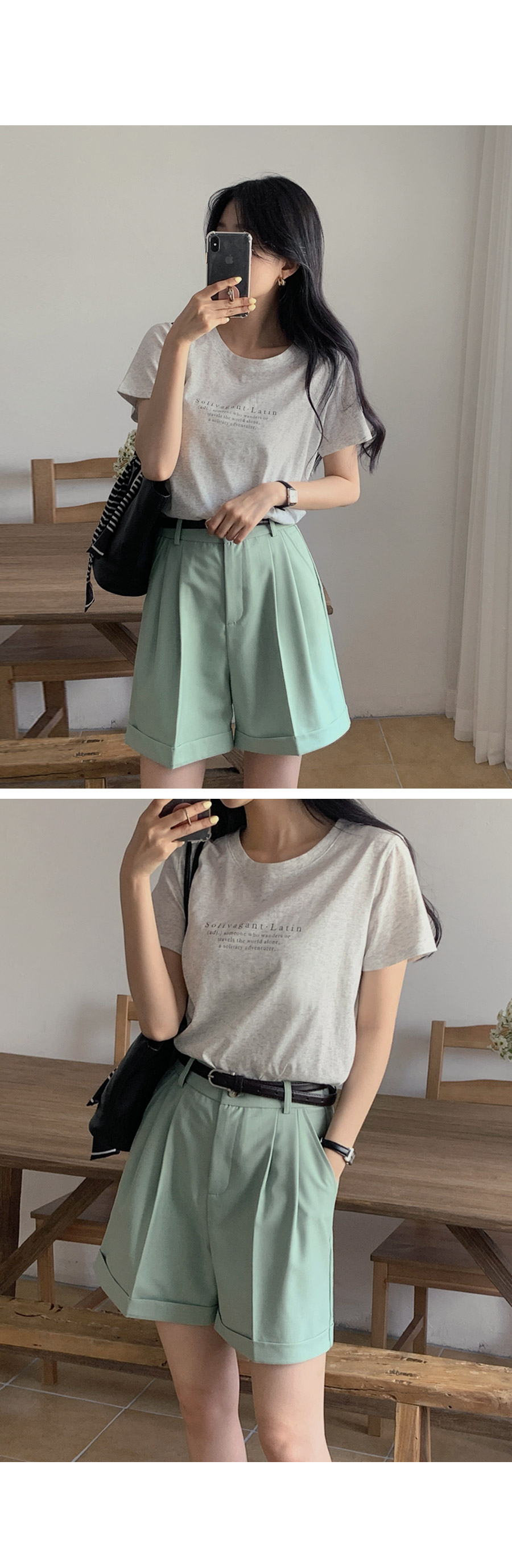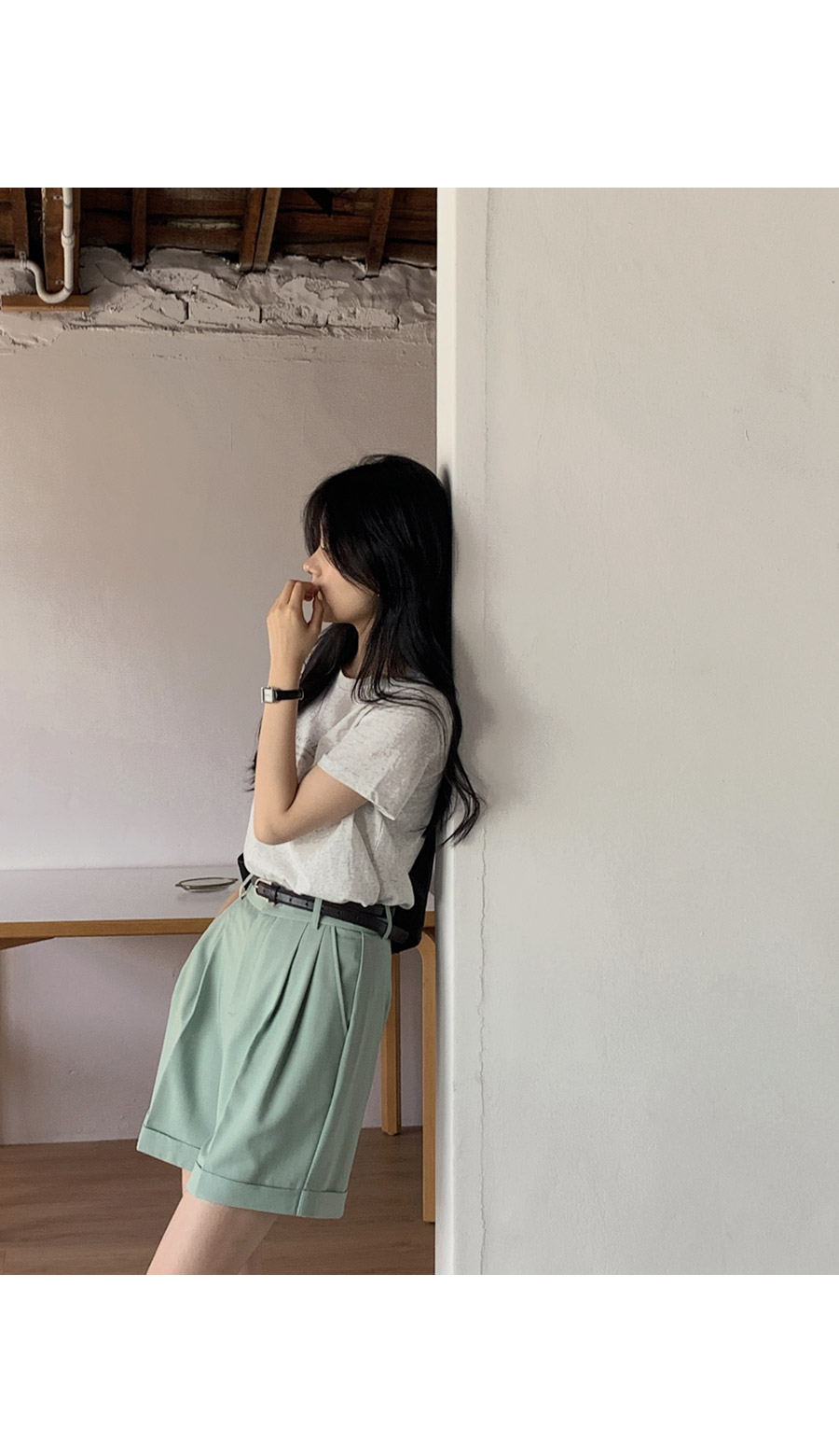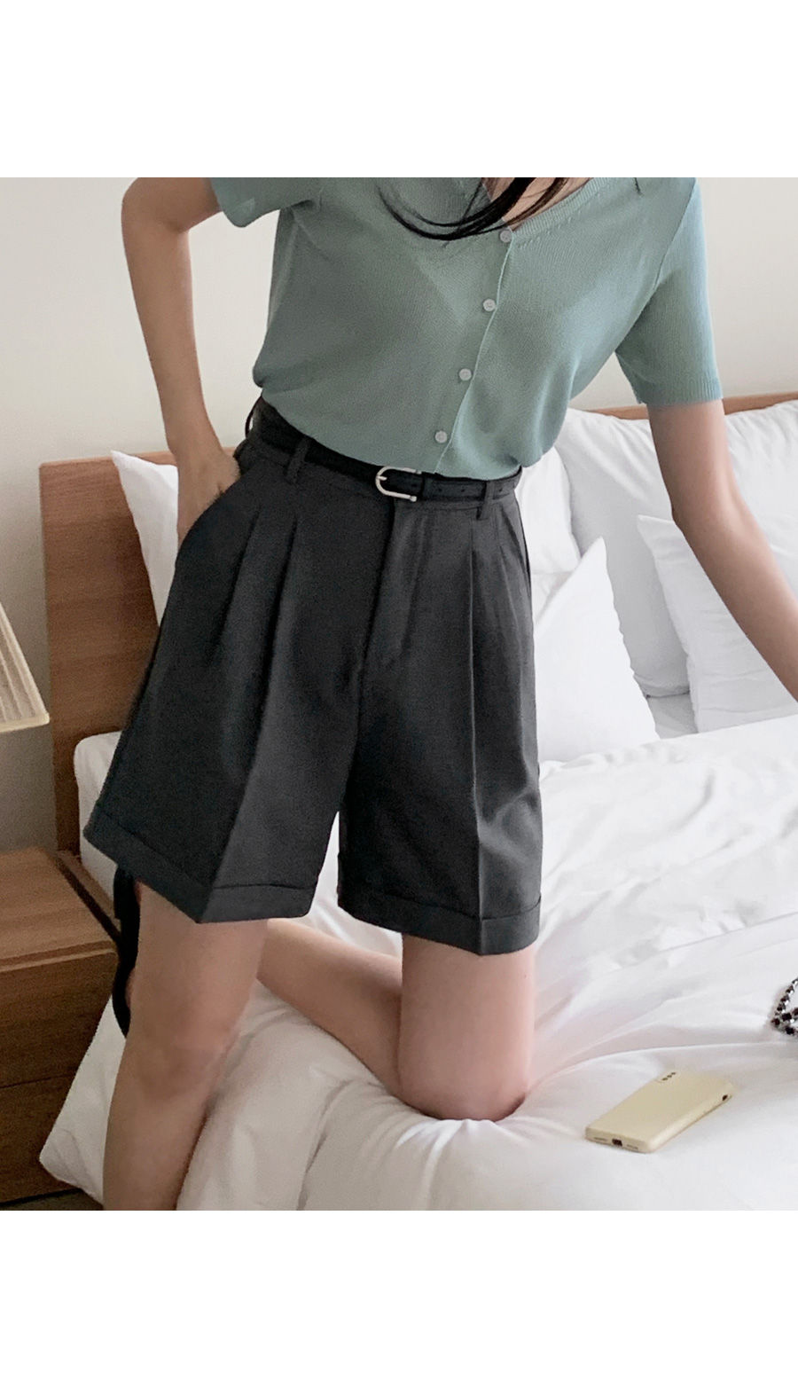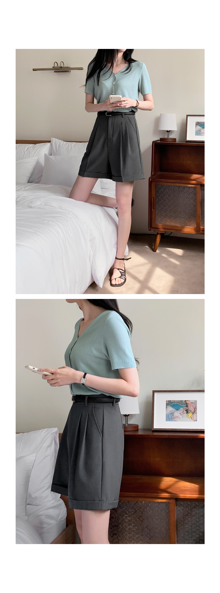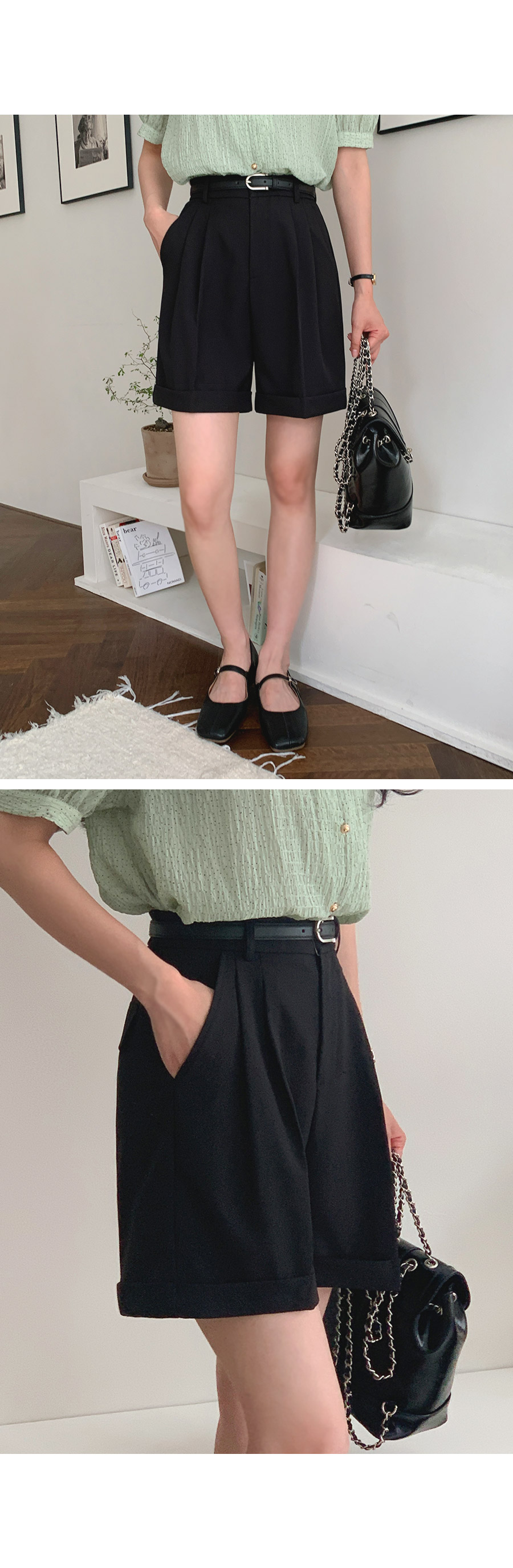 [original][ベルトSET] タック入りロールアップハーフパンツ