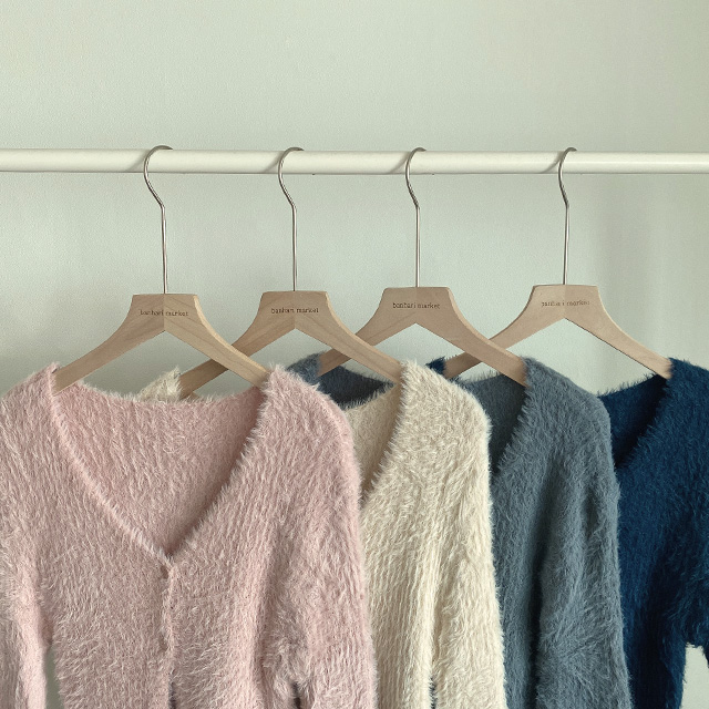 ツーボタンVネックスリム長袖ニットカーディガン